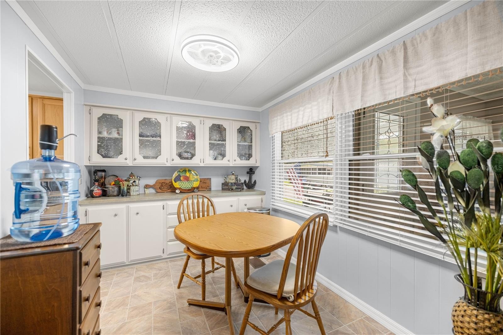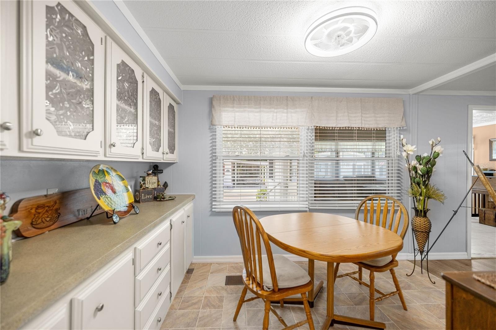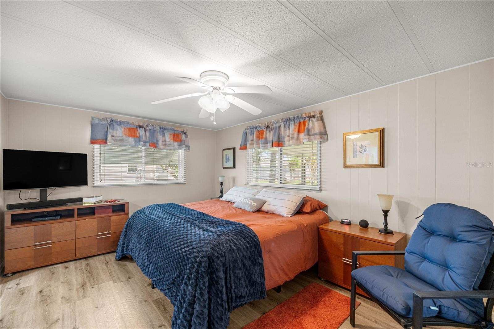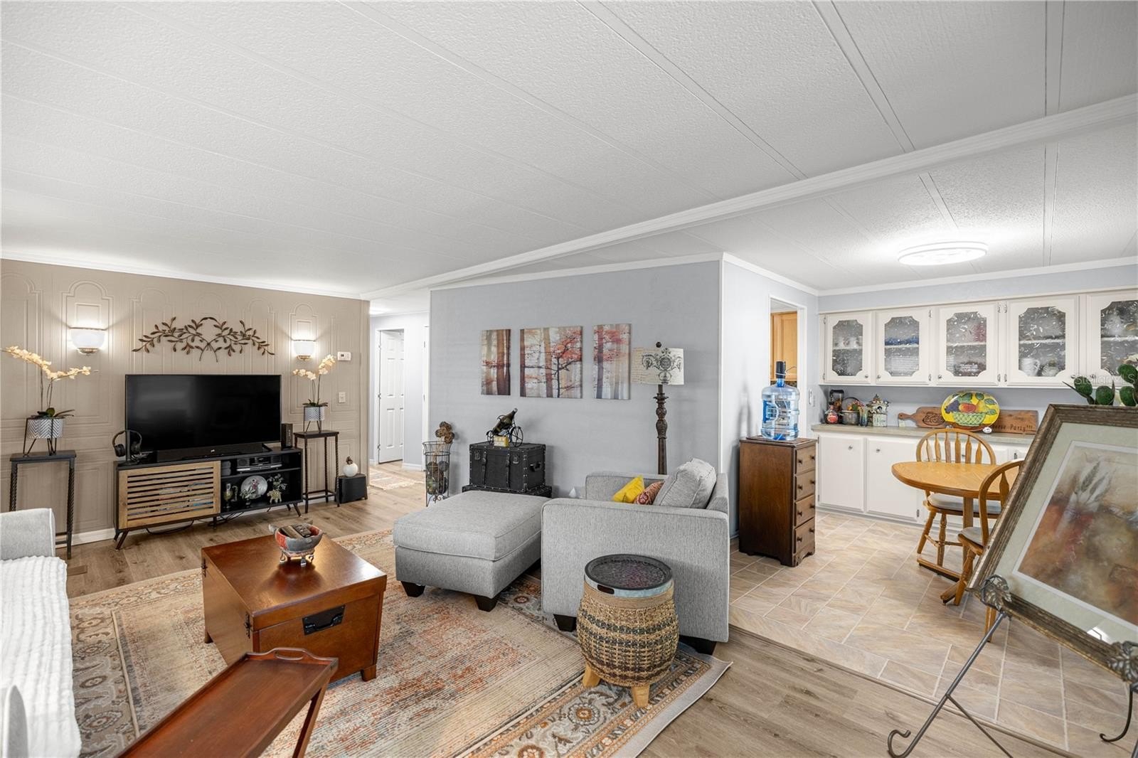With over 1,300 sq ft of living space, this home also offers a versatile bonus room at the front—perfect as a cozy reading nook, quiet sitting area, or an additional TV room for entertaining and relaxation. Step inside to find a fresh, modern interior with new flooring and lighting installed in 2024, complemented by fresh paint throughout. The spacious living and dining areas flow seamlessly into a bright, functional kitchen, creating the ideal setting for both everyday living and hosting guests. Two generously sized bedrooms and two full bathrooms provide comfort and privacy, while newer vinyl windows enhance both natural light and energy efficiency.