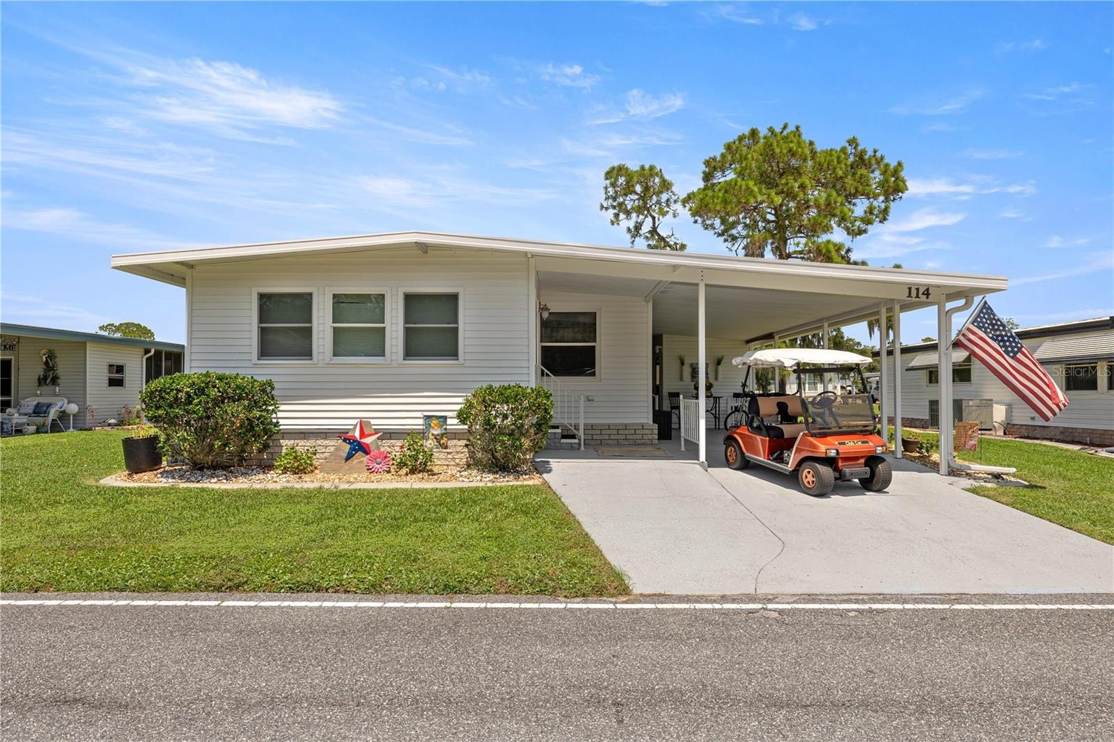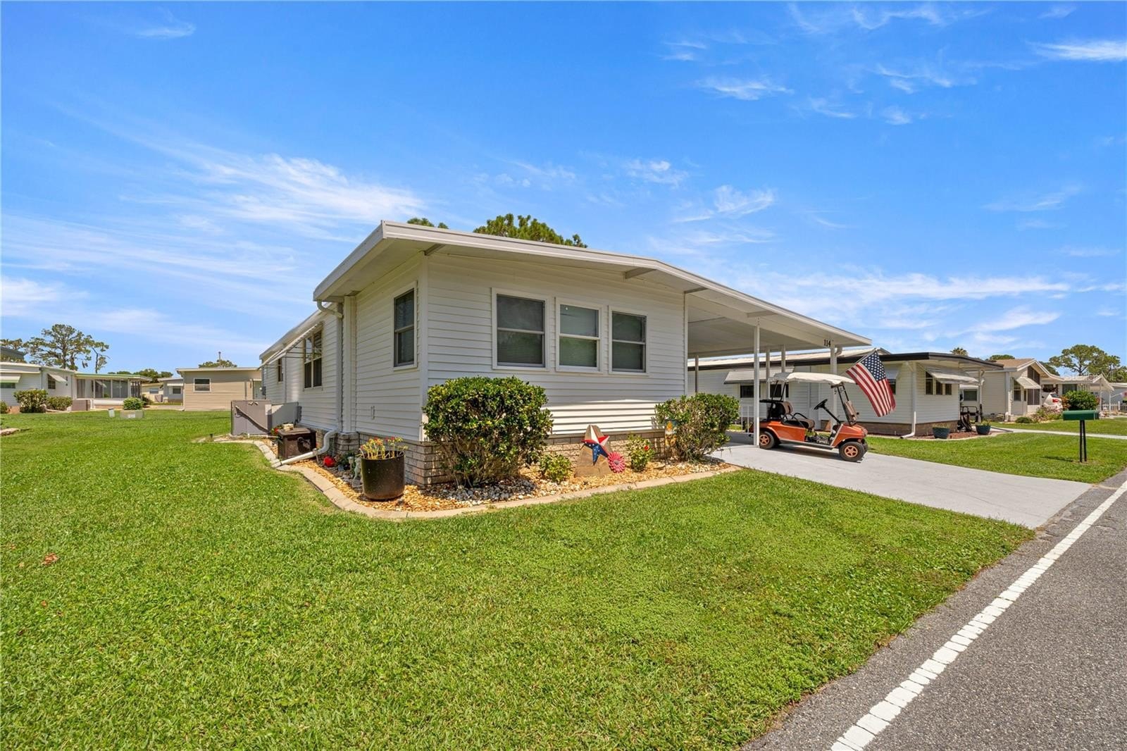 A major highlight of this home is the brand-new 2025 rubber roof, designed with extra-thick insulation for energy savings. The roof also comes with a transferable warranty, giving you long-term peace of mind. As an added bonus, a golf cart is included, making it effortless to explore all that this vibrant community has to provide