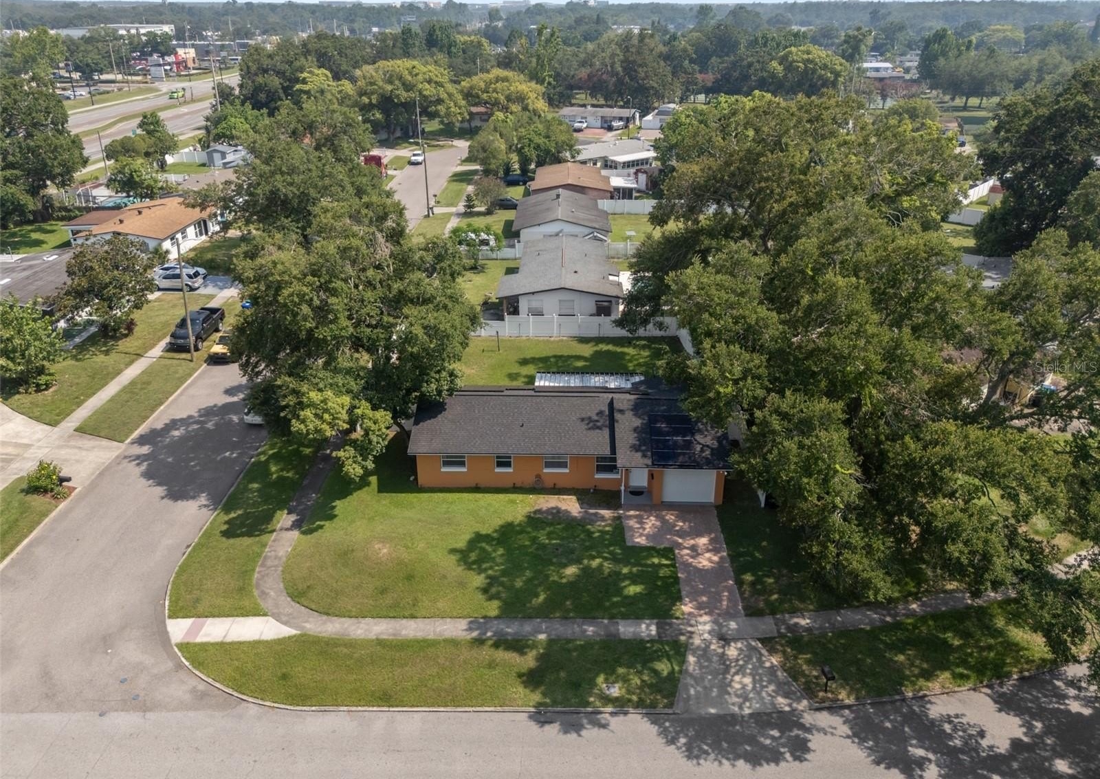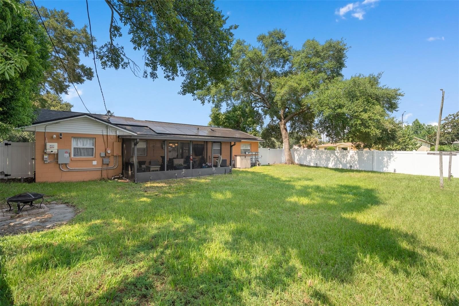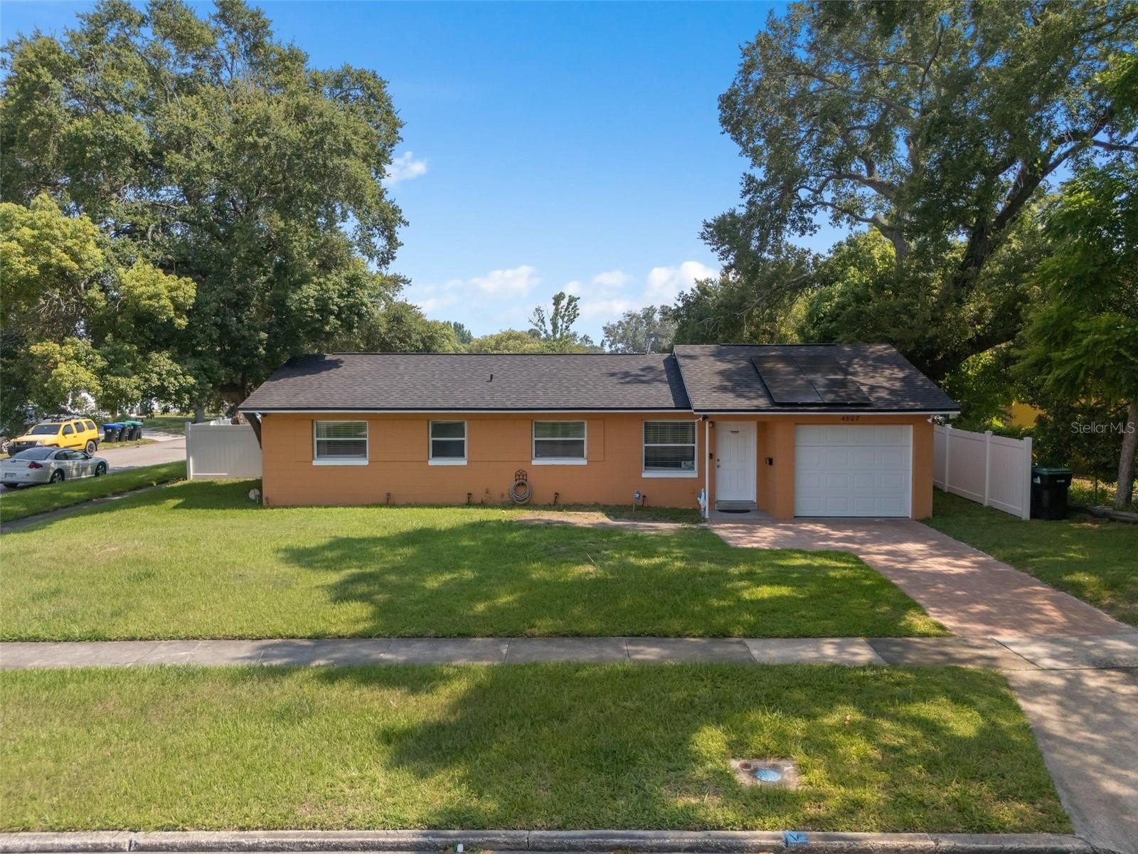 This wonderful 3-bedroom, 2-bathroom block home is nestled on a corner lot in the beautiful Conway Acres subdivision of Orlando. This quiet and peaceful neighborhood has NO HOA and is just minutes away from everything a home owner needs. The pride of ownership shows as soon as you park in the driveway and notice the UPDATED WINDOWS and the HURRICANE RATED GARAGE DOOR. As you enter the house and pass through the charming living room, you'll notice the wide-panel hard wood floors, and abundance of natural light filling the home. The kitchen has many updates including a CUSTOM RANGE HOOD venting outdoors, GRANITE COUNTERS, a customer STONE TILE BACKSPLASH, and an upgraded faucet! From the kitchen you will walk into the bonus/utility room that holds a new COMMERCIAL-GRADE WATER HEATER, a washer and dryer that both convey, a hand wash sink and wonderful storage areas. Both the primary and guest bath have been upgraded from top to bottom! Every bedroom has a ceiling fan and wonderful laminate flooring. The expansive back screen porch has a new PORCELAIN TILE flooring and comes with a wall-mounted flat screen TV! From the porch, you will see the fully-fenced large backyard providing ample space for sports, playgrounds, or a pool! The architectural shingle roof was in installed in 2022. The air conditioner was installed in 2020. The solar panels were installed in 2023. Balance on panels is $41,822.56 with a monthly payment of $241.78. When the balance reaches $29,000, the monthly payment goes to $169.45. The last power bill was $12!!! To top it all off, the garage easily holds a full size vehicle, offers tons of storage, and has a brand new garage door opener! Come see this beautiful home and make it yours today!