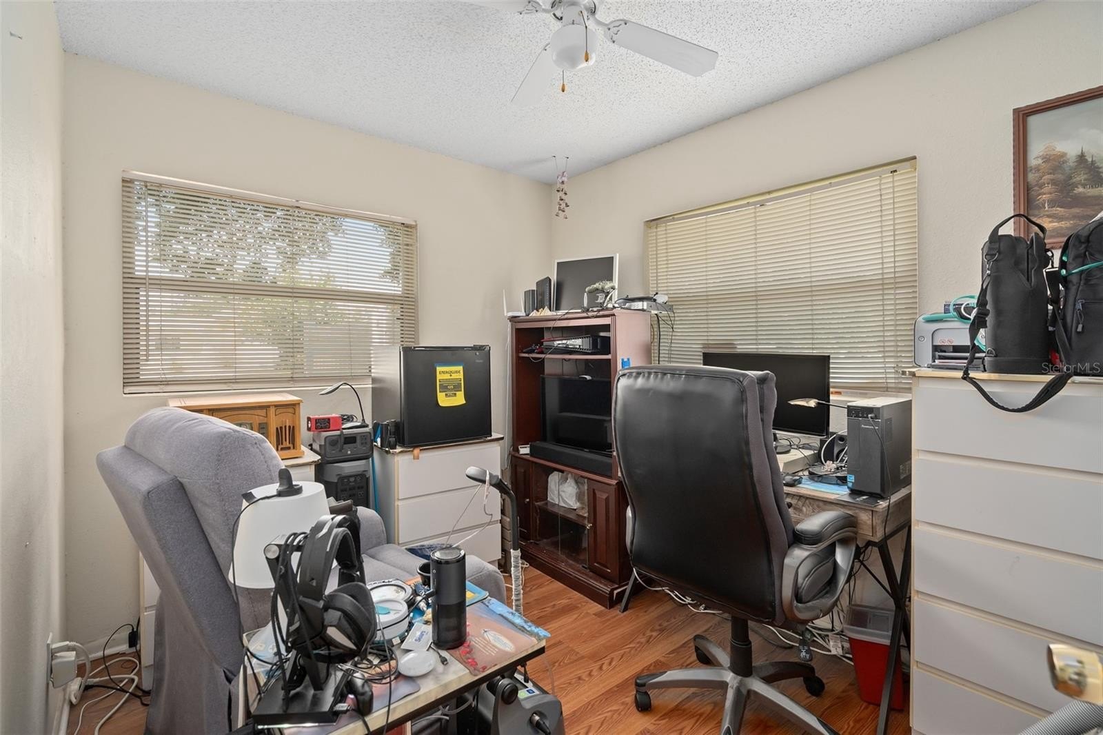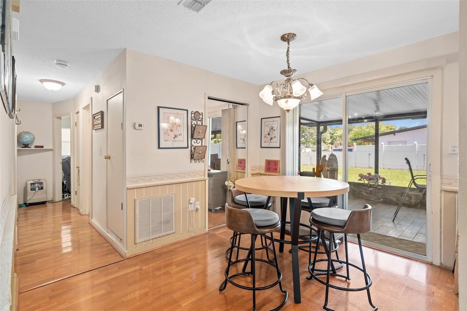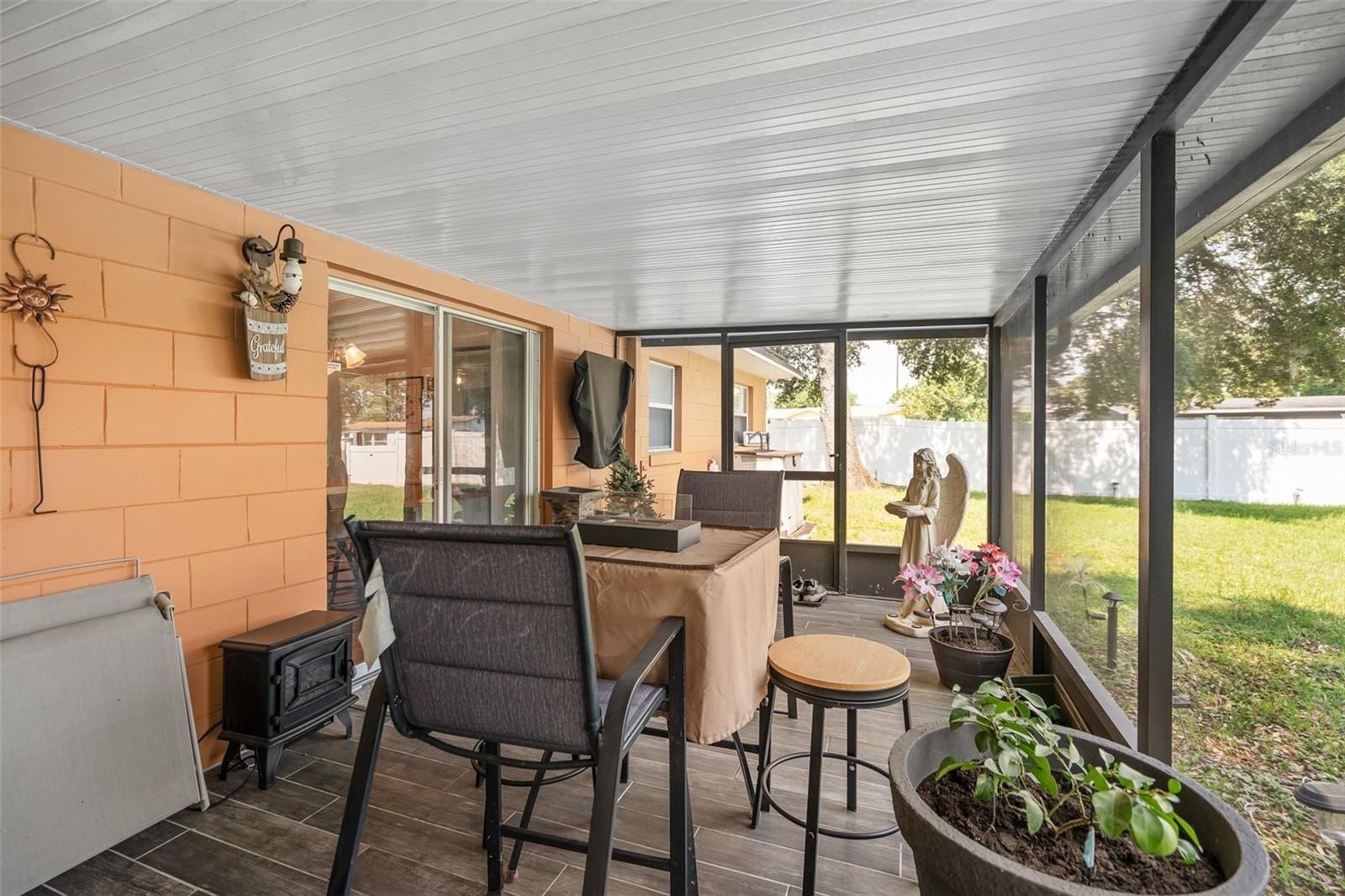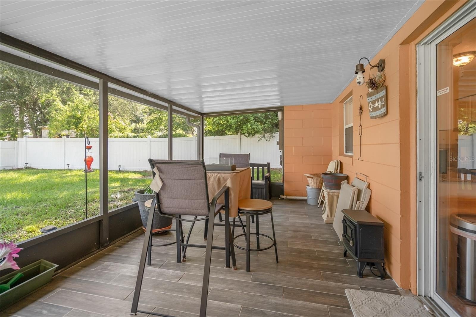 This wonderful 3-bedroom, 2-bathroom block home is nestled on a corner lot in the beautiful Conway Acres subdivision of Orlando. This quiet and peaceful neighborhood has NO HOA and is just minutes away from everything a home owner needs. The pride of ownership shows as soon as you park in the driveway and notice the UPDATED WINDOWS and the HURRICANE RATED GARAGE DOOR. As you enter the house and pass through the charming living room, you'll notice the wide-panel hard wood floors, and abundance of natural light filling the home. The kitchen has many updates including a CUSTOM RANGE HOOD venting outdoors, GRANITE COUNTERS, a customer STONE TILE BACKSPLASH, and an upgraded faucet! From the kitchen you will walk into the bonus/utility room that holds a new COMMERCIAL-GRADE WATER HEATER, a washer and dryer that both convey, a hand wash sink and wonderful storage areas. Both the primary and guest bath have been upgraded from top to bottom! Every bedroom has a ceiling fan and wonderful laminate flooring. The expansive back screen porch has a new PORCELAIN TILE flooring and comes with a wall-mounted flat screen TV! From the porch, you will see the fully-fenced large backyard providing ample space for sports, playgrounds, or a pool! The architectural shingle roof was in installed in 2022. The air conditioner was installed in 2020. The solar panels were installed in 2023. Balance on panels is $41,822.56 with a monthly payment of $241.78. When the balance reaches $29,000, the monthly payment goes to $169.45. The last power bill was $12!!! To top it all off, the garage easily holds a full size vehicle, offers tons of storage, and has a brand new garage door opener! Come see this beautiful home and make it yours today!