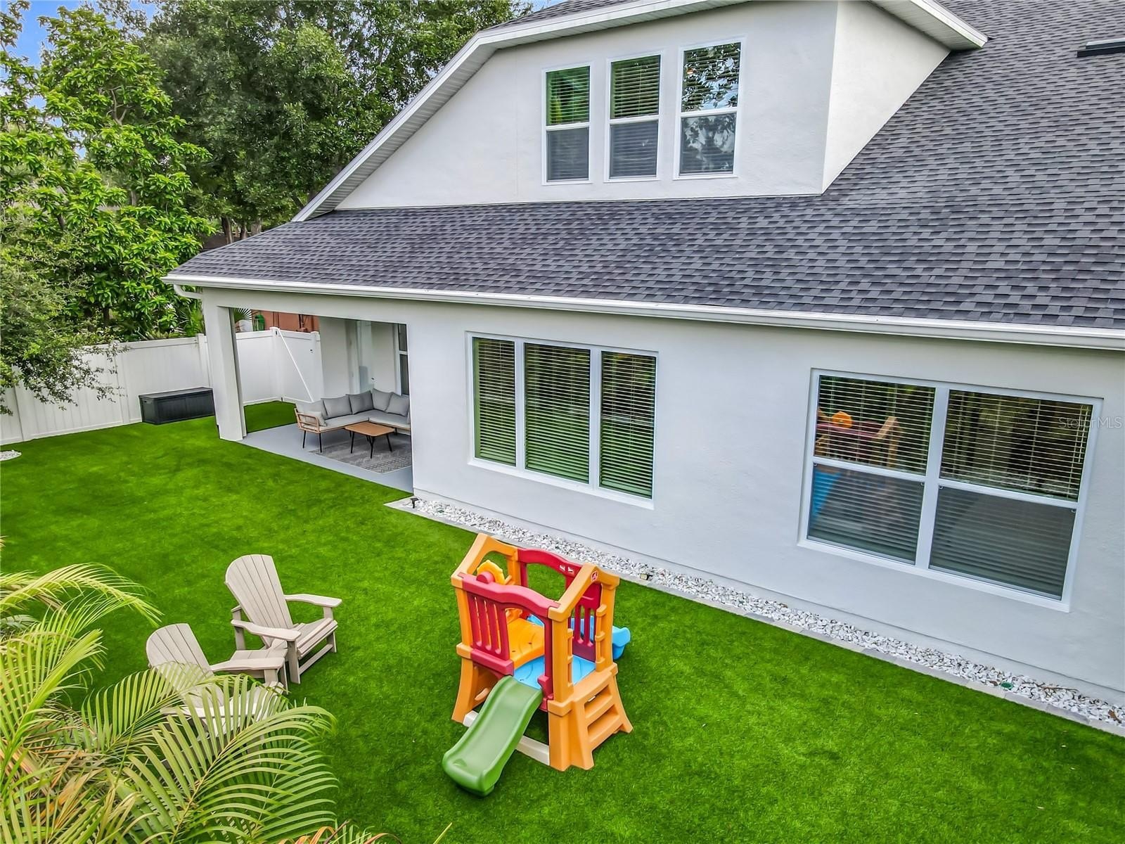 Beautifully designed David Weekley Timberlark with thoughtful upgrades throughout. A welcoming front porch leads to a private office and an open-concept living space. The chef’s kitchen features GE Café appliances (Advantium oven, induction cooktop), a cozy kitchen nook, and opens to a bright living area with custom built-ins, floating shelves, generous storage, and a charging drawer. Upstairs, you’ll find 3 bedrooms plus a spacious loft with two-step entry and a built-in showcasing bookshelves, floating shelves, cabinets, and a decorative fireplace. The owner’s suite offers an oversized walk-in shower with a waterfall and standard shower head. RevWood flooring, plantation shutters (front), and a drop zone/book bag rack add both style and function. The backyard boasts Delaturff astroturf (installed 2024), lush landscaping, and a half bath opening directly to the yard—perfect for a future pool.
