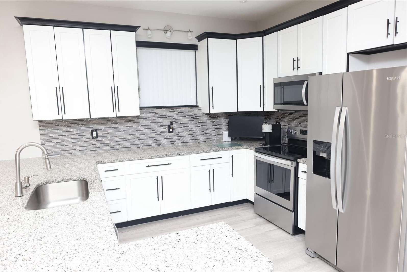 Step into the spacious living and dining areas where the brand-new Whirlpool appliance package shines in a thoughtfully designed kitchen—complete with granite countertops, plenty of cabinetry, and a large island ideal for entertaining. The master suite is privately tucked away at the back of the home and features a generously sized walk-in closet and a spa-like en-suite bathroom, beautifully finished with elegant white marble tile.