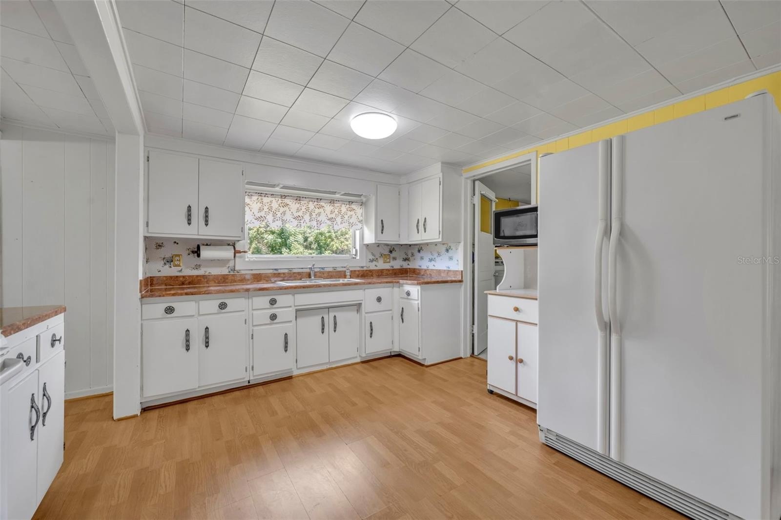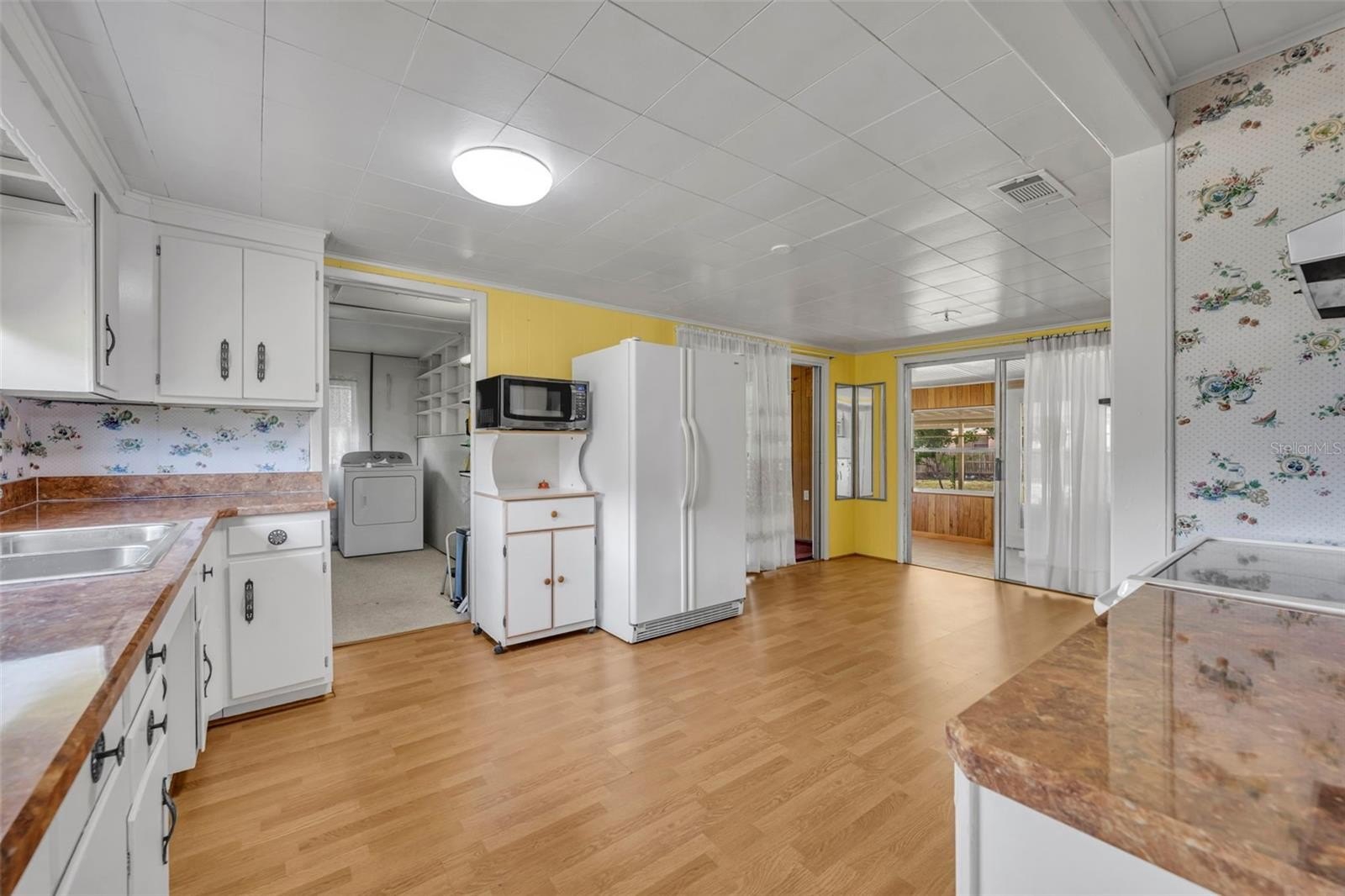 Charming 2-bedroom, 1-bath home with a versatile 12' x 12' den/office/bonus room which could also be used as a bedroom, offering 1,280 sq ft of comfortable living space at the end of a quiet and secluded dead-end street—just minutes from downtown Eustis and Mount Dora. This property includes the adjacent cleared .17-acre lot, giving you a combined 1/3 acre to enjoy. Inside, you’ll find a spacious 12' x 8' laundry room for added convenience and a pull-down ladder attic access. The home also features a 22' x 8' enclosed covered tiled porch, perfect for relaxing or entertaining, along with a 40' x 14' covered patio/carport for plenty of outdoor use and plenty of room to park your boat and RV. Two storage sheds (16' x 12' and 10' x 12') provide ample space for tools, hobbies, or extra storage. Major updates include a 2011 septic tank, 2021 drain field, and 2016 roof, giving peace of mind for years to come. A rare find with extra land, storage, and proximity to historic downtown charm—this one won’t last long!