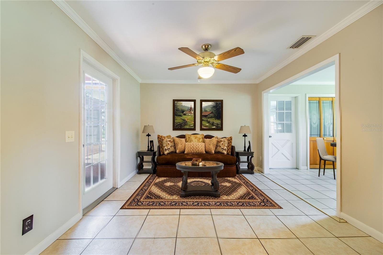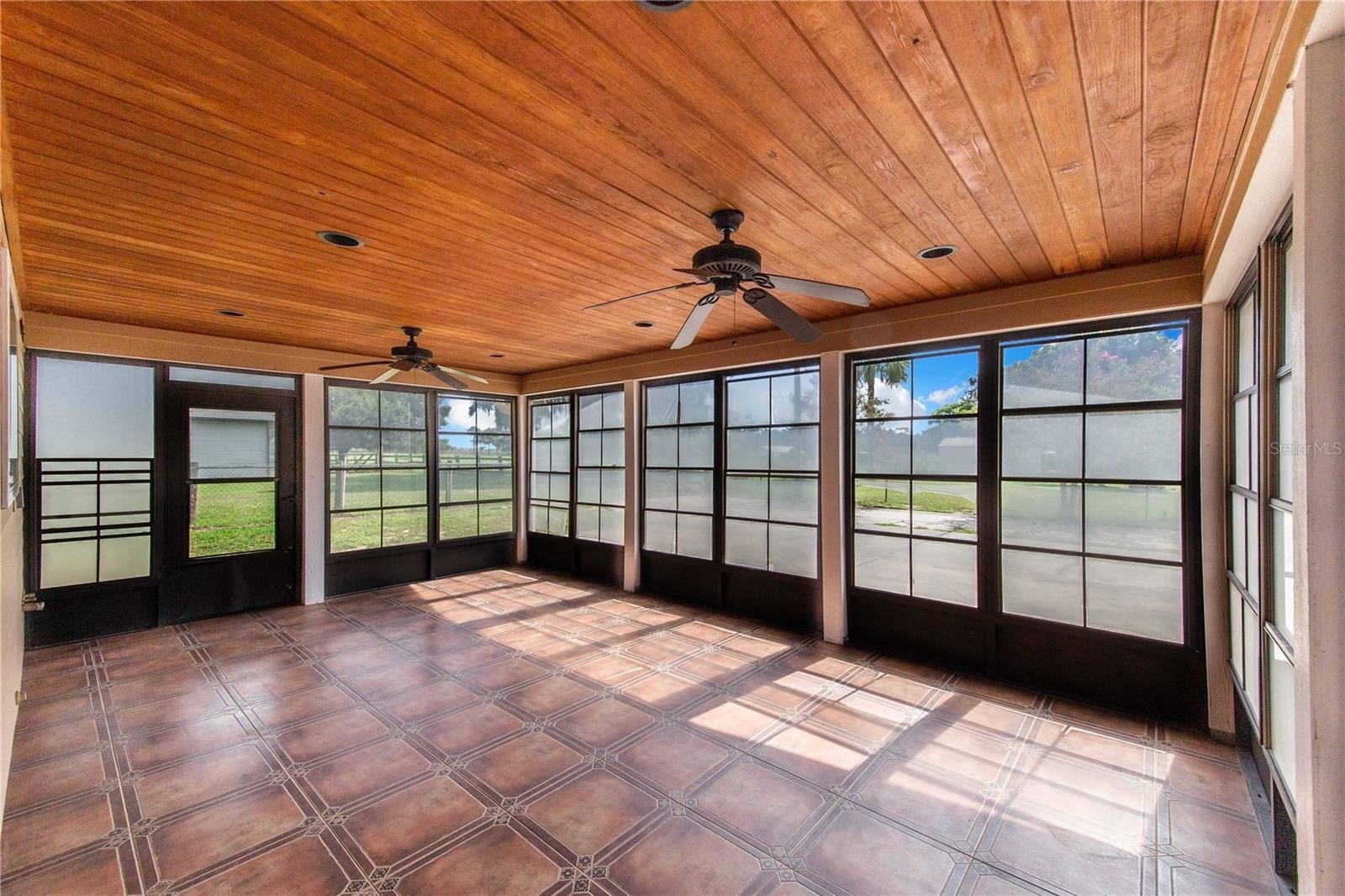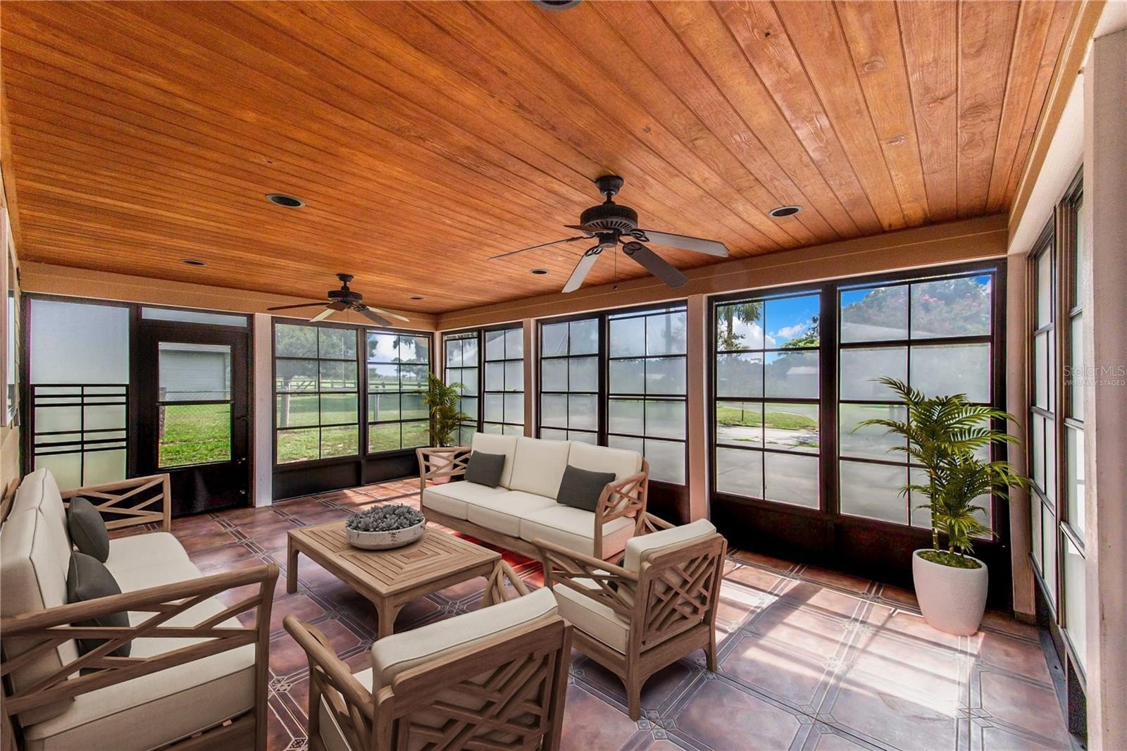 Additional features include an attached 2-car garage with storage cabinets, a large 451 sq. ft. covered, screened, and tiled side porch, and a 120 sq. ft. covered, tiled front porch. Recent upgrades include new Mohawk laminate flooring (2025), a new septic tank and drain field (2024), a 4.0-ton AC unit (2023), and a water purification system (2022).