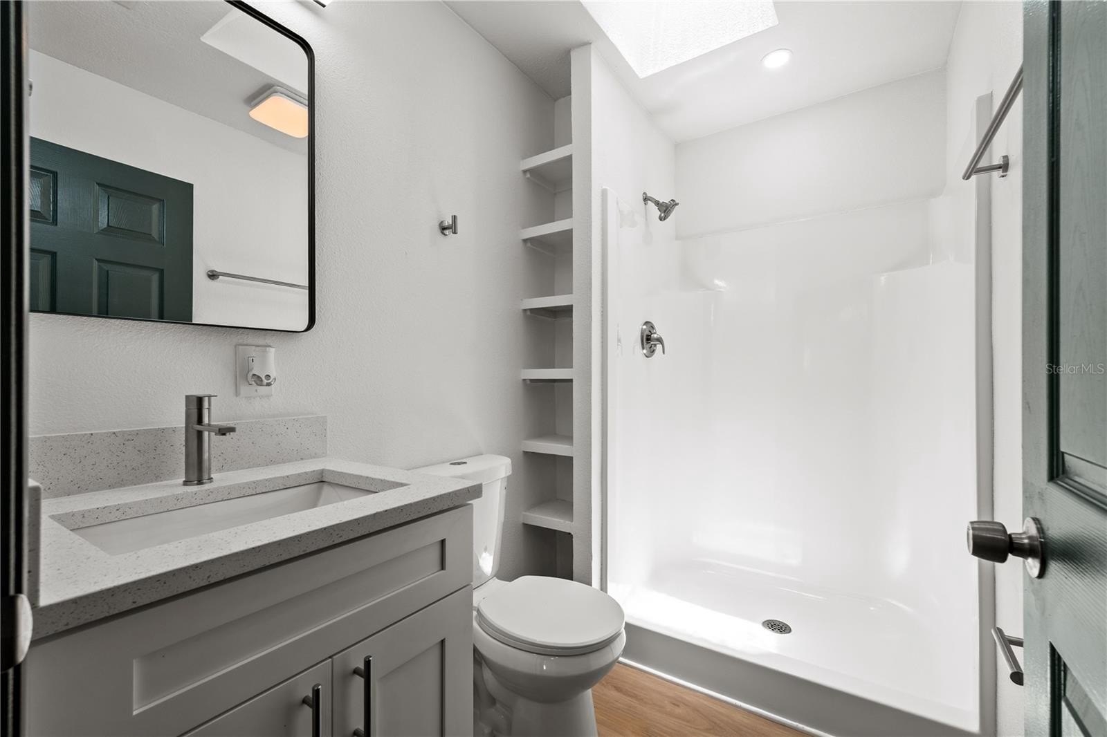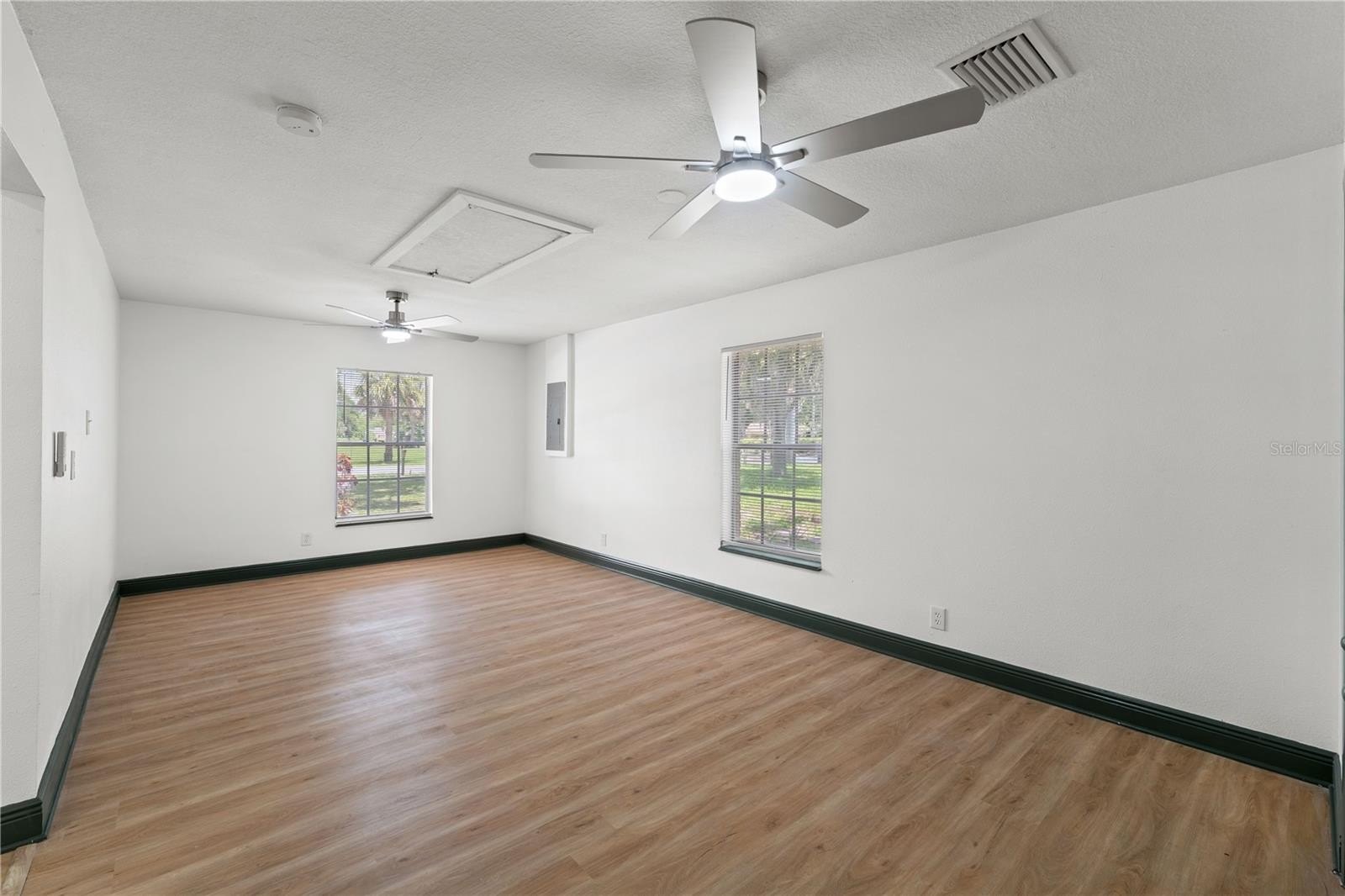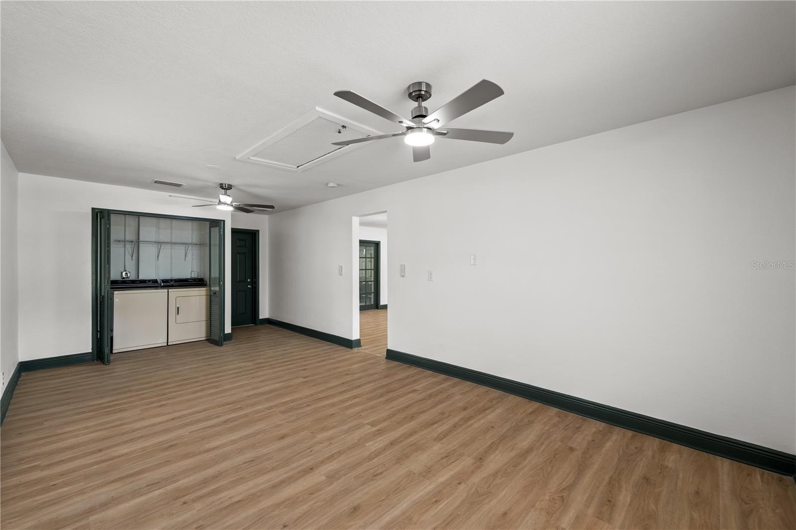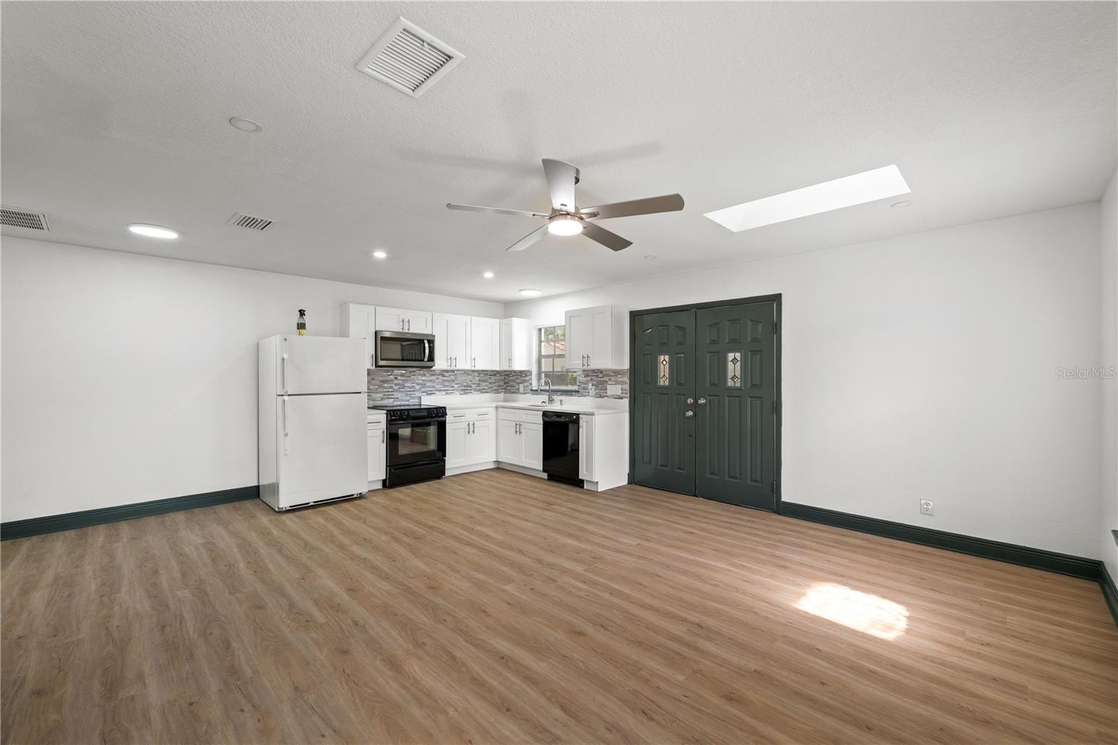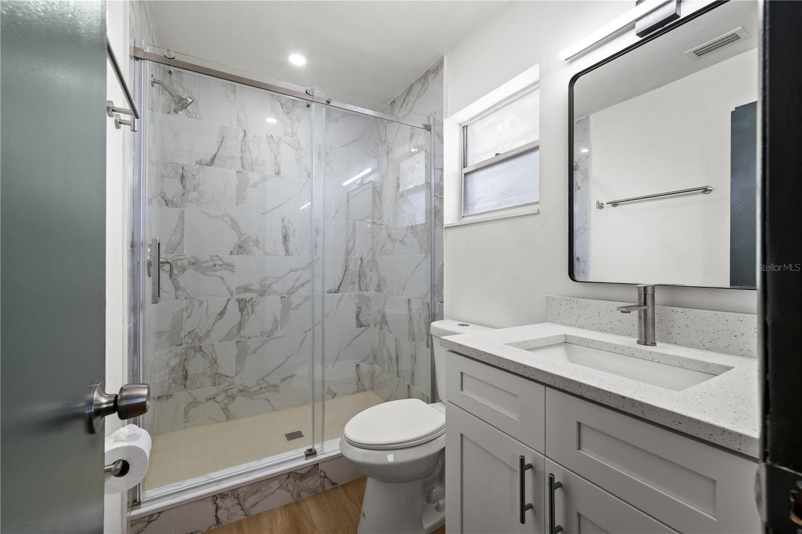 This house has 5 bedrooms and 3 bathrooms, including a spacious mother-in-law apartment with two bedrooms and one full bathroom. The house also has a large, covered, enclosed back porch with window air conditioning. The main house is entered through a wonderfully spacious area, which includes the living room, dining room, and kitchen. The fully remodeled, modern kitchen with new cabinets and granite countertops features a refrigerator, stove, microwave, dishwasher, and garbage disposal. Additionally, the former parking area was enclosed, creating an additional space that can serve as a bedroom, study, or office. There is also a laundry area there, with a washer and dryer. The mother-in-law apartment, with a separate entrance, opens onto an integrated living room, dining room, and kitchen space and also includes a refrigerator, stove, dishwasher, microwave, and laundry area. The house has rear exits, allowing you to enjoy the spacious green areas with lush oak trees and other species, from the master bedroom, the porch, and the mother-in-law's apartment. The building has a septic tank and private well, so there are no water bills or HOA dues. All these features in a fully remodeled home make this the ideal property to enjoy in this coveted area of Tampa.