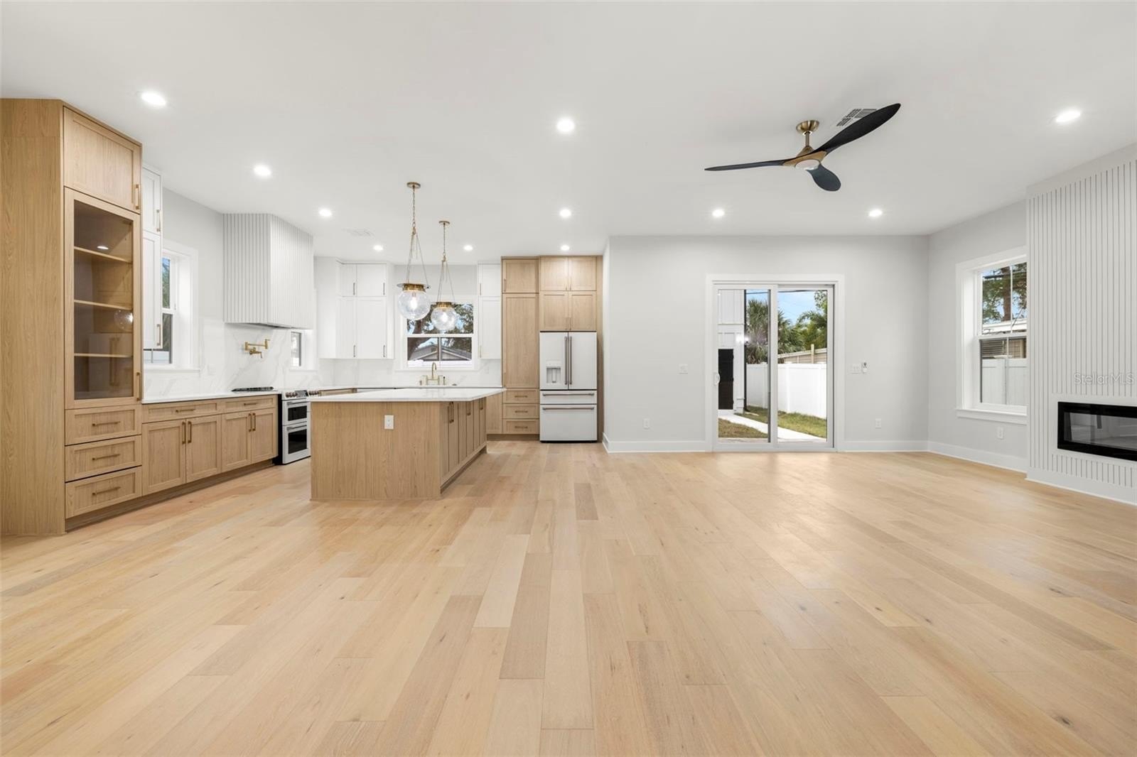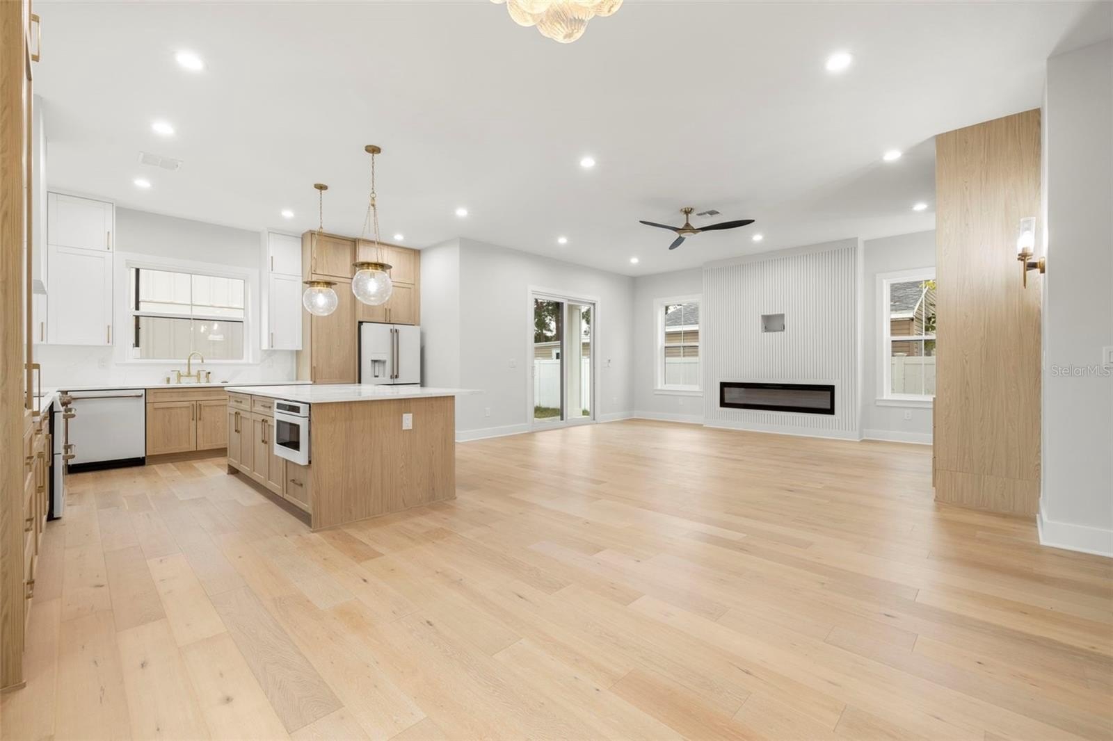 Decorative fireplace for warmth & charm. Outdoor Living at its finest with fenced yard, patio, porch & BBQ area perfect for entertaining