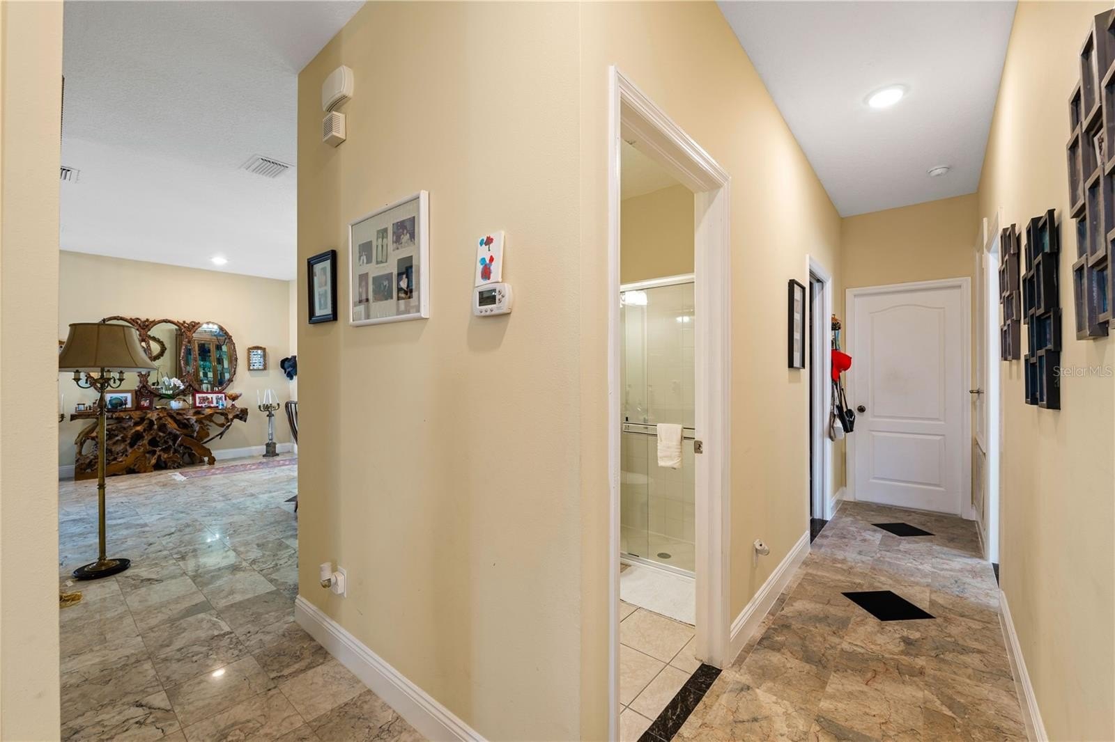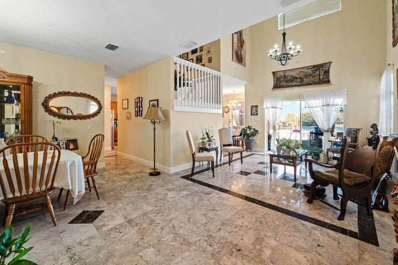 Gated Community - LIVE OAK. Conveniently located in New Tampa. New Roof 2022 .This 5 bedroom, 3 bath, 3 car garage, home will not disappoint. Enter to the high volume ceilings of the formal Dining/Living Room combination. Large open kitchen, Eat-in space in Kitchen large enough for 6 person table. Open to family room - so you can see all that is going on while in the kitchen. All of downstairs has Marble Flooring. Wood Laminate Stairs and in all Bedrooms upstairs. Beautiful pond view thru slider doors. Large Main Bedroom features plenty of room for all of your furniture. Spacious for an additional sitting room, large walk-in closet. Large Master Bathroom featuresl, double vanities Bedrooms #3 and #4 are adequately sized. Bedroom #5 is oversized with large Walk-In Closet. All share full bath. Bedroom #2 is located on the first level with full bathroom across the hall. Live Oak Community has three entrances. Large Community Center features Clubhouse, Fitness Center, Lap Pool, Zero Entry Pool, Community Playgrounds throughout, Tennis Courts. Conveniently located to Schools, Restaurants, Shopping, Offices, I-75, USF, Morris Bridge Road, Hospitals, Wiregrass Mall, Premium Outlet Mall and all that New Tampa and Wesley Chapel have. Welcome Home to your new "Live" Oak Community ! New Roof 2022, New Fence.