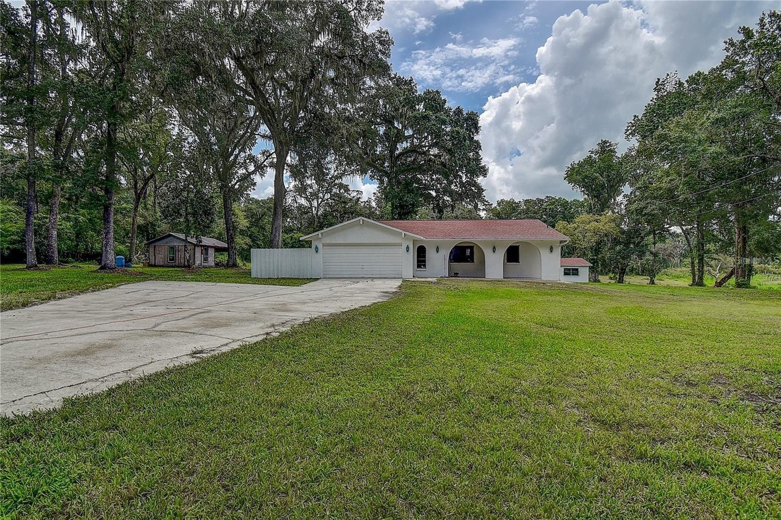**NO FLOOD INSURANCE REQUIRED**NO HISTORY OF FLOODING**OPPORTUNITY KNOCKS - INVESTOR special, or handyman that wants a project! NEEDS TLC but get a great deal, low price and you remodel to your taste! TWO BUILDINGS WITH OVER 3500 SQFT UNDER ROOF TOTAL (CONCRETE BLOCK CONSTRUCTION)! 5 ACRES – AGRICULTURAL ZONING! MAIN HOUSE - 2br/2ba/2gar 1518 SQFT LIVING Plus 500sqft Garage. DETACHED OFFICE/BEDROOM – 512 SQFT LIVING. OUTBUILDING – 1008 SQFT – MULTIPURPOSE with its own power, water, septic is great for an OFFICE/HOME BUSINESS, or it CAN BE CONVERTED to SECOND LIVING AREA, RENTAL UNIT, AIR BNB! The outbuilding was used as a HUGE DOG KENNEL 84 ft long with 28 Dog Runs. Possible horse stable, workshop or even gun range. The MAIN HOME kitchen and bathrooms were updated. A/C 2018. Home features a Split Plan Design, spacious Master Bedroom with EN SUITE! New PAVERED DECK and front porch! 500sqft shed w/ windows, heavy shelves, covered patio to house oversized tools, agriculture, landscaping equipment etc. Horse stable for 2 horses w/water troughs, running water, fully functional lights and several outlets. PLENTY OF ROOM TO PARK ALL YOUR TOYS, TRACTORS, RVS, CAMPERS, EQUIPMENT & MORE! Large 28X16ft CONCRETE SLAB on left side of house! Prepped for roaming horses, cattle, dogs, chickens or raising plant nurseries, kitchen garden or commercial agriculture. Amazing wildlife on this farm including turkey nests, turtles, hawks, owls and other wild birds. Plenty of firewood to last you at least 10 years. ENJOY *SPECTRUM HIGH SPEED INTERNET* NO HOA, NO CDD and NO deed restrictions, so do what you want anytime you want, in addition its Ag zoning so cheaper property taxes! No flood insurance. Enjoy life with peace and tranquility on this amazing rural property with easy access to modern conveniences, and all attractions! Endless potential. Paved roads all the way to the property. Surrounded by other large parcels. Close to I-75 for quick access to the airport, Tampa, Clearwater and St. Pete Beaches (Ranked in the top 5 Beaches in the US).