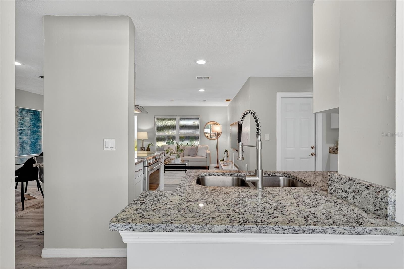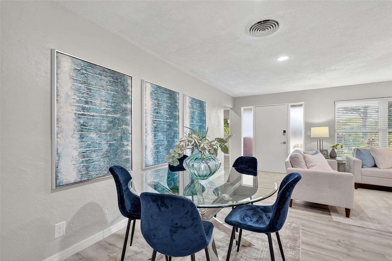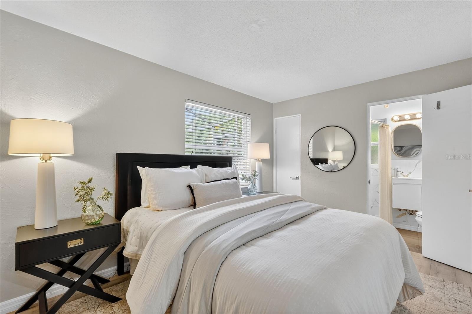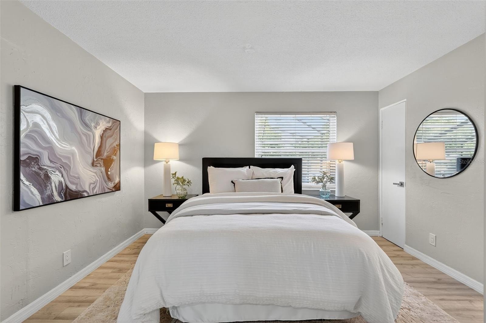 The home has been thoughtfully updated with quality finishes and materials. The open feel created by the high ceilings makes the 1,284 square feet feel spacious and inviting. The hard flooring is both attractive and practical for the Florida climate.