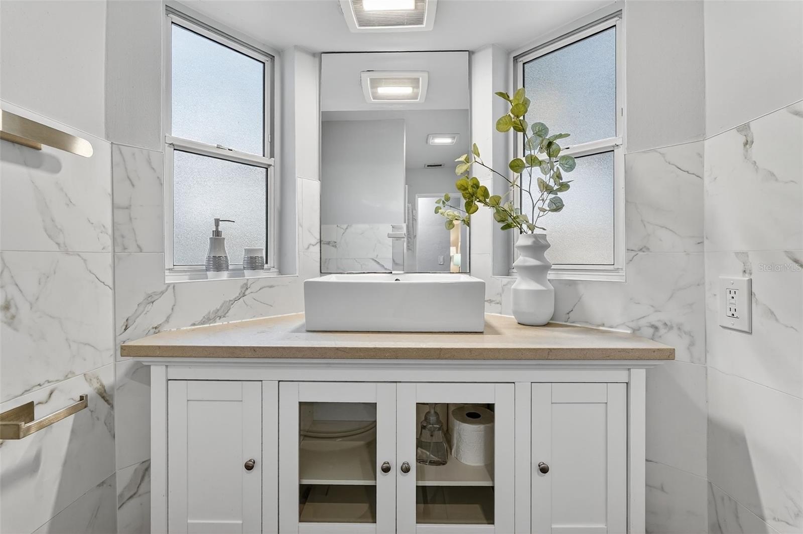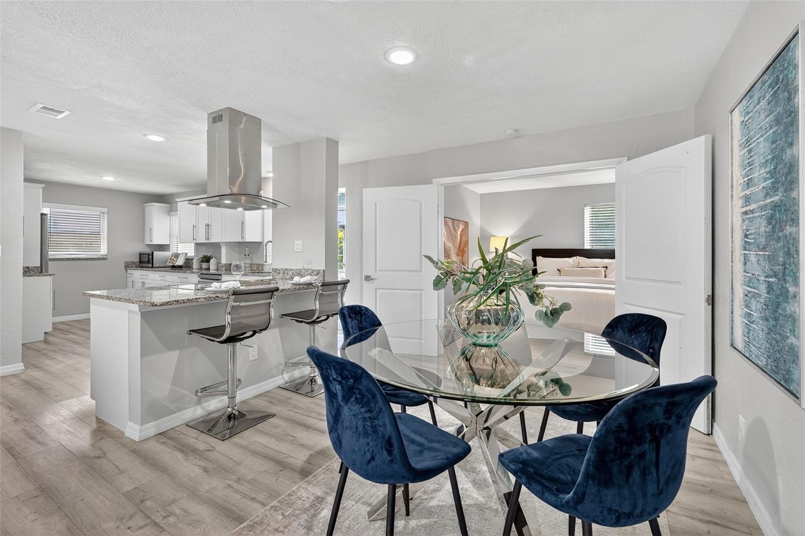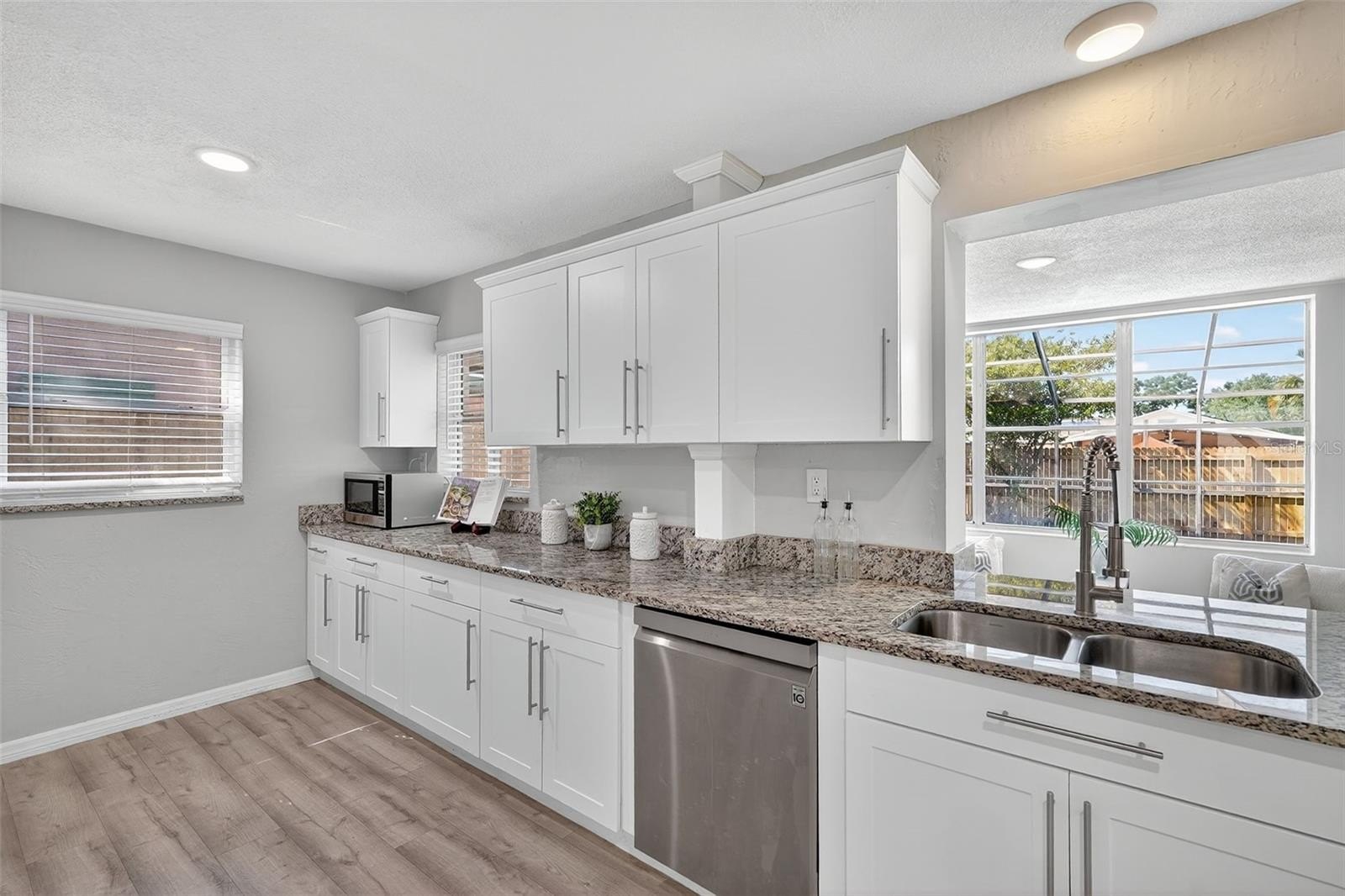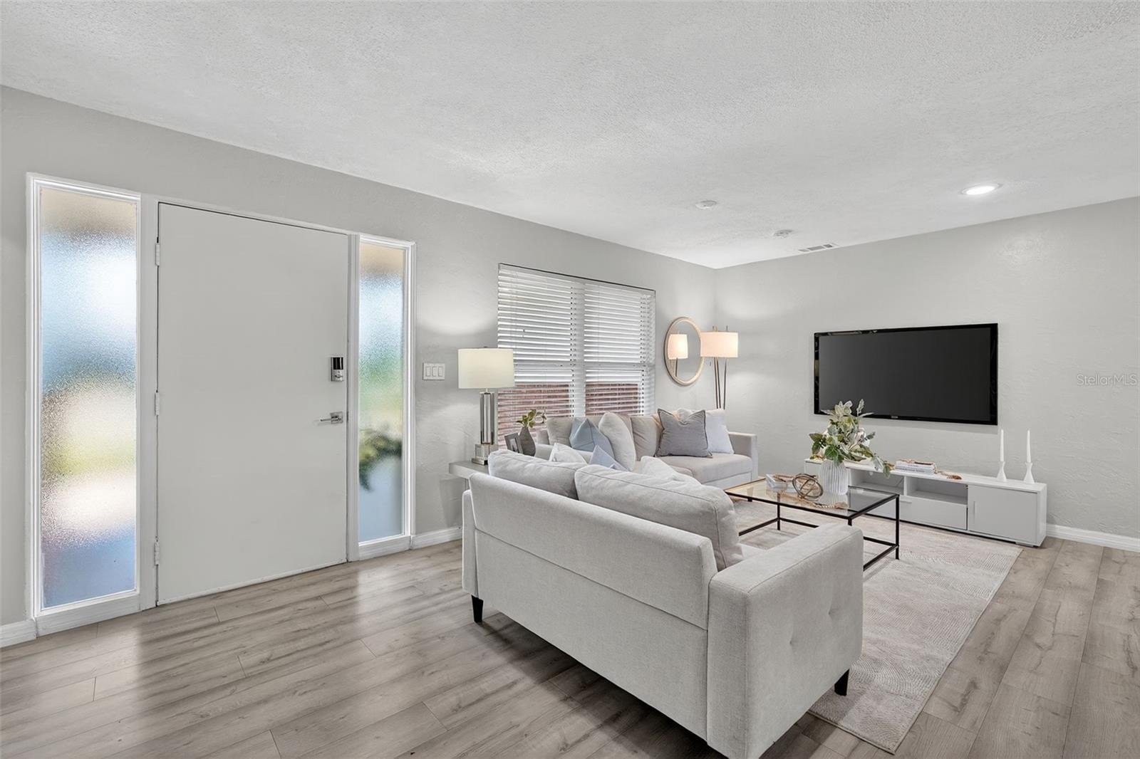 The home has been thoughtfully updated with quality finishes and materials. The open feel created by the high ceilings makes the 1,284 square feet feel spacious and inviting. The hard flooring is both attractive and practical for the Florida climate.