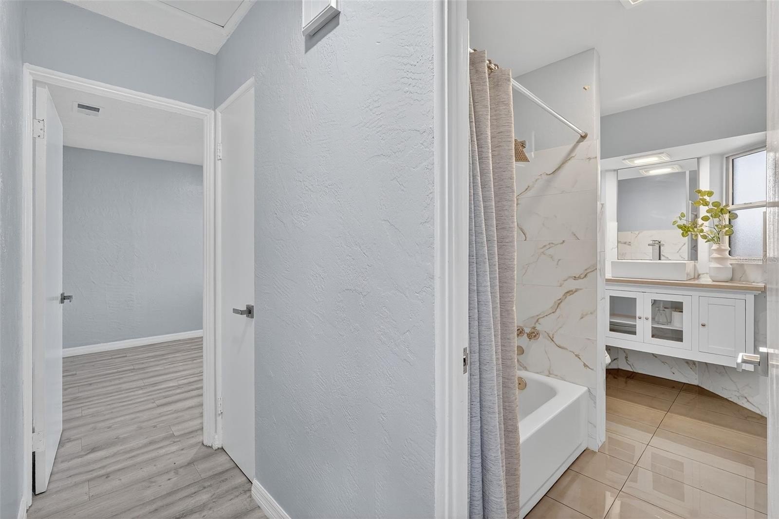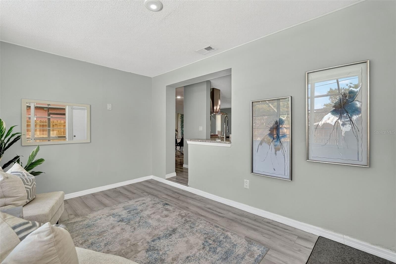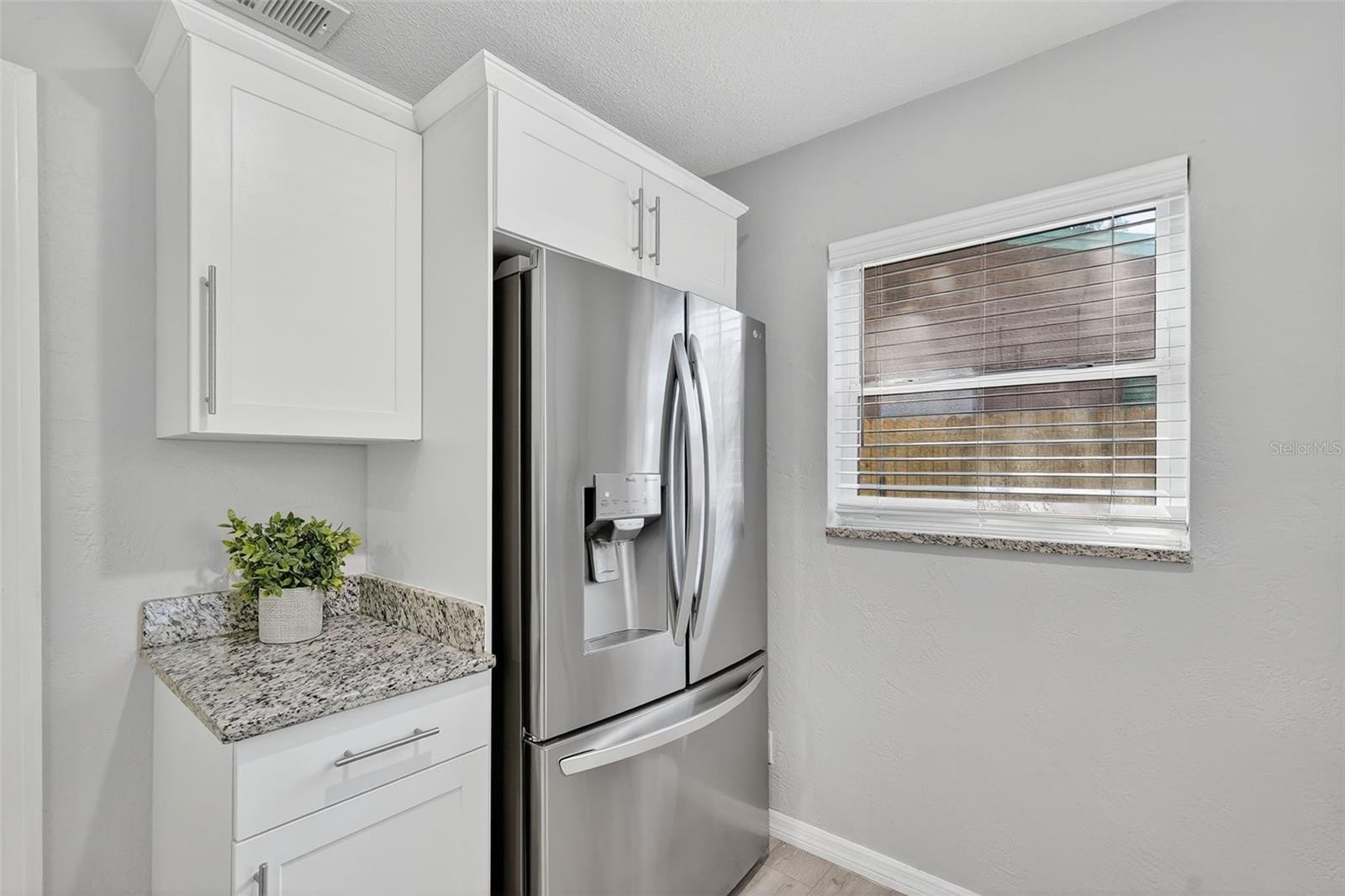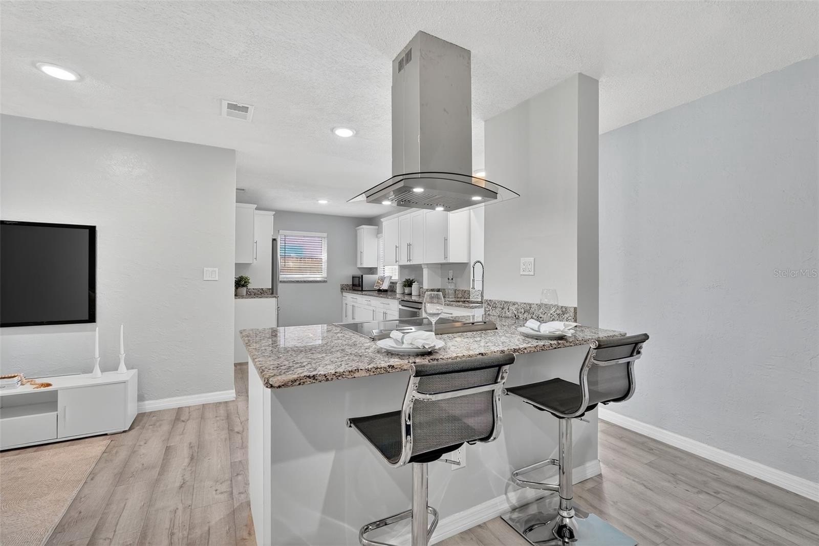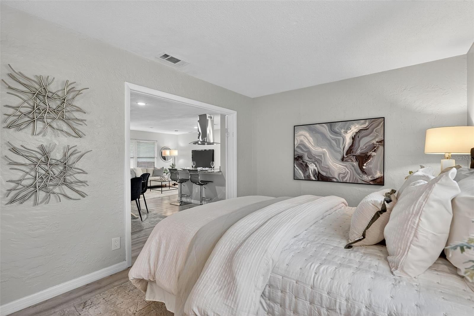 The home has been thoughtfully updated with quality finishes and materials. The open feel created by the high ceilings makes the 1,284 square feet feel spacious and inviting. The hard flooring is both attractive and practical for the Florida climate.