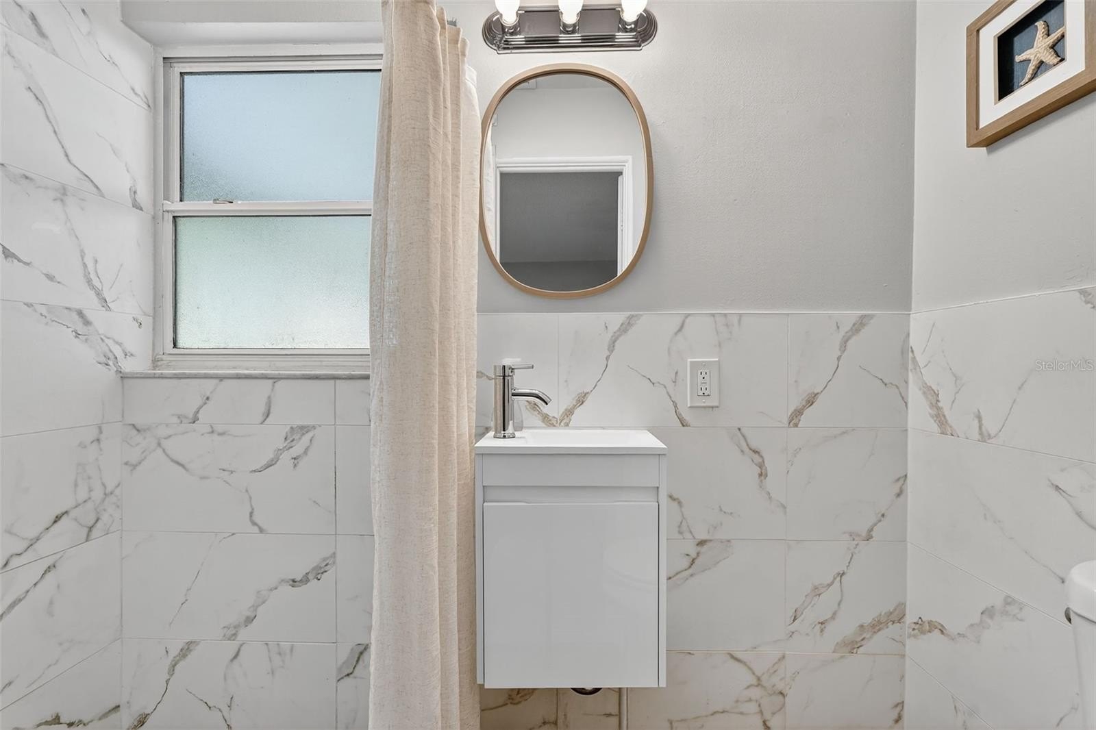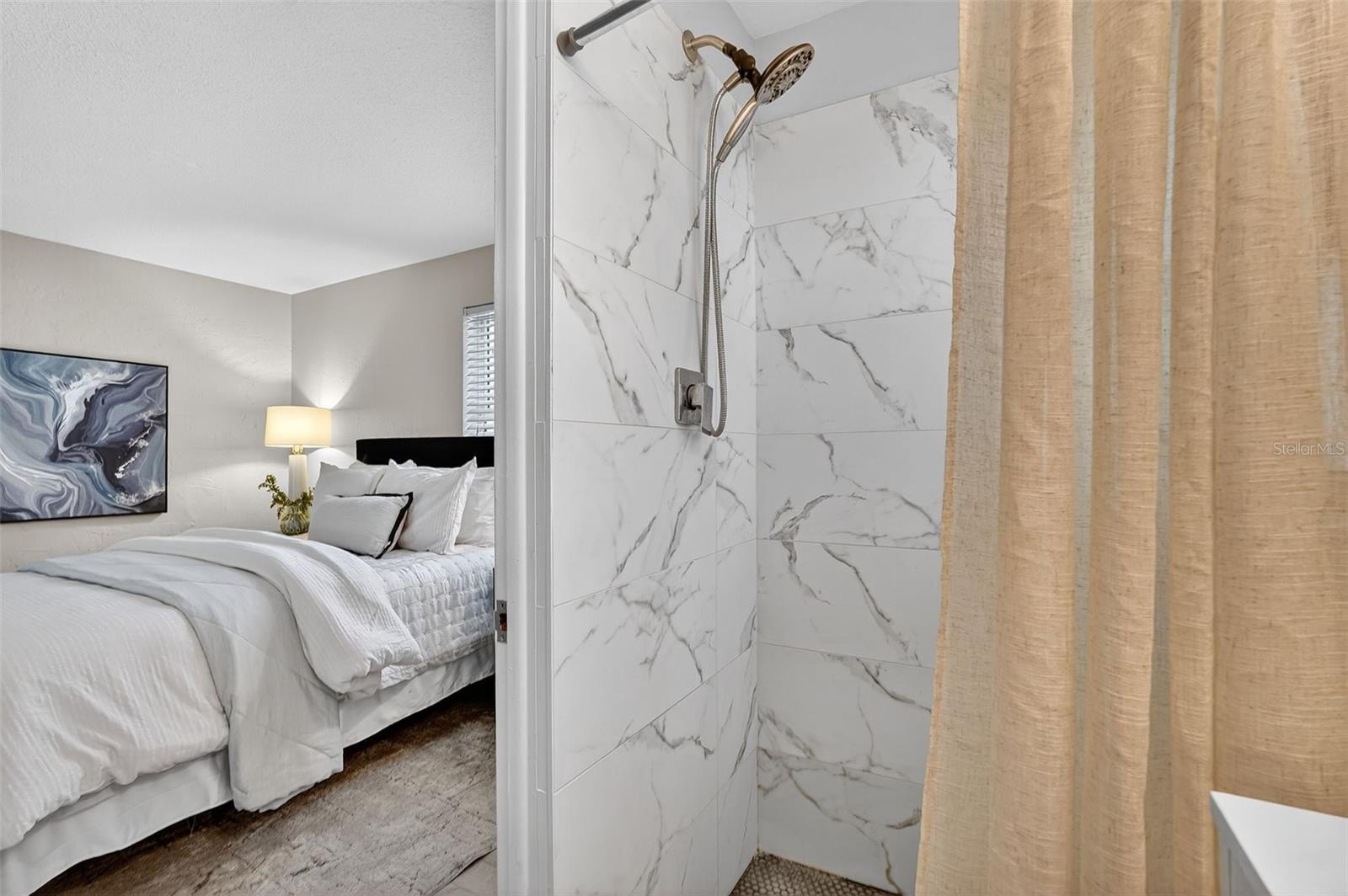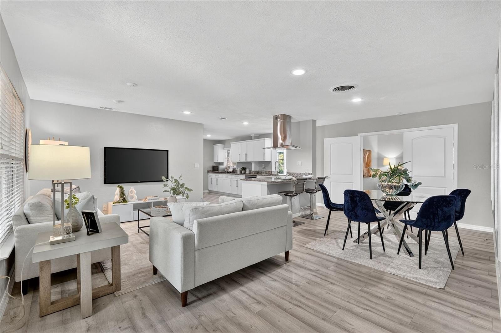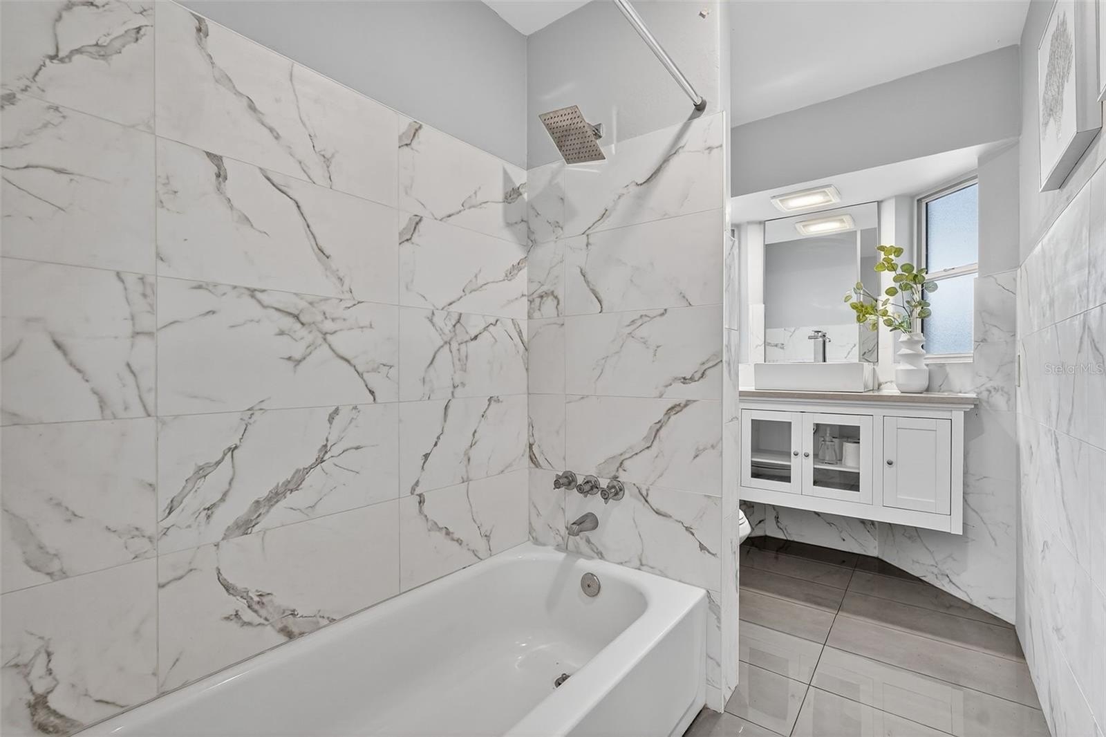 The home has been thoughtfully updated with quality finishes and materials. The open feel created by the high ceilings makes the 1,284 square feet feel spacious and inviting. The hard flooring is both attractive and practical for the Florida climate.