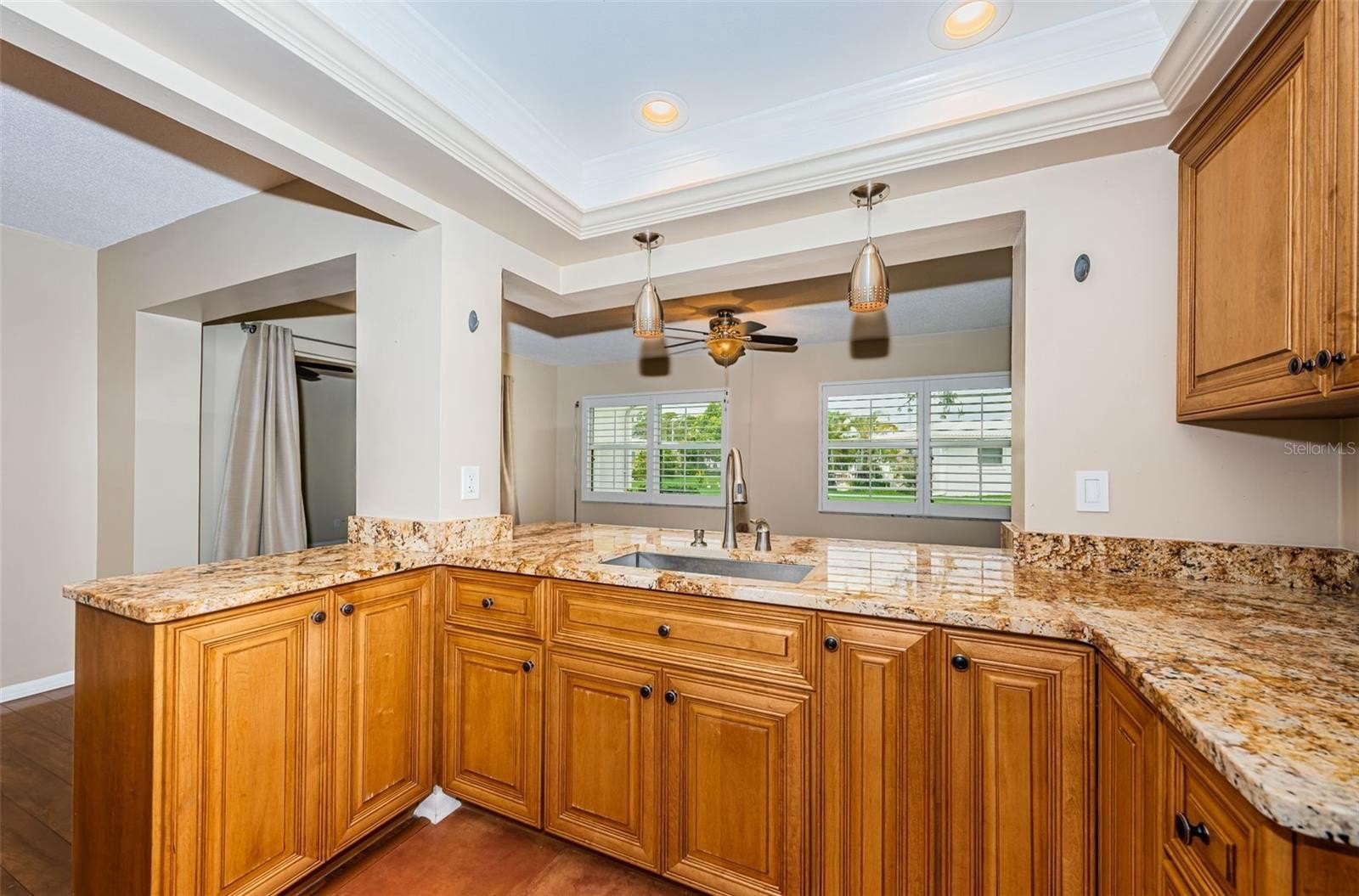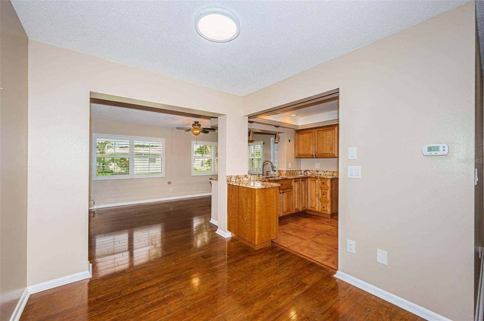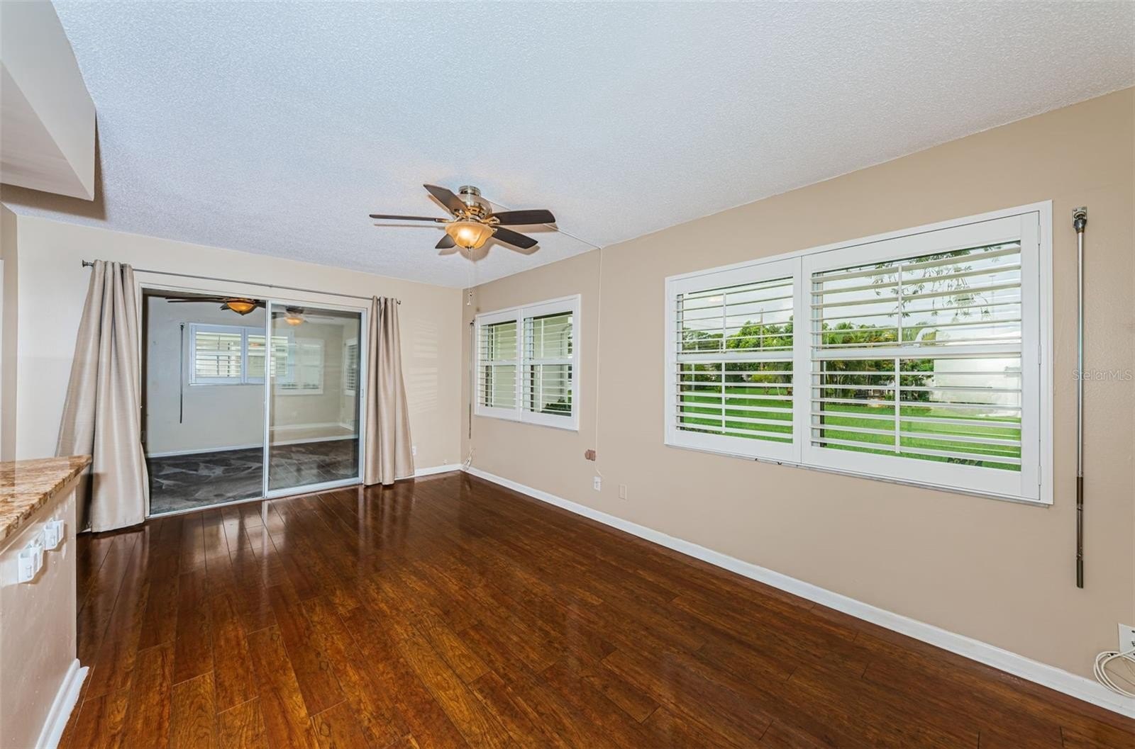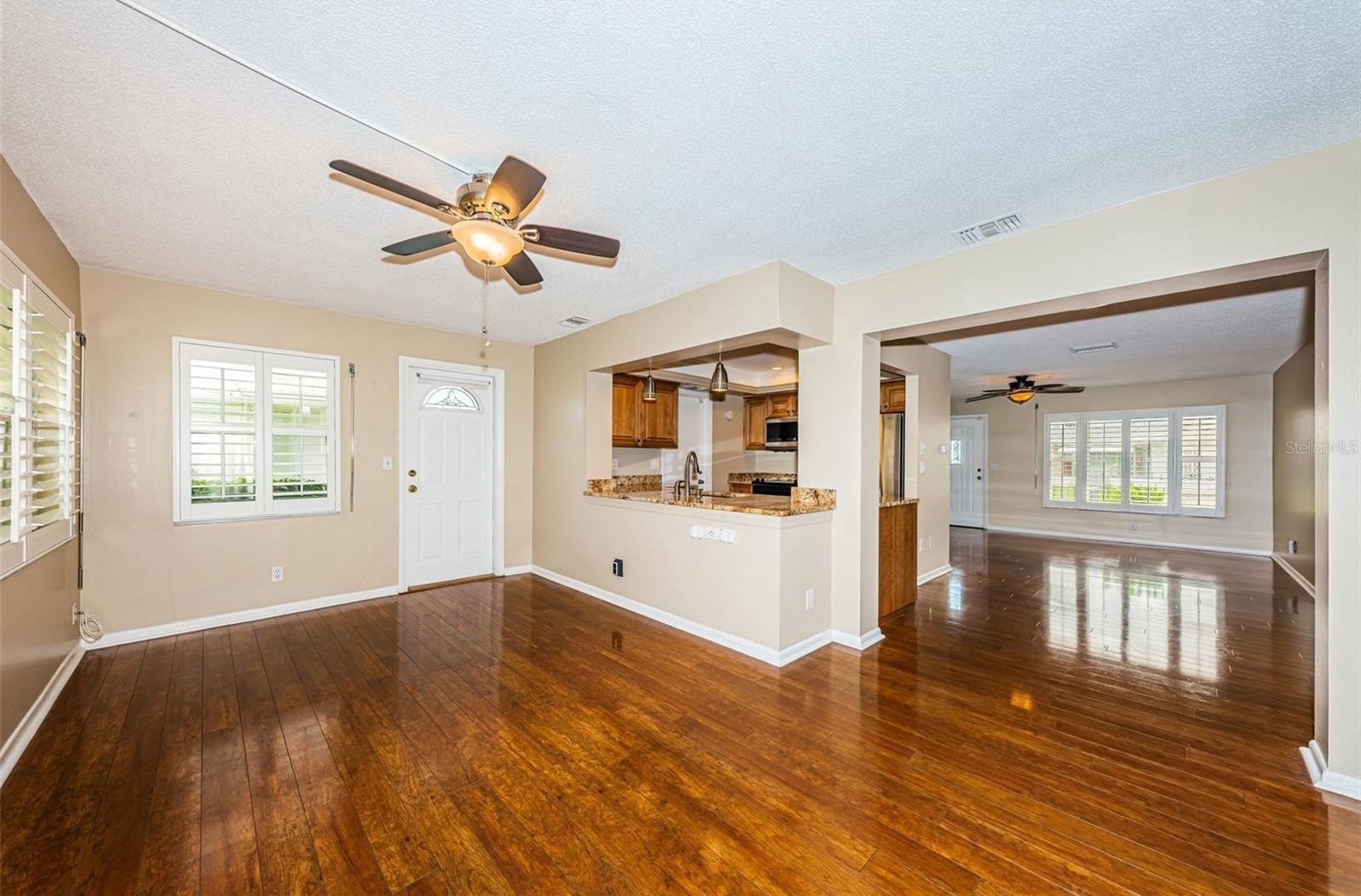 Inside, you’ll find solid wood floors in the main living areas, a bright and spacious layout, and a thoughtfully renovated kitchen featuring rich wood cabinetry, granite countertops, and plenty of storage. Both bathrooms have been tastefully updated, with the primary bath boasting a walk-in shower for comfort and convenience. Plantation shutters, double-paned windows with hurricane shutters, and an updated electrical panel (2018) provide peace of mind. Additional updates include a new water heater (2024) and brand-new sod (to be installed) for the yard.