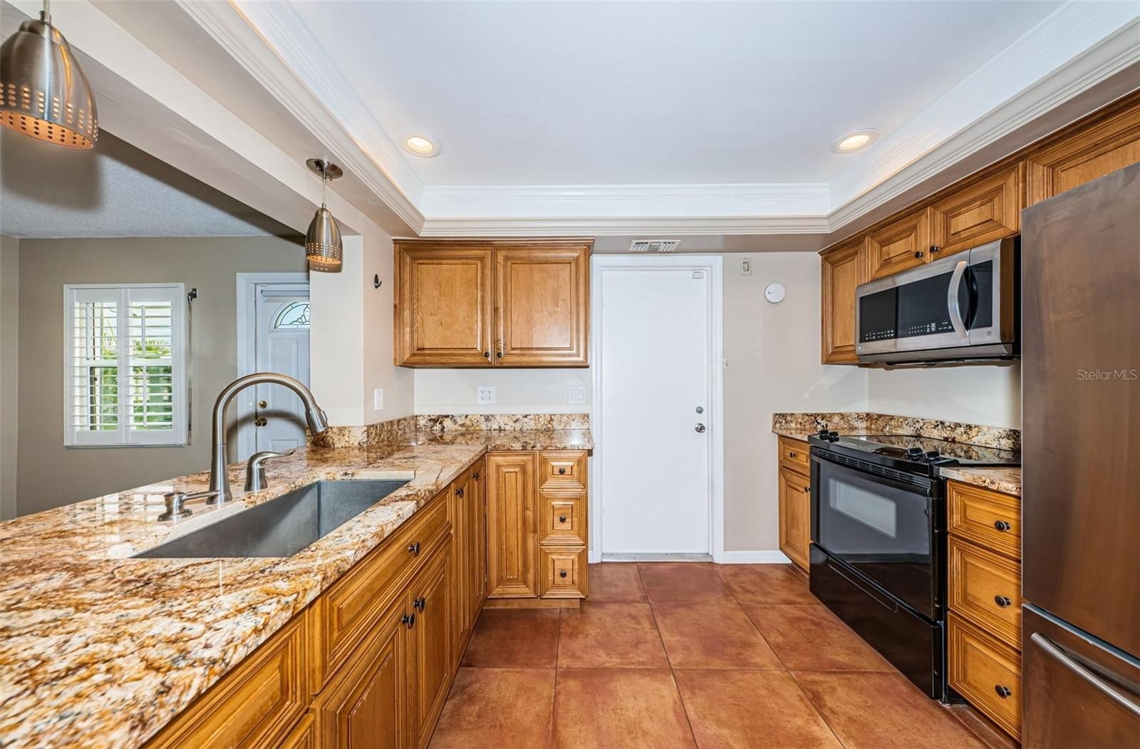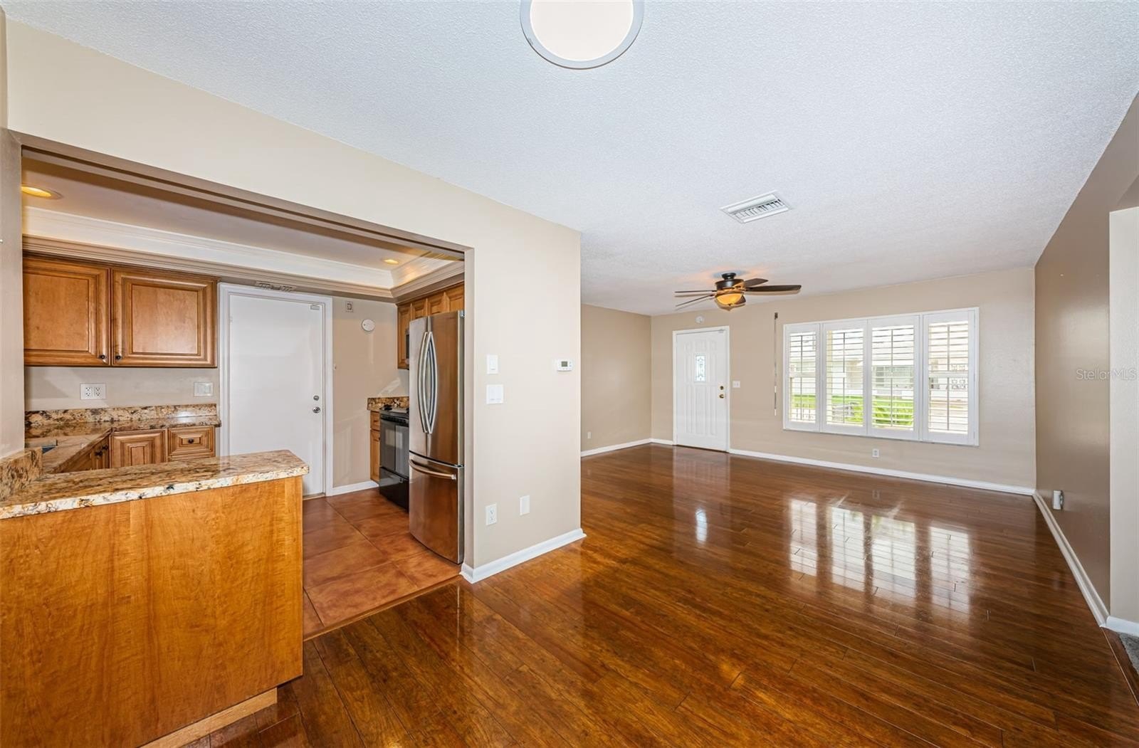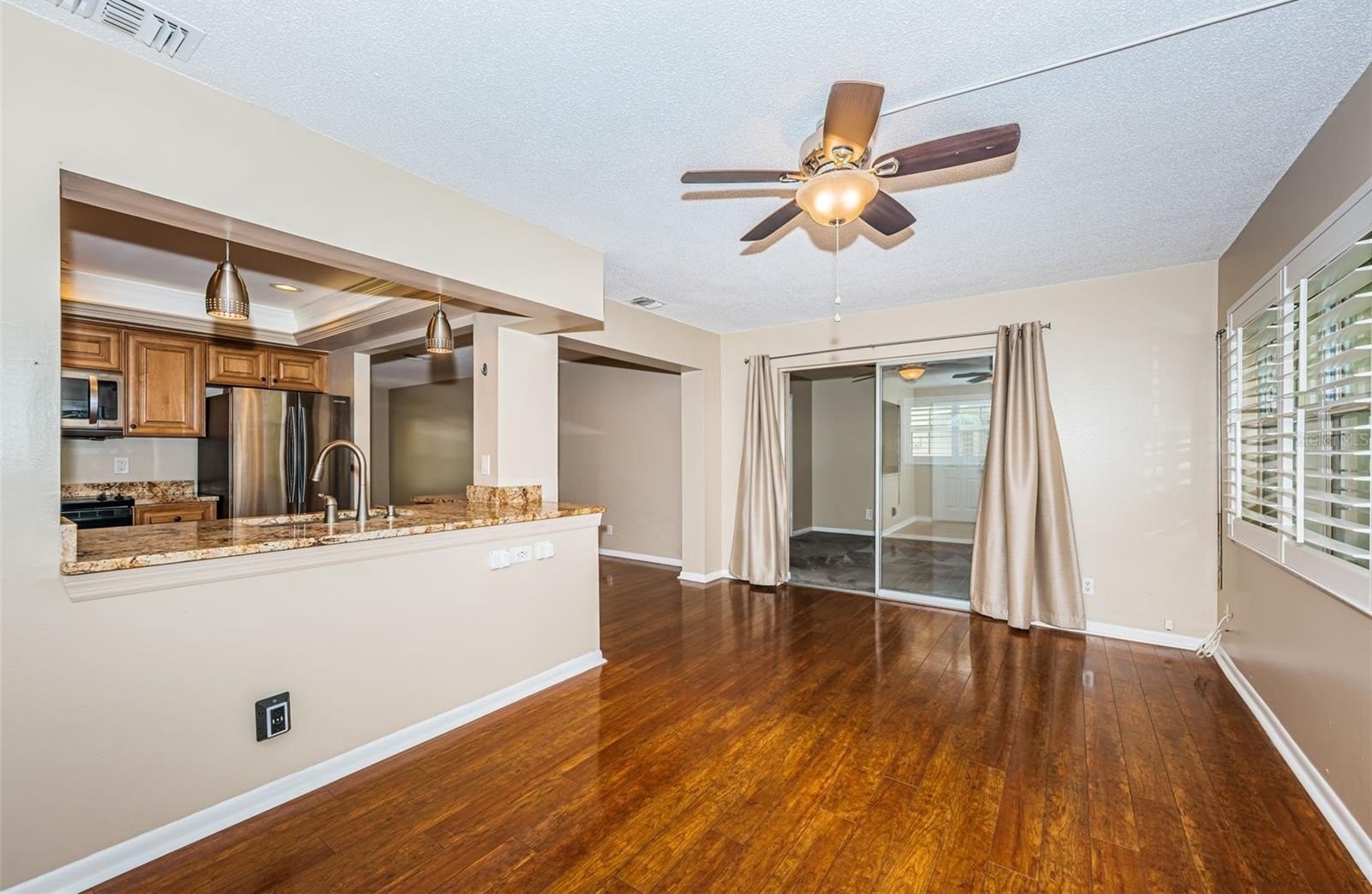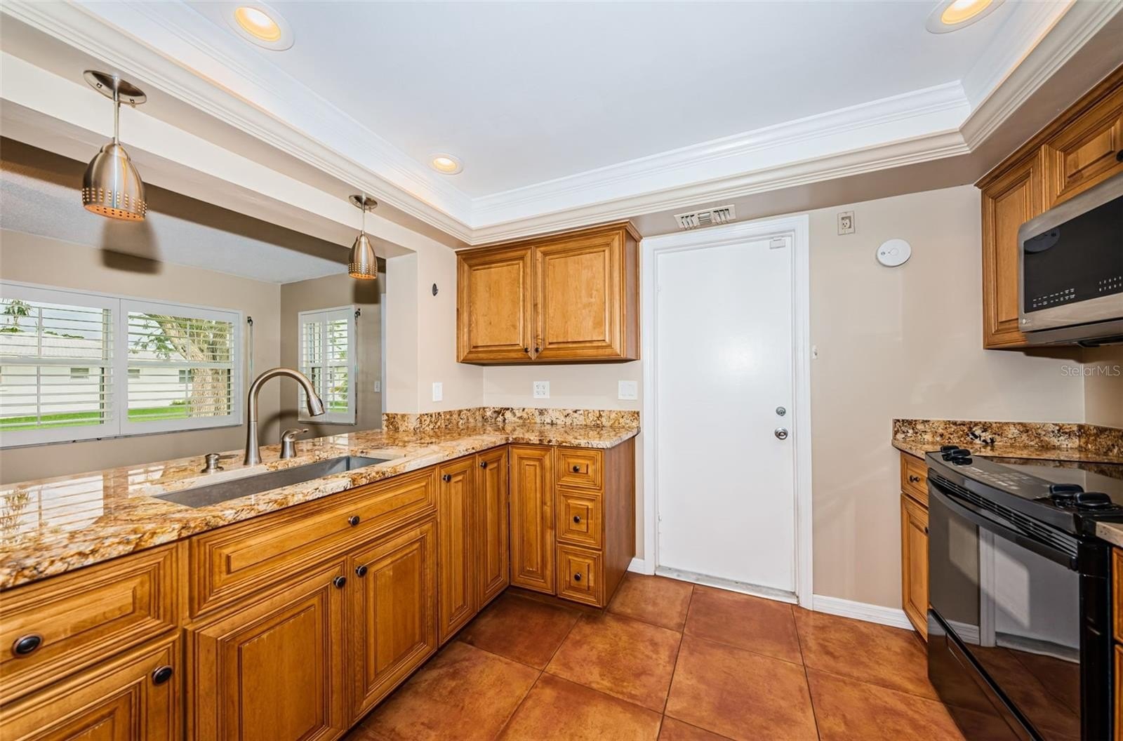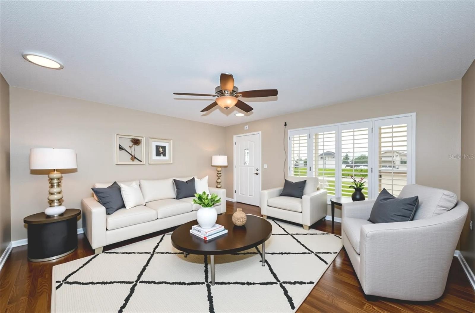 Inside, you’ll find solid wood floors in the main living areas, a bright and spacious layout, and a thoughtfully renovated kitchen featuring rich wood cabinetry, granite countertops, and plenty of storage. Both bathrooms have been tastefully updated, with the primary bath boasting a walk-in shower for comfort and convenience. Plantation shutters, double-paned windows with hurricane shutters, and an updated electrical panel (2018) provide peace of mind. Additional updates include a new water heater (2024) and brand-new sod (to be installed) for the yard.