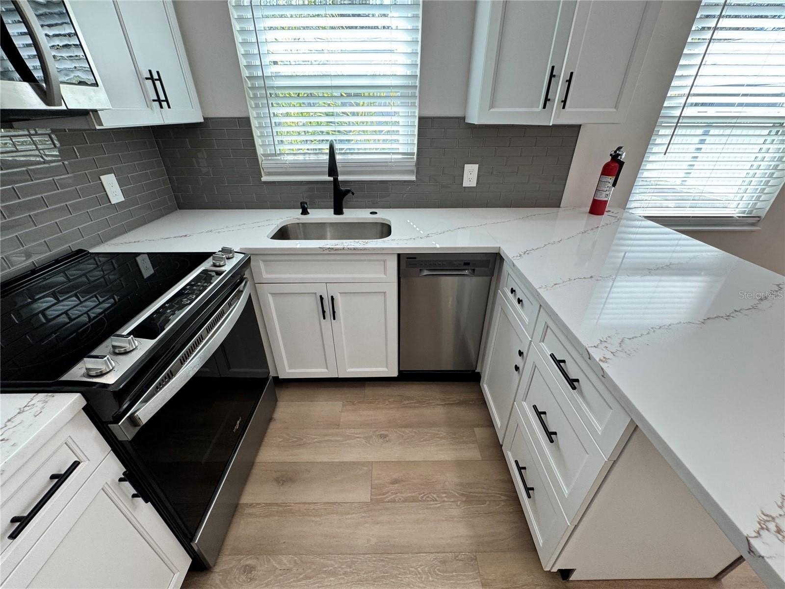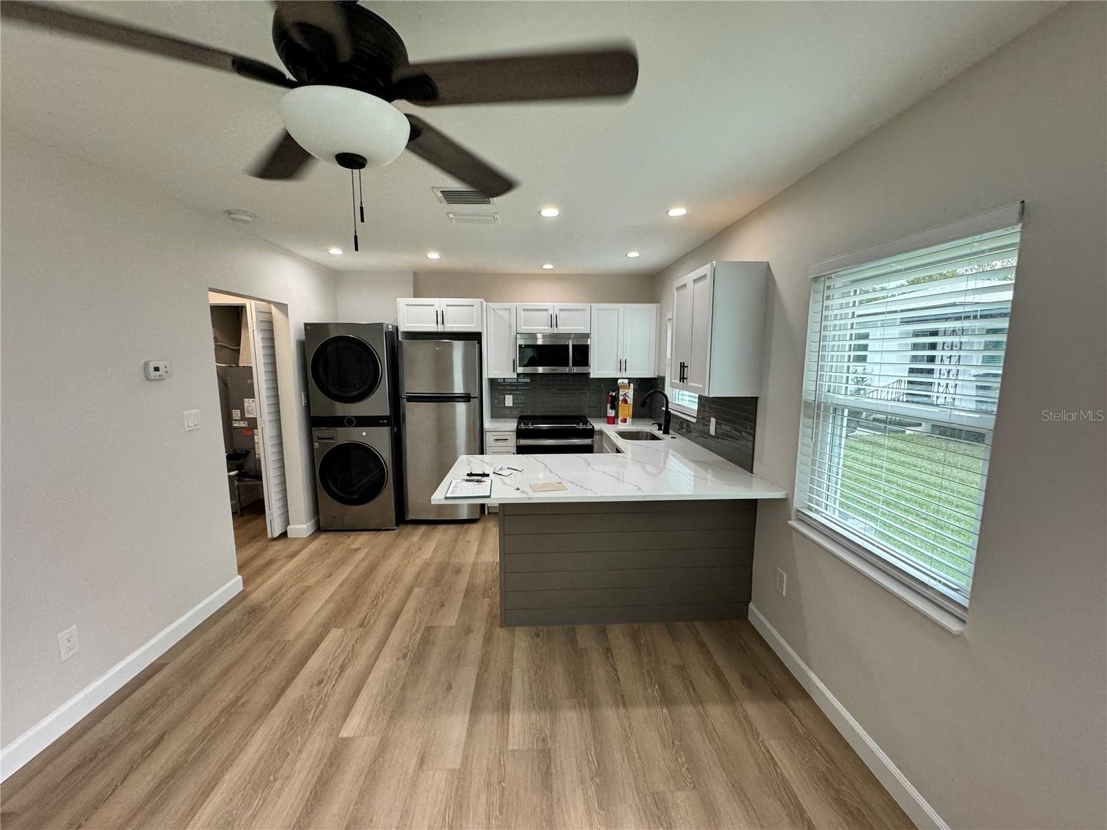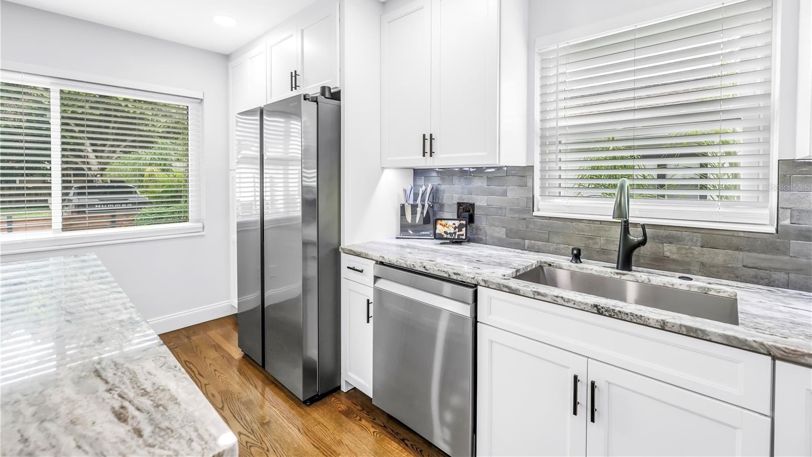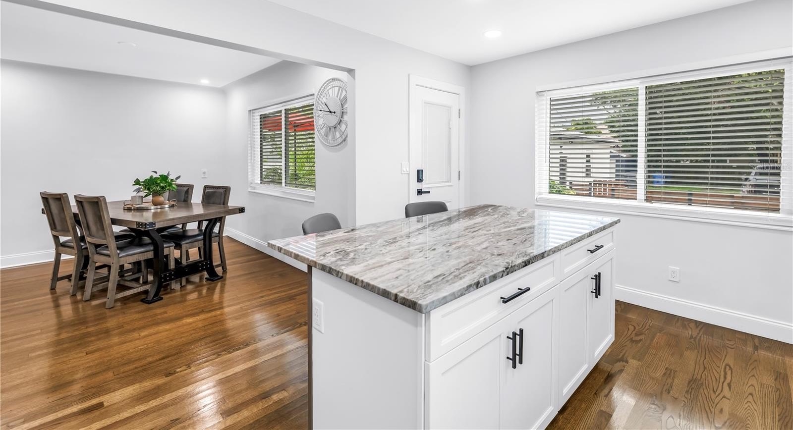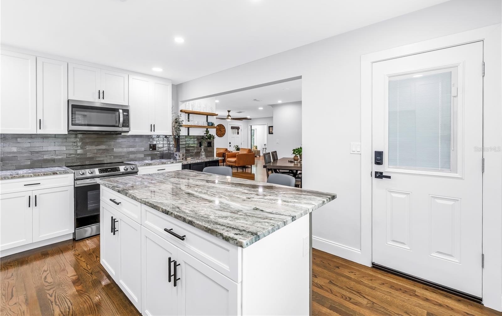 The main residence offers 4 bedrooms and 2 bathrooms across 1,508 sq ft of heated space and showcases authentic mid-century character throughout. Step inside to experience the stunning original 2¼" x ¾" solid oak hardwood floors, professionally sanded, stained, and finished with three coats of urethane — restored to an impeccable, like-new condition. Architectural highlights include graceful cove ceilings and true plaster walls, all freshly painted with a professional touch. The kitchen was fully renovated in 2023, featuring new cabinets, countertops, and appliances that balance modern functionality with classic design.