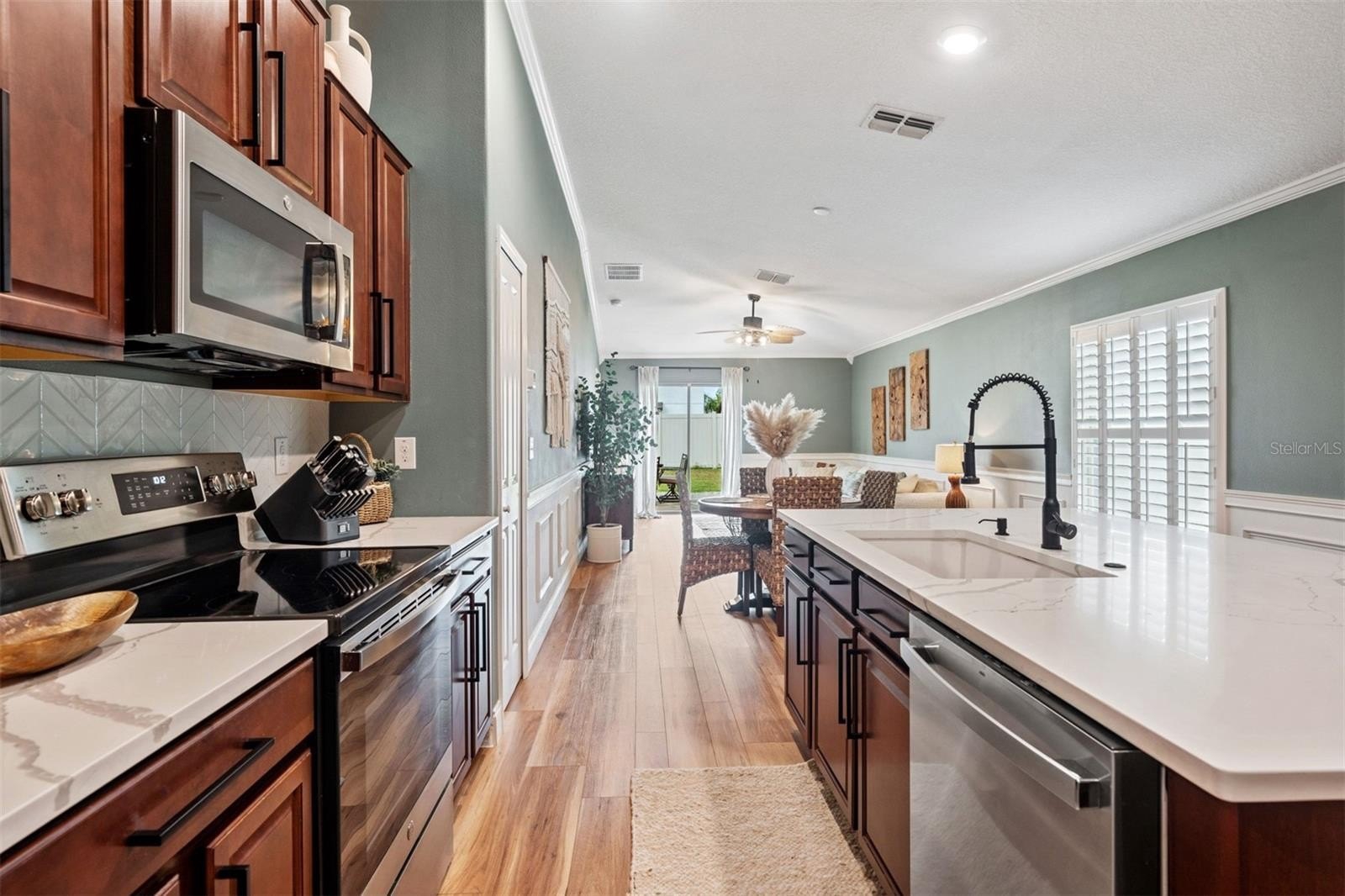 Discover this beautifully updated home nestled in the heart of desirable Cypress Mill. Boasting a NEW ROOF with architectural shingles and a 13 MONTH HOME WARRANTY for buyer's peace of mind!! It is also high and dry with no flood insurance required. This home features attractive luxury plank flooring, stylish crown molding and box trim throughout the main living area as well as stately plantation shutters and classic interior details, this home is sure to please. The spacious kitchen features elegant quartz countertops, stainless steel appliances and a large island perfect for gatherings that can easily spill over onto the large brick-paved patio featuring a charming pergola that creates an ideal outdoor living space completed with a vinyl fenced yard. Enjoy the open concept living area with soaring ceilings and a split floor plan that offers a generous primary suite complete with a sizable walk in closet and en-suite bathroom. Storage abounds here as well as an indoor laundry/mud room conveniently located by the garage entrance. At Cypress Mill you can feel like you are on vacation year round with the resort style amenities which are just a short walk from your front door. The club house features a beautiful resort style pool complete with cabanas, lounge areas & dining tables. There is even a splash area for the little ones as well as multiple play grounds, basketball and tennis/pickle ball courts a dog park and a gym. Conveniently located near shopping, restaurants and recreational activities with easy access to I-75. Don't miss your chance to own this exceptional home in one of the most sought after neighborhoods in the area. Schedule your private showing today!