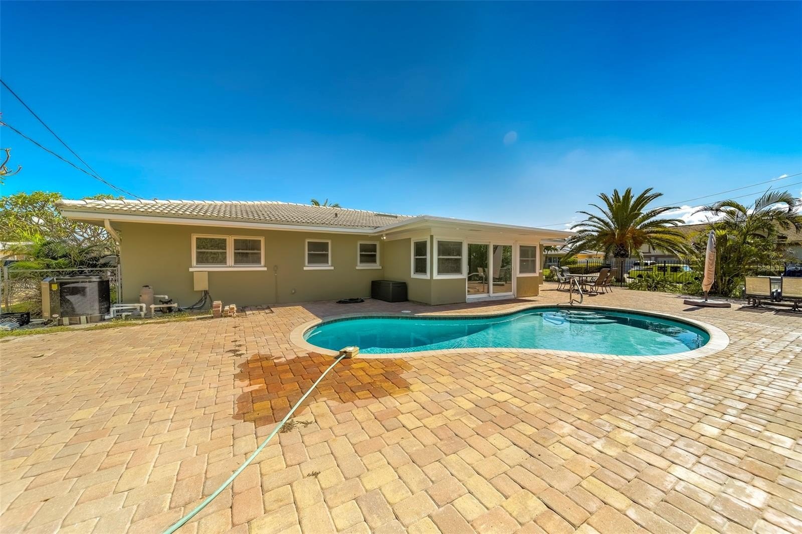 Welcome to 110 21st Street in desirable Belleair Beach, a beautifully remodeled 3-bedroom, 2-bath home perfectly situated just steps from Gulf beach access at the end of the street. Set on a spacious corner lot, this property combines modern upgrades with coastal charm. Every detail has been thoughtfully updated, including brand-new hurricane impact windows and doors, a new hurricane-rated garage door, and elegant finishes throughout. The outdoor oasis features an in-ground pool with a paver deck, fenced yard for privacy, lush St. Augustine grass, and stunning tropical landscaping that enhances the curb appeal. Inside, the open layout and fresh design make this home ideal for everyday living or entertaining. Enjoy the best of beachside living in a quiet, upscale community while still being close to shopping, dining, and all the Gulf Coast has to offer.