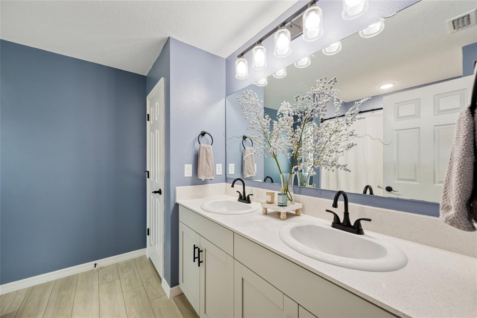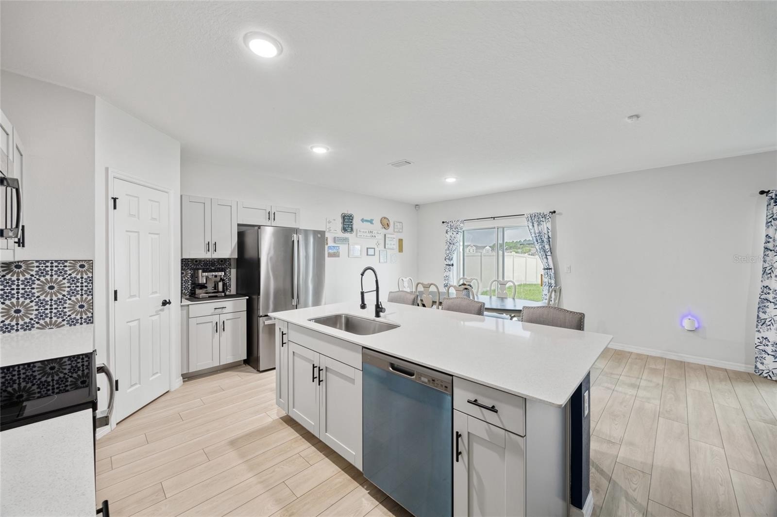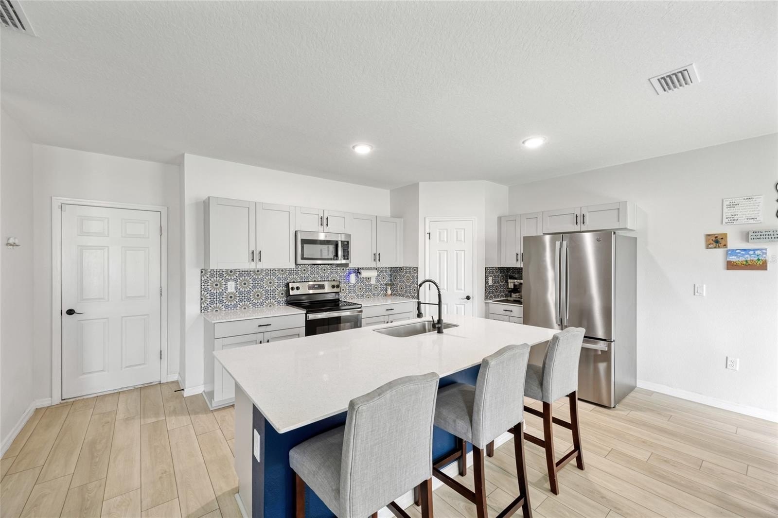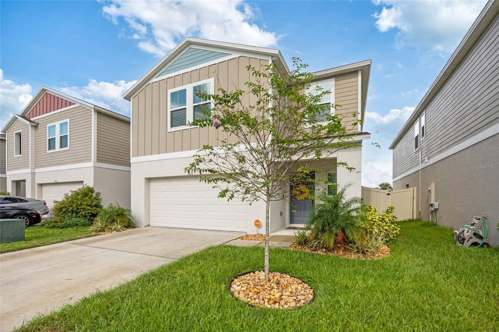 You’ve got to see this stunning nearly-new home that’s ready to impress! Just 2 years old, this beautifully upgraded 4-bedroom, 2.5-bath gem combines modern style, smart upgrades, and move-in ready perfection. Step inside to luxury vinyl plank flooring, soaring ceilings, and an open floor plan flooded with natural light. The gorgeous kitchen boasts quartz countertops, a spacious center island, and views straight to the backyard through sliding doors—ideal for entertaining family and friends. Enjoy the added bonus of a whole-home water softener system for better water quality and appliance longevity. This home truly shines with a two-car garage, a fully fenced backyard perfect for privacy and pets, an automatic sprinkler system, and fresh, updated landscaping that boosts curb appeal. Upstairs, the large loft offers endless possibilities—think second living room, home office, or play area. The primary suite is a dream with two walk-in closets and an en suite bathroom featuring double sinks and quartz countertops. Three additional spacious bedrooms, a full bath with a rain shower, and a convenient upstairs laundry room complete the picture. Enjoy peace of mind with no rear neighbors and a location less than a 5-minute walk from amazing resort-style amenities—including a zero-entry pool, playground, and dog park. Plus, you’re just minutes from Florida’s first man-made lagoons, bringing everyday resort-style living right to your doorstep. With no CDD fees and still under the builder’s 10-year structural warranty, this home truly has it all. Don’t miss your chance—this is the home you’ve been waiting for! Schedule your showing today before it’s gone!