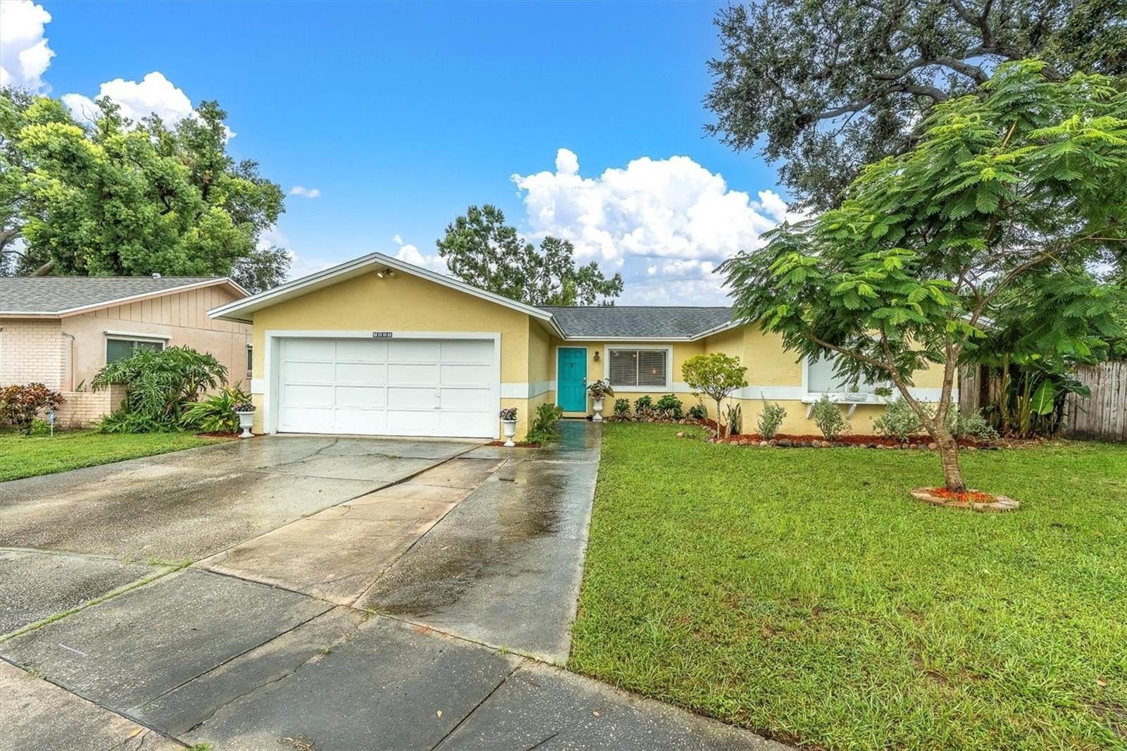 Welcome to 7802 Bristol Ct, St. Petersburg—a 4-bedroom, 2-bath home with a rare double garage, tucked on a quiet cul-de-sac in sought-after West St. Pete. The primary suite offers a spacious walk-in closet and an updated bathroom, while the open layout features easy-care porcelain tile flooring, a bright kitchen with granite counters, and seamless flow to the screened patio and generous backyard with plenty of room for a pool! The outdoor space is perfect for family fun, entertaining, or future value. Located in unincorporated Pinellas County, the property also opens doors for flexible investment opportunities such as short-term rentals. Just 15 minutes from Downtown St. Pete, Clearwater, two airports, and the Gulf beaches—and close to Northside Christian School, Bay Pines VA, shopping, and dining—this home offers comfort, style, and an unbeatable location.