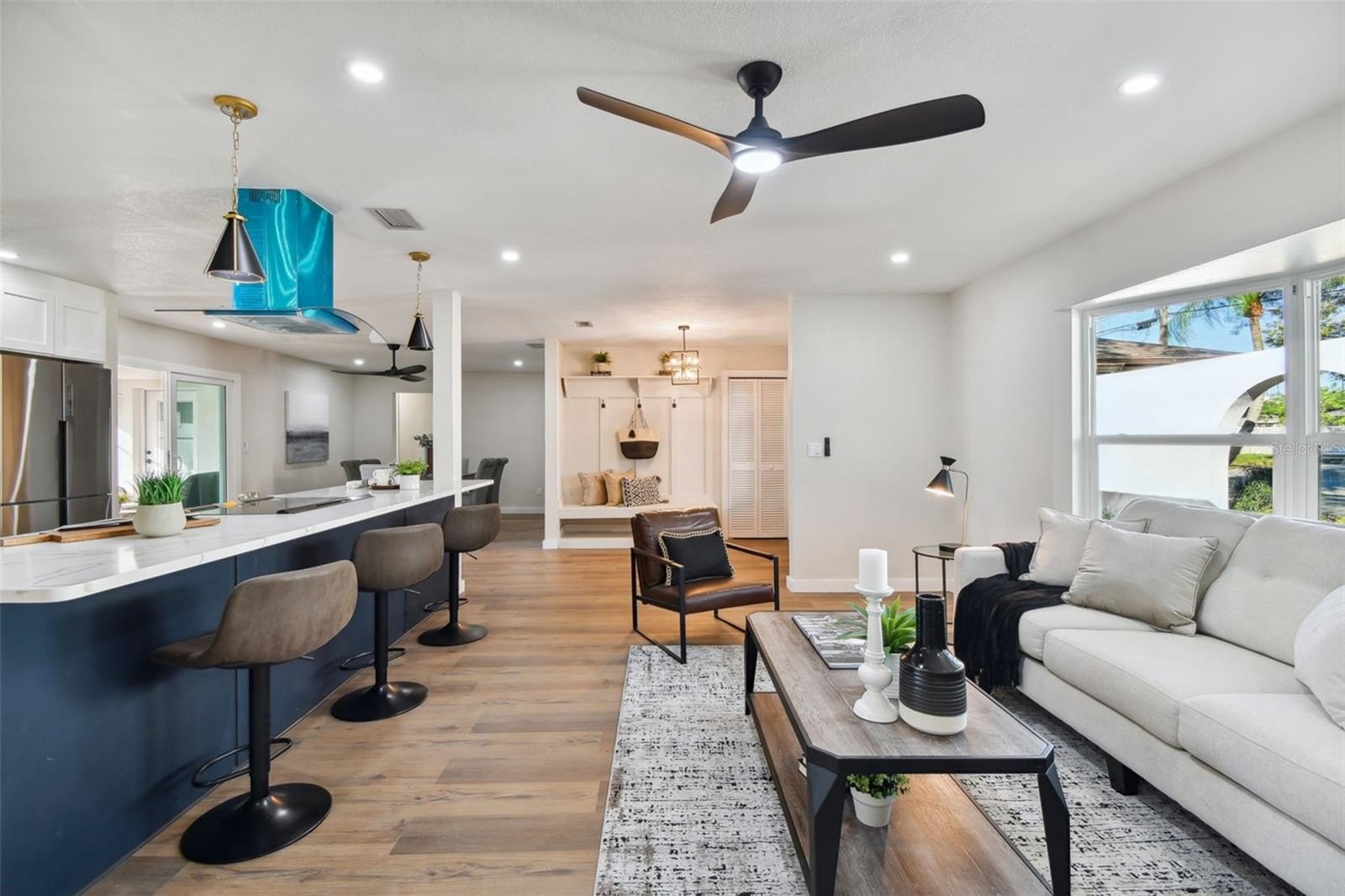 Property was furnished for pictures. Welcome to your family’s next chapter in this beautifully updated 3-bedroom, 2-bathroom home, perfectly situated on an oversized corner lot in the desirable Estates of Florida. This home has proven its strength—remaining completely dry through two major hurricanes with zero flooding—offering priceless peace of mind. Step inside to a bright, open layout ideal for family living and weekend entertaining. Luxury flooring flows throughout the spacious living area, where oversized windows fill the home with natural light.