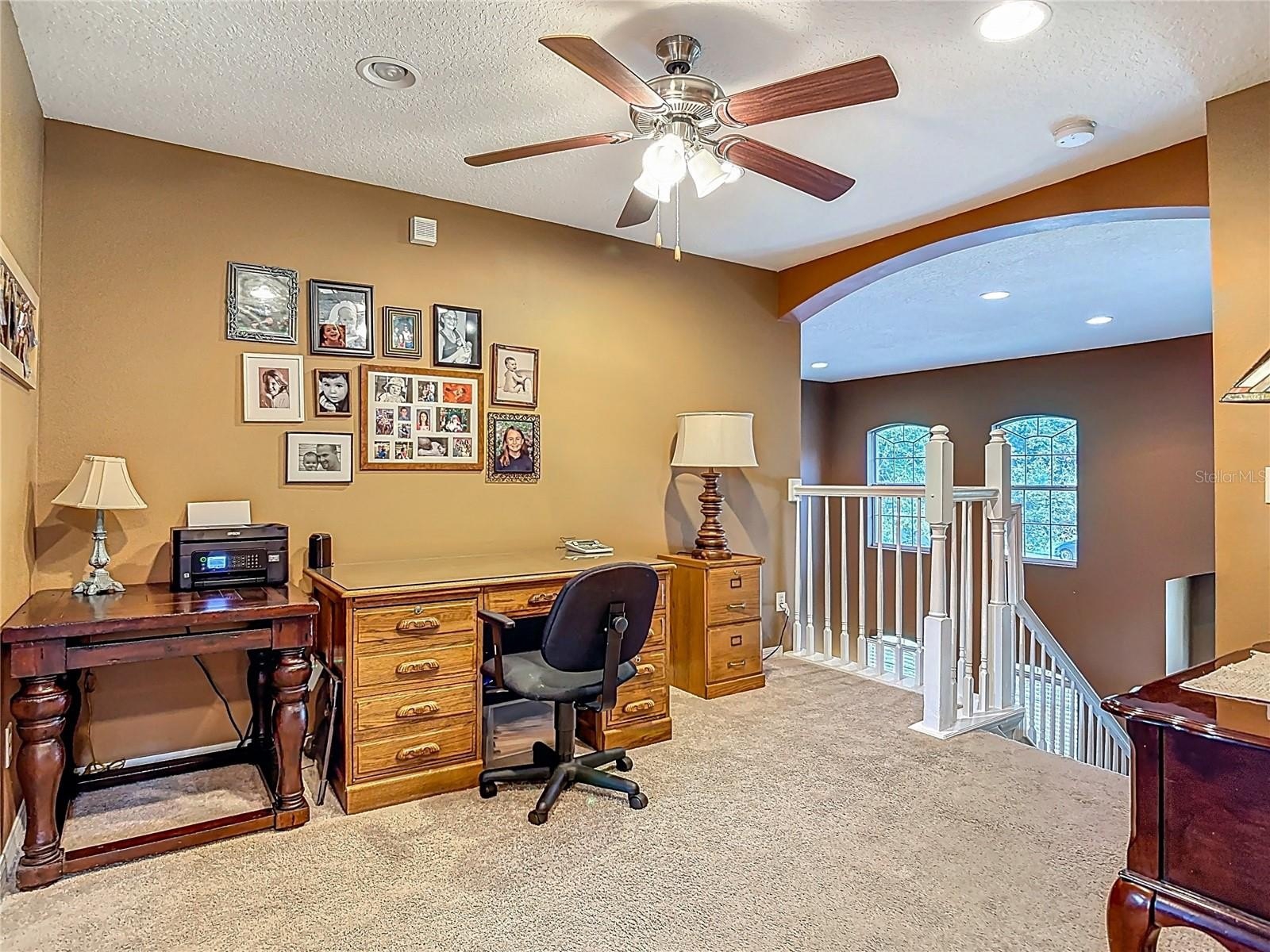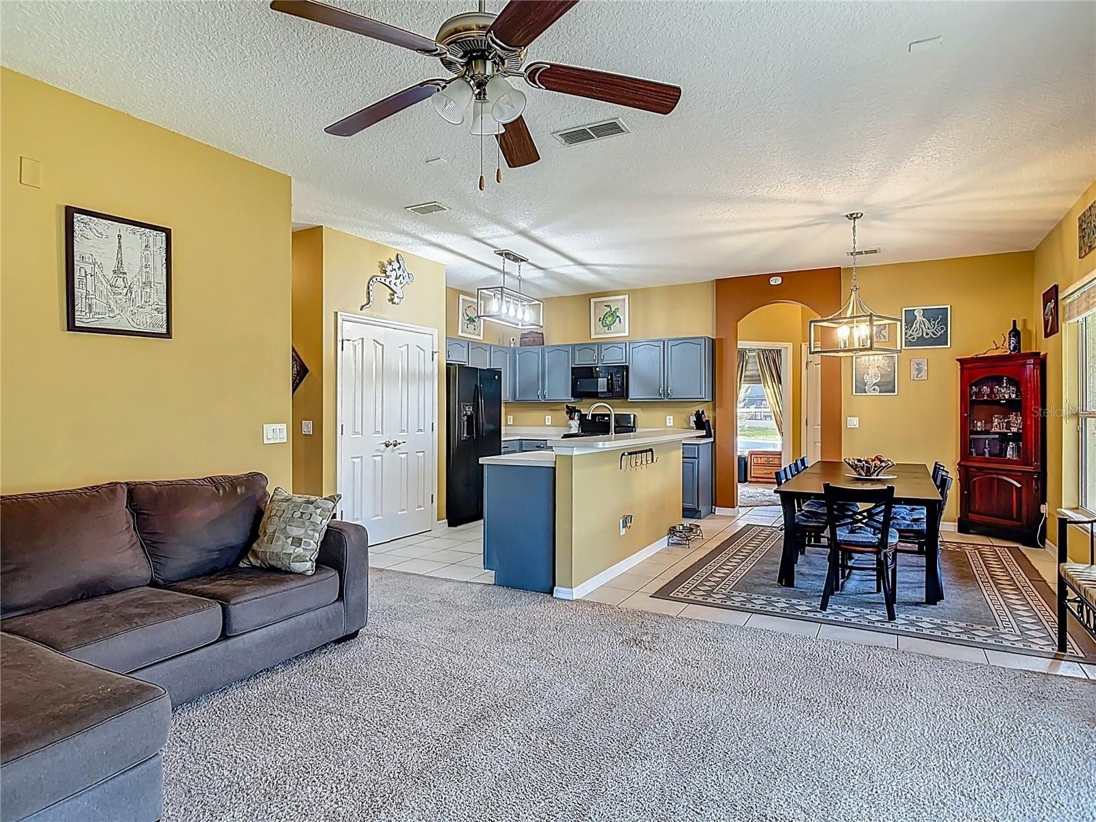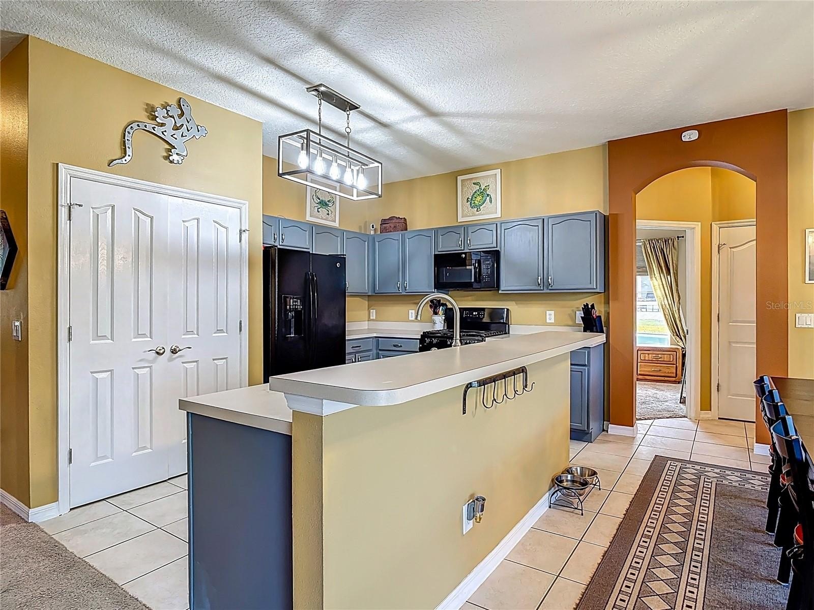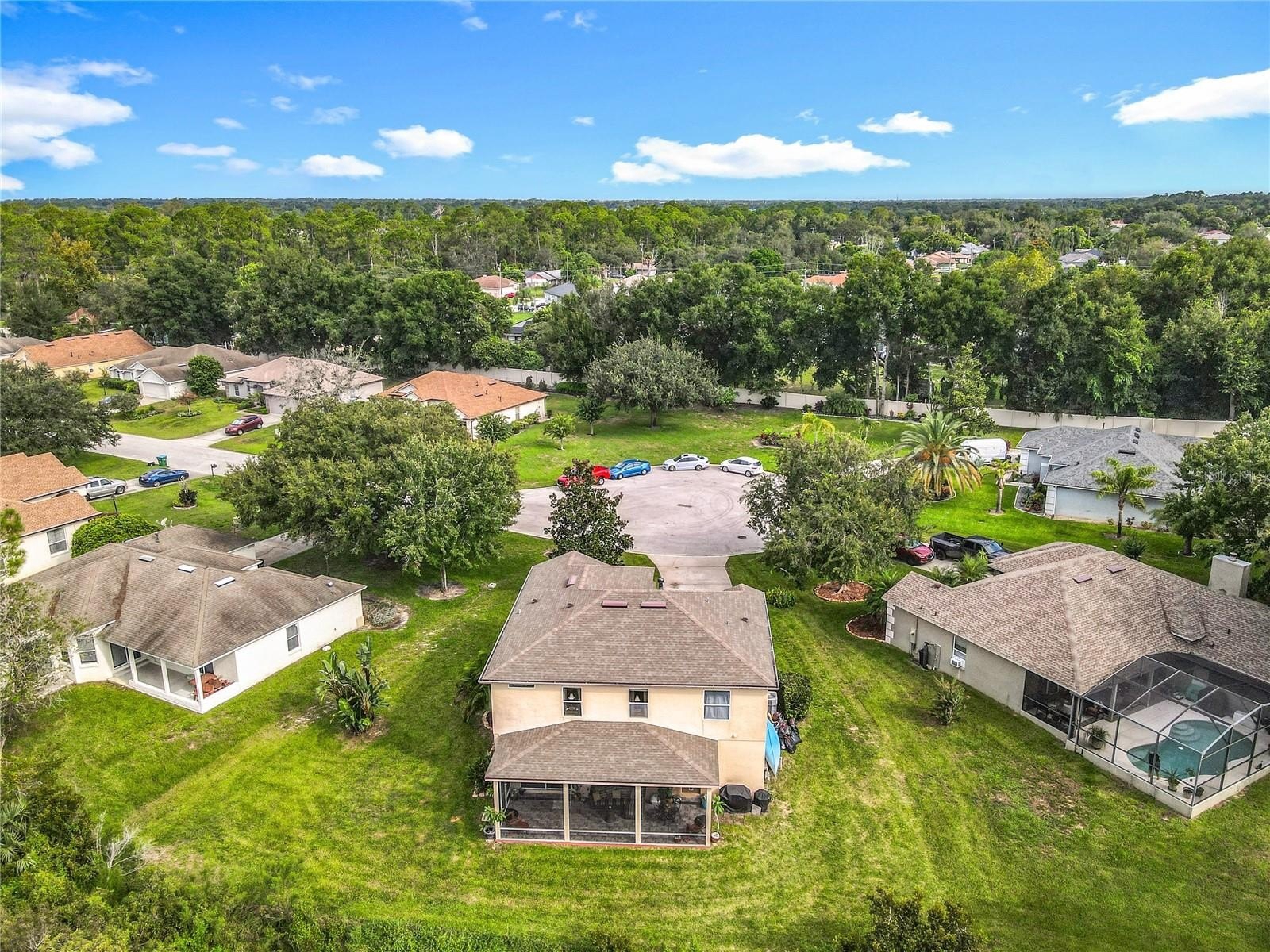 Lakefront Living – 4 Bedrooms + Office – Gated Community – Cul-de-Sac Lot tucked away on a quiet cul-de-sac in a gated neighborhood, this lakefront home offers incredible views and plenty of room to live and entertain. The large, landscaped lot provides wide side yards—perfect for everyone, pets, and outdoor fun. Step inside through the beautiful 8’ leaded-glass front door and into a bright living room with soaring 19’ ceilings and lots of windows. The main level features two separate living areas, a full bedroom and bath, a spacious kitchen and dining area, plus a private office/bonus room with elegant glass pocket doors. The heart of the home is the 540 SF open kitchen, family, and dining space. With a new gas range, dining bar, and direct access to the screened lanai, it’s an ideal gathering place. The lanai offers serene lake and nature preserve views, tile floors, ceiling fans, and a wood tongue-and-groove ceiling—true Florida living indoors and out.