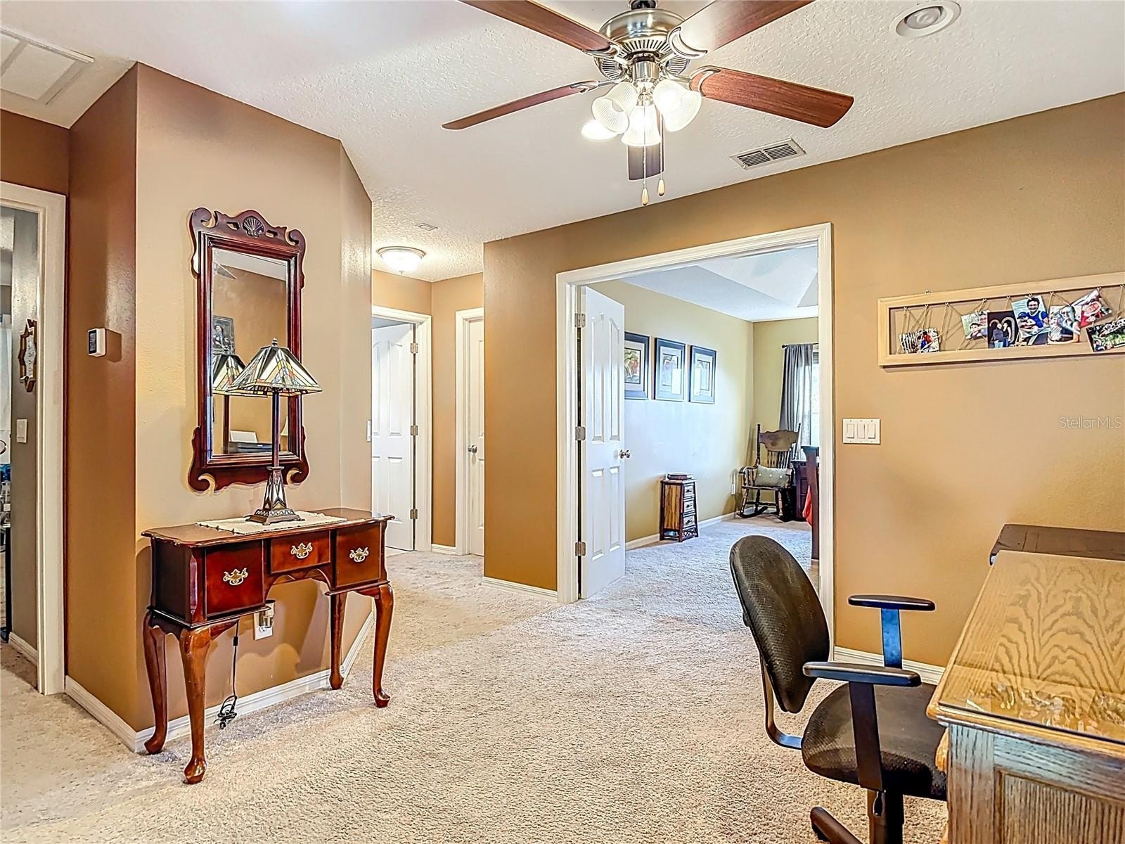 Upstairs you’ll find a versatile loft, the primary suite, and two additional bedrooms with a full bath. The primary suite features coffered ceilings, lake views, a private hall leading to an oversized 11’ walk-in closet with natural light, and a large ensuite with double vanities, soaking tub, and separate shower. All guest rooms are generously sized with ample closet space.