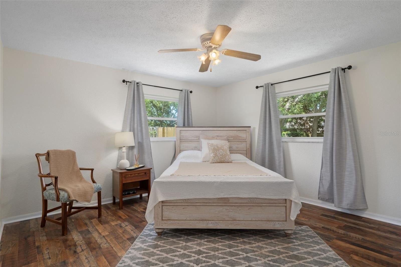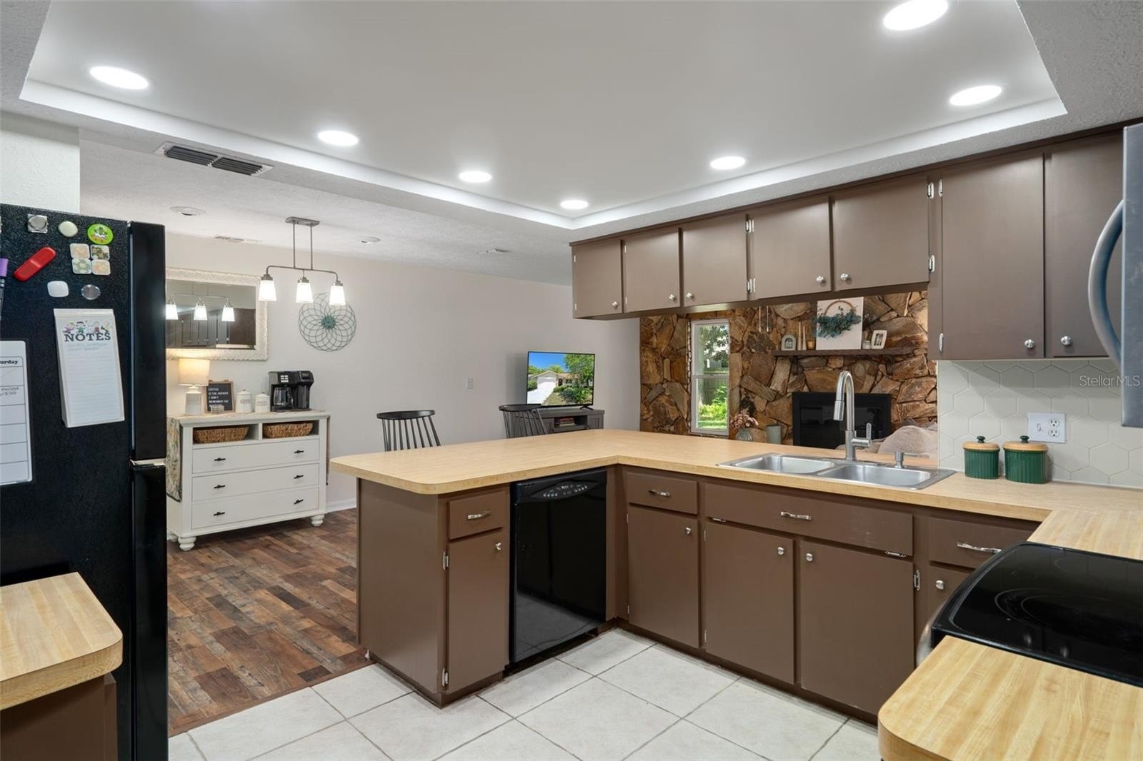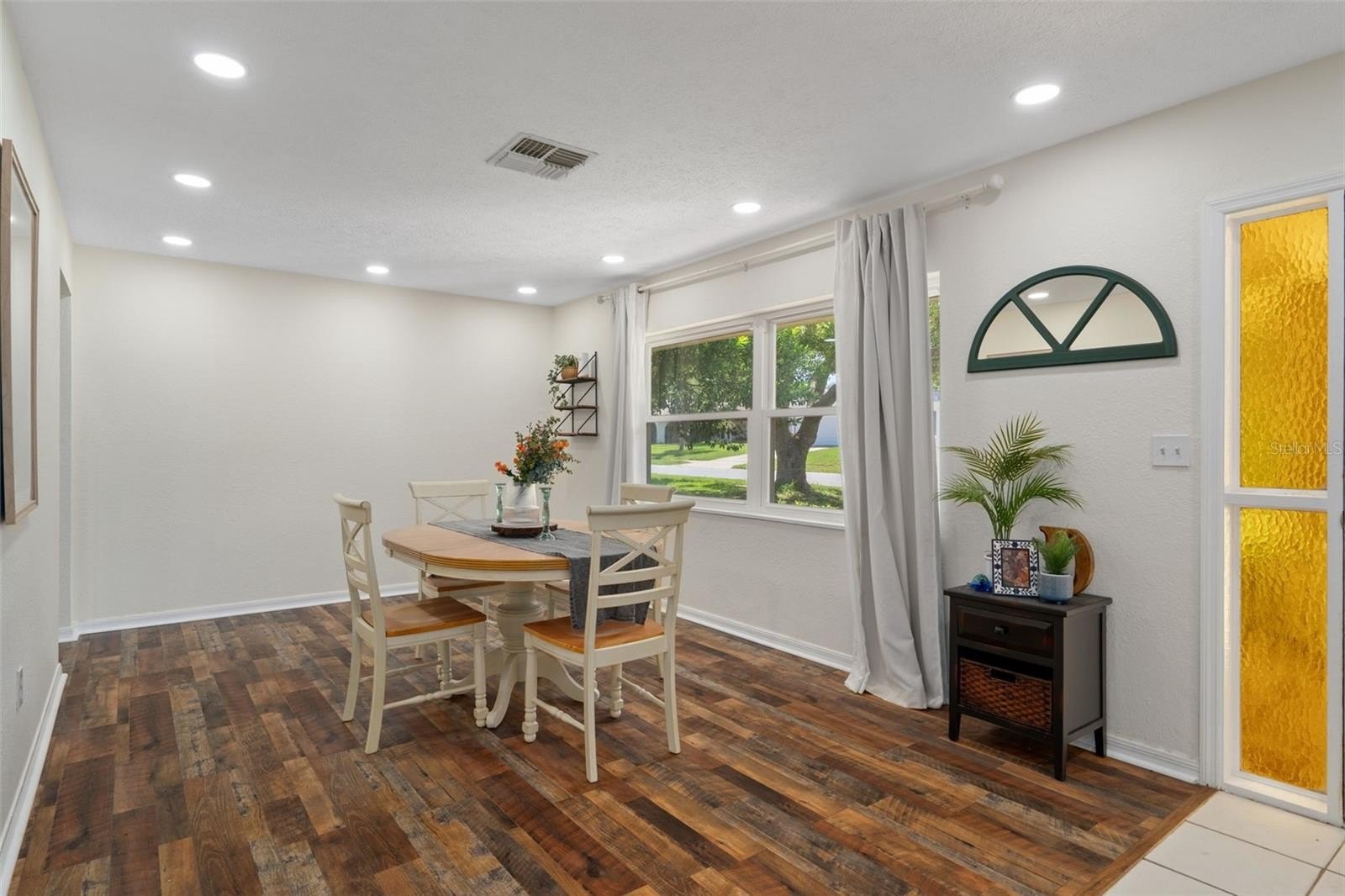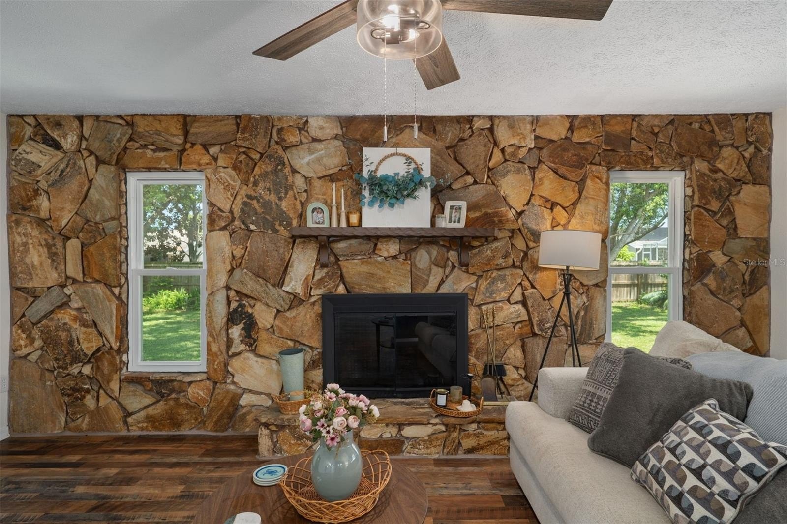 Come explore this charming home in the highly sought-after community of Lakeside Woodlands. Boasting 2 spacious bedrooms, 2 full bathrooms, and a 2-car garage, this home offers nearly 1,600 sq/ft of comfortable living space. ROOF (2019) Freshly painted inside and out (2023) As you step inside, you'll be greeted by beautiful vinyl flooring and a formal dining area that’s perfect for entertaining. The open-concept kitchen flows seamlessly into the large living room, where a striking fireplace creates a warm and inviting ambiance. The thoughtful split-bedroom layout ensures privacy. The guest bathroom has been completely remodeled with brand new tile, tub, vanity, lighting, and more! The master bedroom is spacious with a big Walk in Closet. Inside laundry room. Step outside to enjoy the expansive screened-in patio that overlooks the impressive, fully fenced backyard—ideal for gatherings, relaxation or those fur babies! Close to shopping, restaurants, and entertainment. Don't miss the chance to see this incredible home—schedule your tour today!