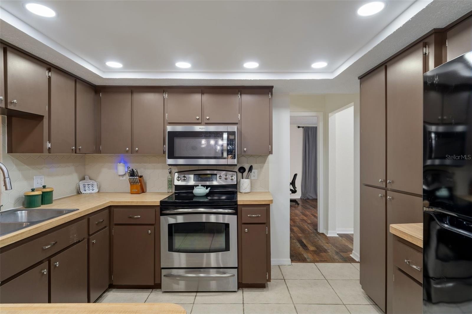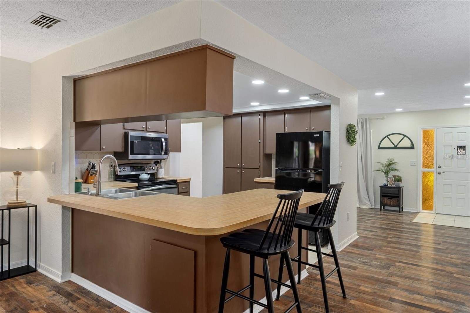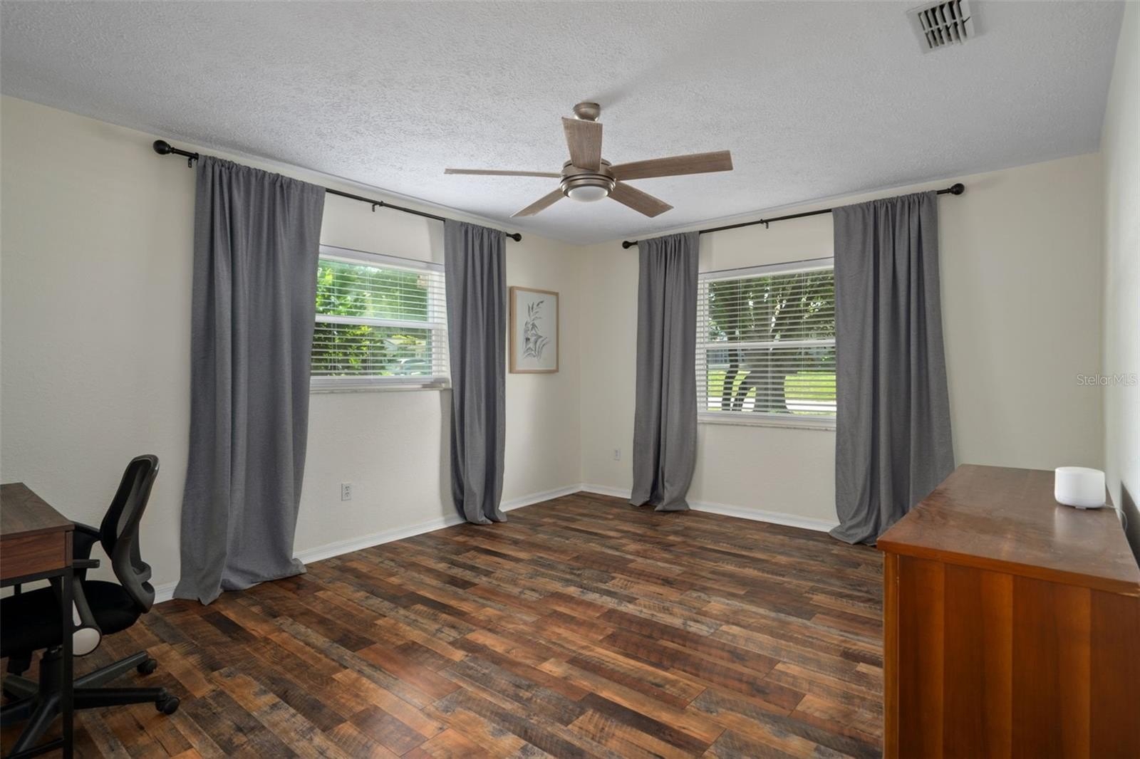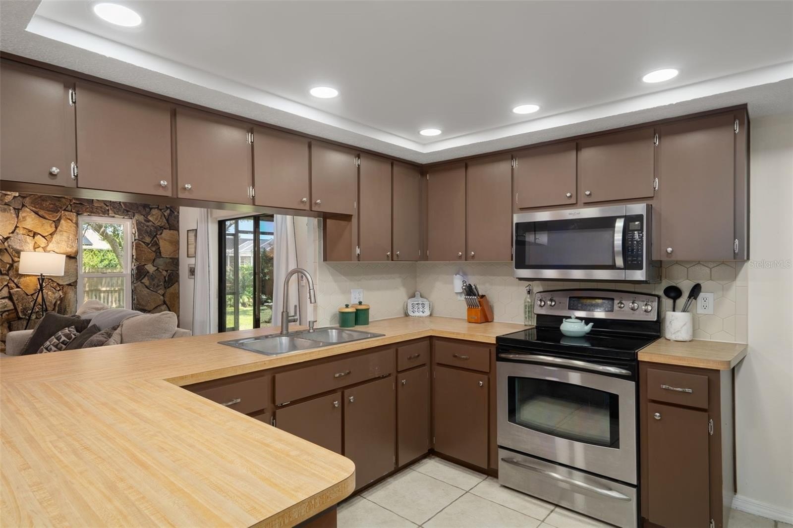 Come explore this charming home in the highly sought-after community of Lakeside Woodlands. Boasting 2 spacious bedrooms, 2 full bathrooms, and a 2-car garage, this home offers nearly 1,600 sq/ft of comfortable living space. ROOF (2019) Freshly painted inside and out (2023) As you step inside, you'll be greeted by beautiful vinyl flooring and a formal dining area that’s perfect for entertaining. The open-concept kitchen flows seamlessly into the large living room, where a striking fireplace creates a warm and inviting ambiance. The thoughtful split-bedroom layout ensures privacy. The guest bathroom has been completely remodeled with brand new tile, tub, vanity, lighting, and more! The master bedroom is spacious with a big Walk in Closet. Inside laundry room. Step outside to enjoy the expansive screened-in patio that overlooks the impressive, fully fenced backyard—ideal for gatherings, relaxation or those fur babies! Close to shopping, restaurants, and entertainment. Don't miss the chance to see this incredible home—schedule your tour today!
