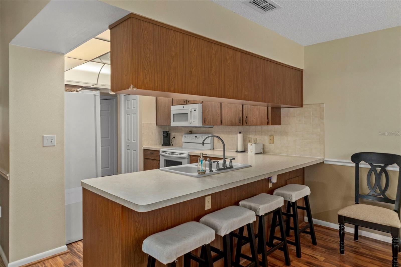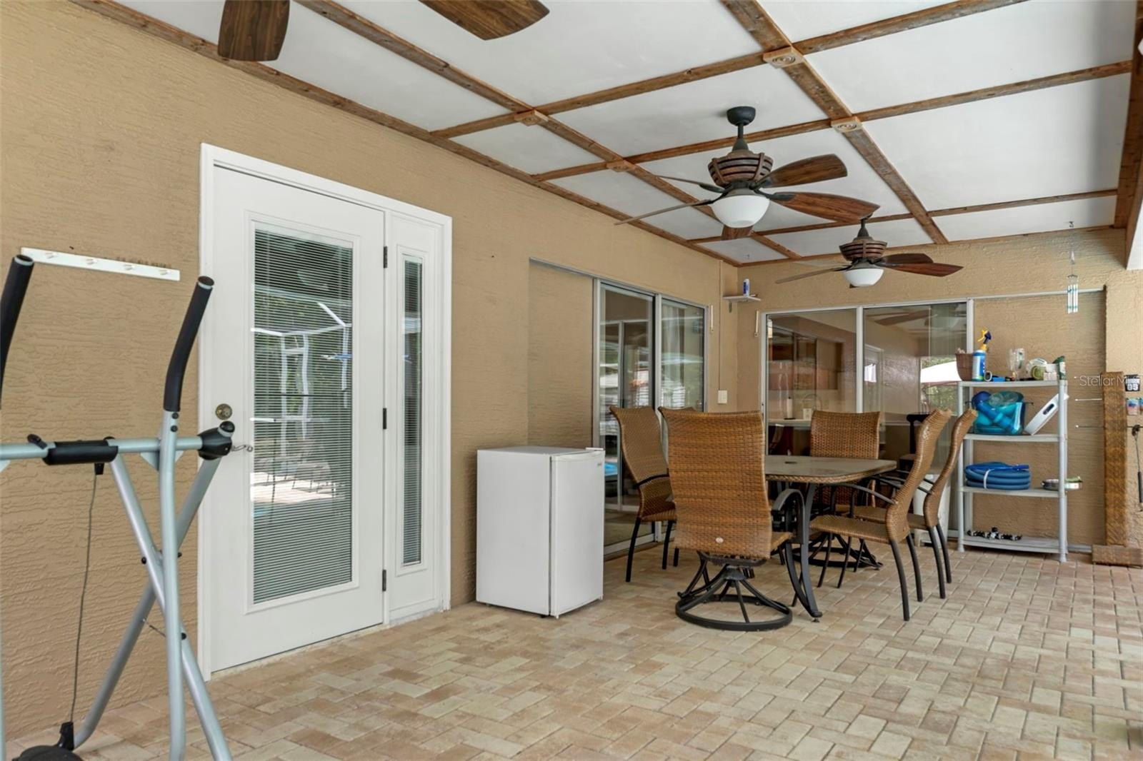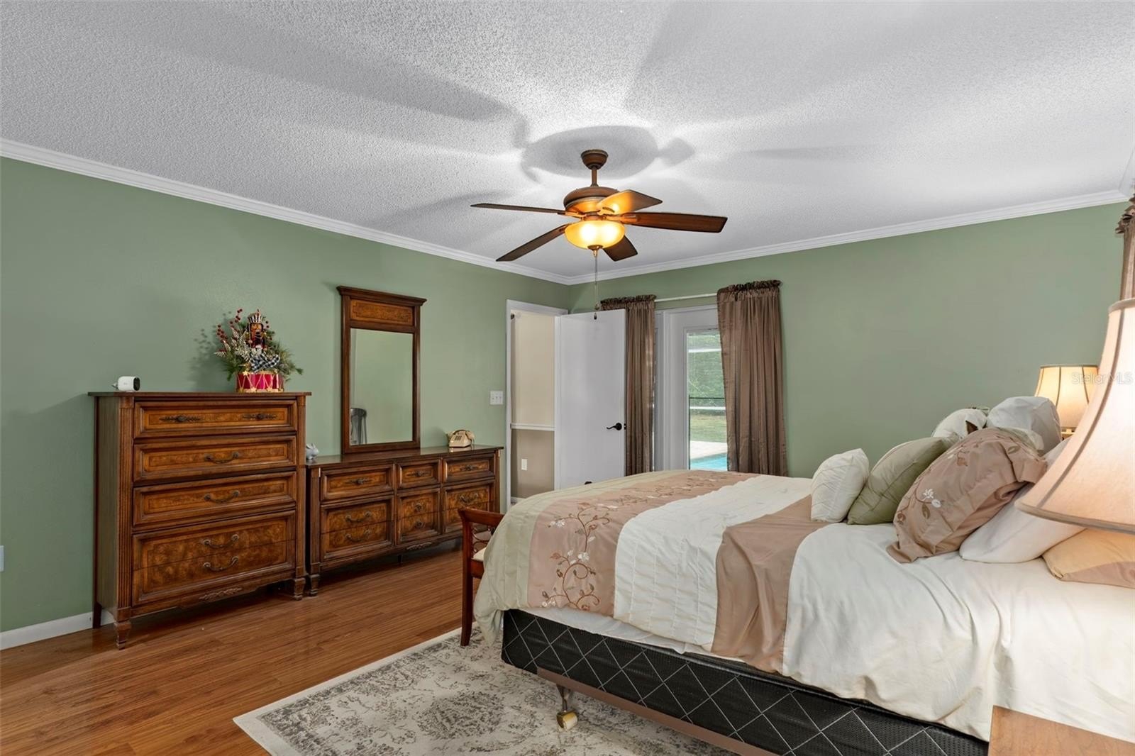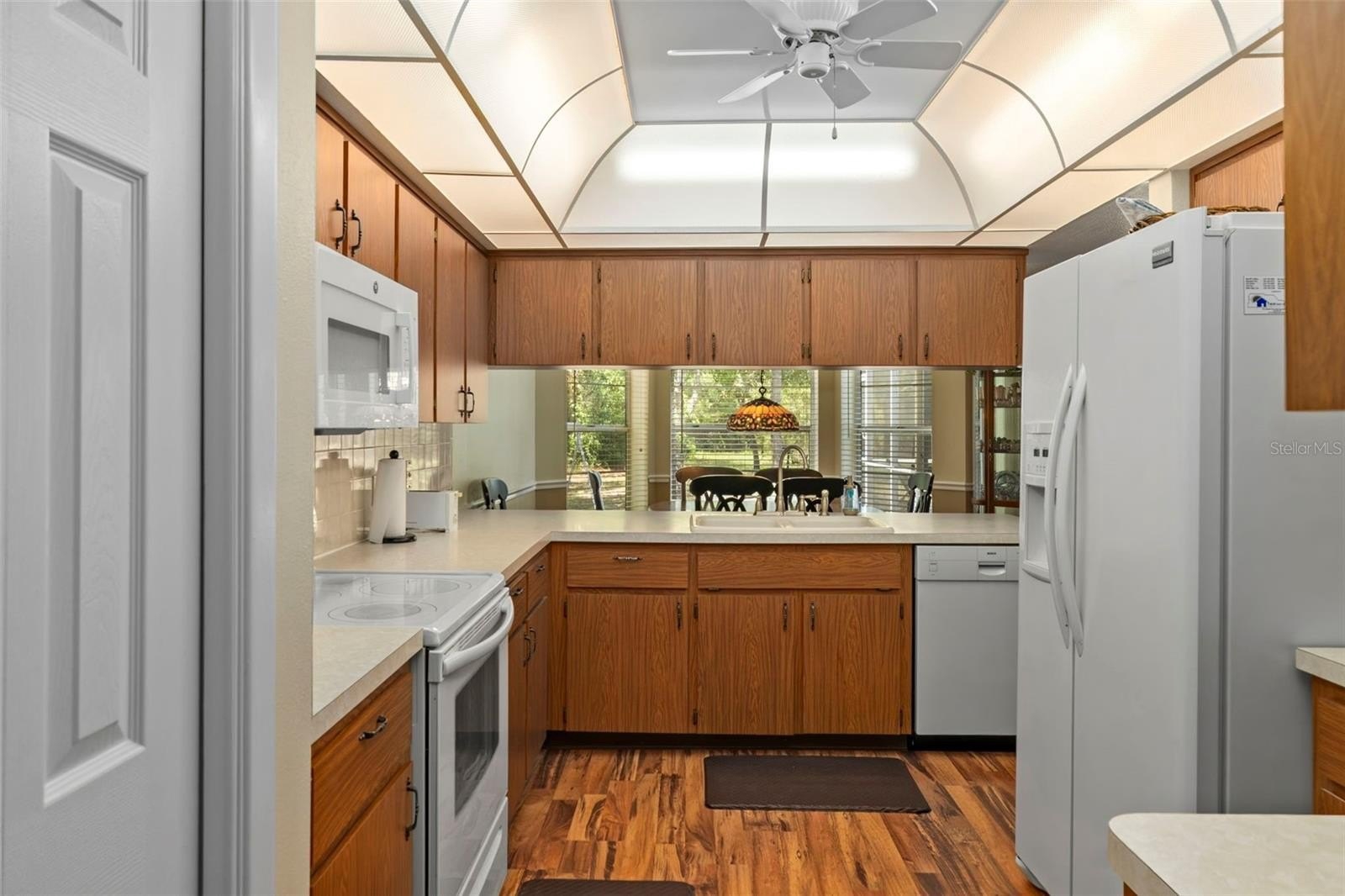 Step inside to the foyer leading into the spacious 21x14 living room, featuring a cathedral ceiling with real wood beams, fresh carpeting, chair rail accents, and pocket sliders opening to the rear lanai. The dining area boasts bay windows and additional sliders for seamless indoor-outdoor living, while the thoughtfully designed galley kitchen includes abundant cabinetry—some with glass fronts, and a 9-foot breakfast bar. A large inside laundry room features extra storage and a laundry tub.The primary suite is a true retreat, complete with crown molding, private lanai access, a 9x7 walk-in closet, and an en-suite bath with a tub/shower combo. Two oversized guest bedrooms (14x13 and 16x13) share a well-appointed guest bath with a tiled shower and abundant vanity space. Updated hardware throughout the home adds a modern touch.Step outside to enjoy Florida living at its best! Relax under the 26x11 covered lanai with pavers, or into the sparkling 24x12 saltwater pool with child safety fence, all under a 24x17 screened enclosure. The expansive backyard offers partial fencing, mature landscaping, and no build behind—preserving your privacy and the natural Nature Coast feel. Additional highlights include a side-entry screened 2-car garage with extra parking pad, an 8x10 detached storage shed, whole-home surge protection, and a transferable pest control contract.Conveniently located near schools, shopping, and all the charm Weeki Wachee has to offer, this home blends comfort, updates, and character in one perfect package. Don’t miss your chance to call this retreat your own!