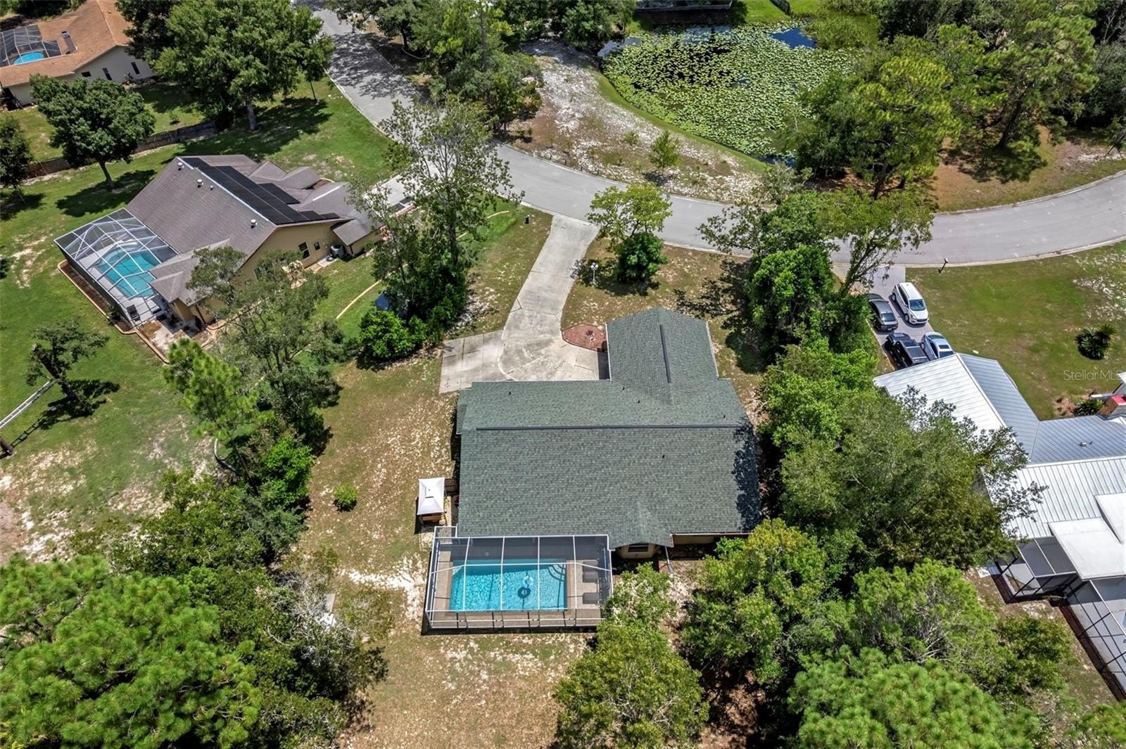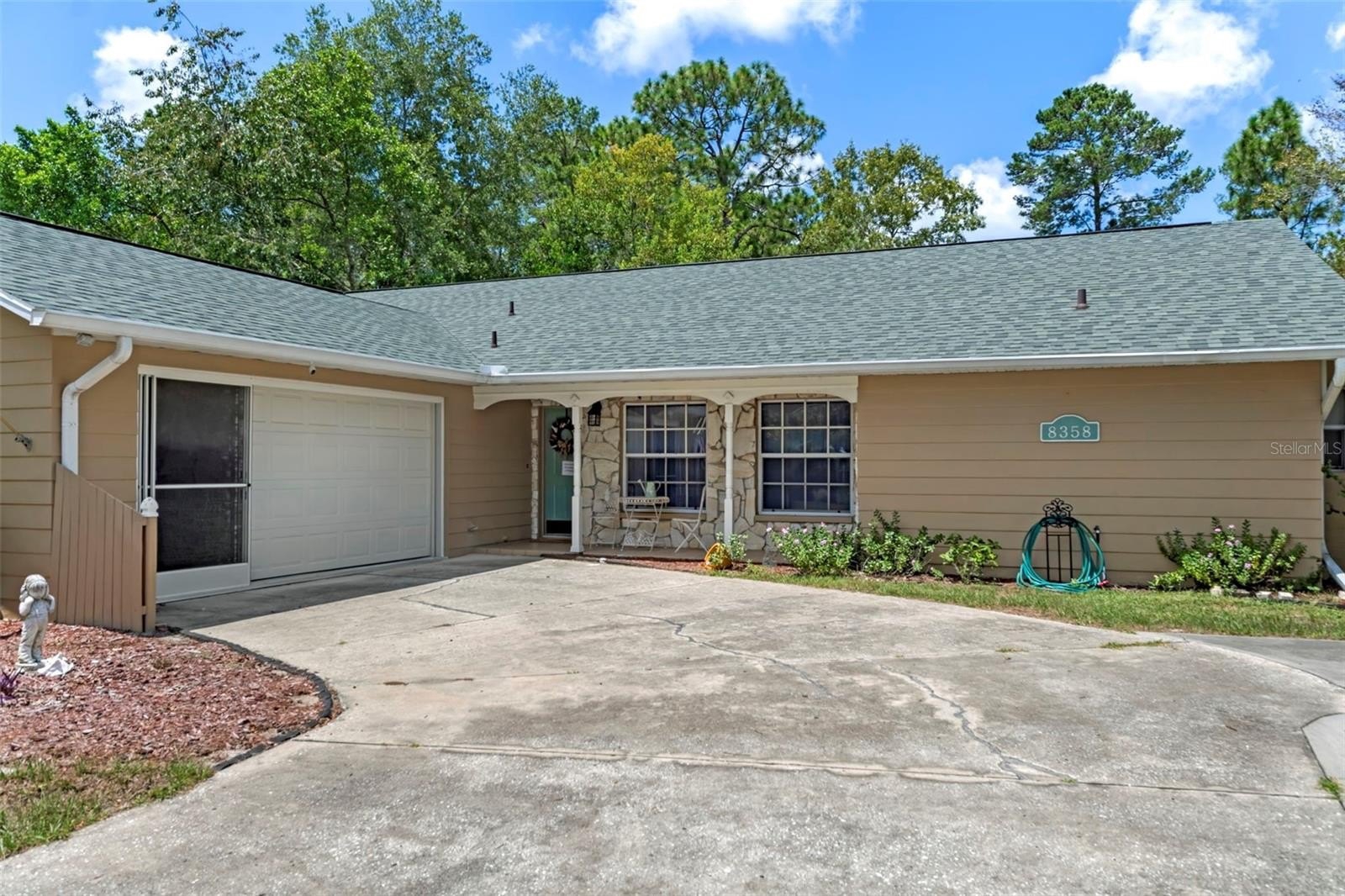 Welcome to this immaculate 3-bedroom, 2-bathroom pool home nestled on over half an acre in the heart of Weeki Wachee! With no HOA or CDD fees and with recent updates including a 2023 HVAC and 2021 roof, this home offers both peace of mind and timeless charm. A welcoming 10-foot front porch with stone accents overlooks a pond, setting the stage for the stunning interior.