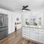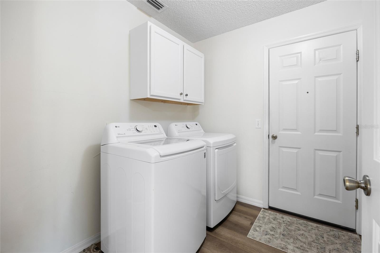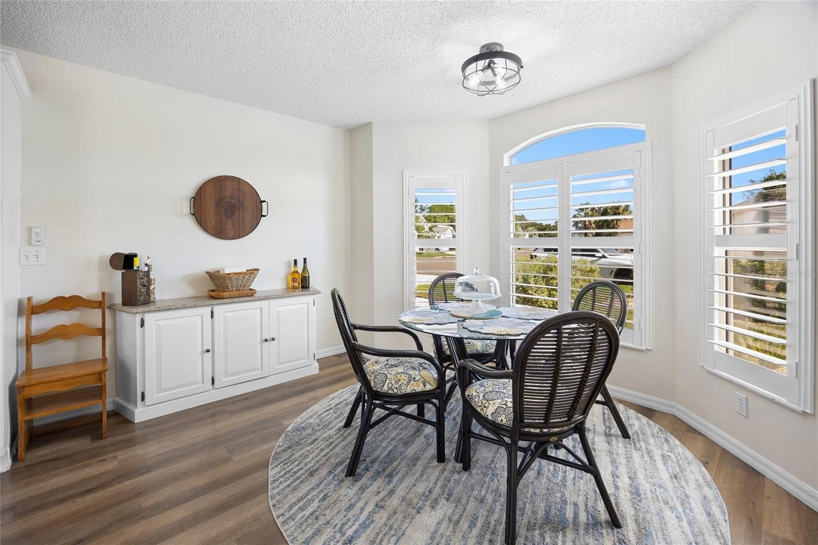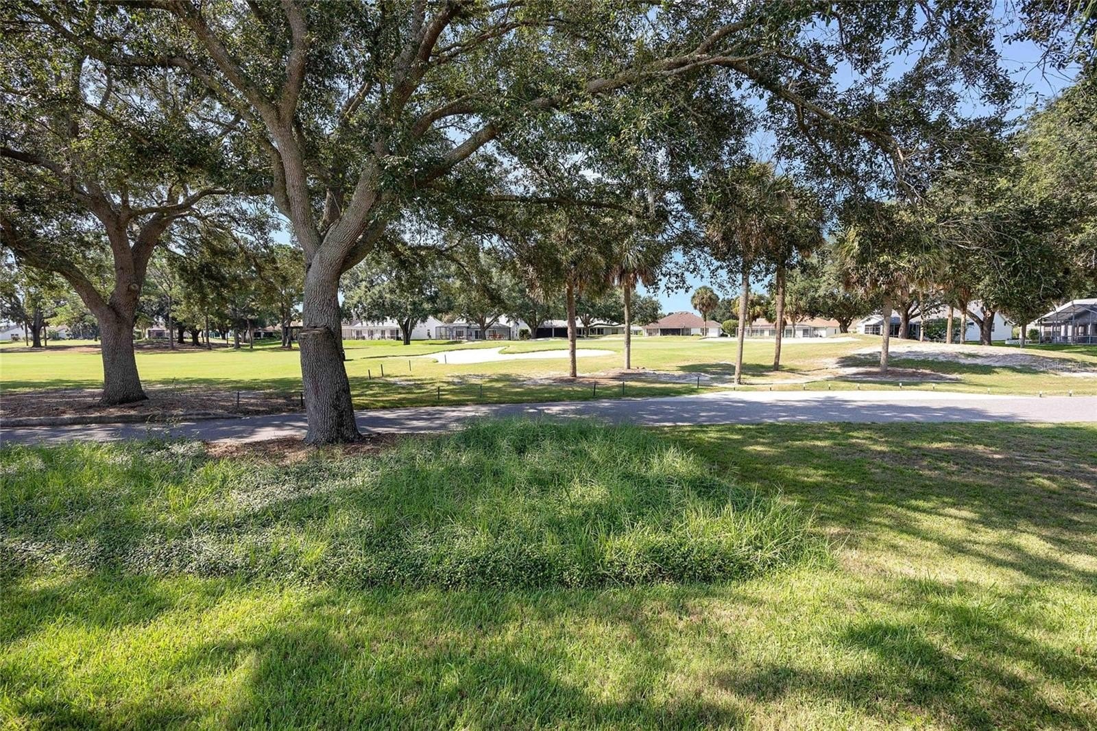 Welcome home to this enhanced Cypress (Vera Cruz) model OVERLOOKING the 8th green of the par 3 on the Hacienda Hills Lakes CHAMPIONSHIP GOLF COURSE. Your new home is in THE VILLAGE of Hacienda South nestled between Spanish Springs and Lake Sumter Landing. The Multimodal path is right behind the home giving you easy access to walking, jogging, bird watching, bike riding and golf cart touring as well as access to town squares and all the recreational offerings. This home is close to medical services, restaurants, and two different squares for shopping, dining and nightly entertainment, all by golf cart. Coming in just under 2000 sq/ft, this home has been meticulously maintained and is ready for you to begin your new adventure in The Villages. NO BOND~ NEW ROOF 2020 ~ NEW HVAC 2022 ~ DEEP GARAGE 24 and 1/2 FEET.... Luxury Vinyl Plank – NO CARPET. NEW garage door and opener, NEW front storm door. Stainless Appliances - PLANTATION SHUTTERS throughout. New whole house water filtration system. Solar tubes keep everything LIGHT and BRIGHT. Soft close cabinets in the kitchen where you'll find 2 additional rows of cabinetry for extra storage. QUARTZ countertops and cabinet pull-outs round out the kitchen upgrades. The primary owner suite has 2 walk-in closets - bathroom has plentiful cabinets, luxurious jetted tub along with a shower and double vanity with plenty of counter space and lots of natural lighting. The den overlooks the golf course with a custom closet organizer. Enter the rear lanai through leaded glass door - covered lanai with volume ceilings and cricket gutters drainage with an open screen area to enjoy the beautiful scenery and occasional good shot. The laundry room is inside and features a crafts table or desk. Outside, you'll find pleasing landscaping with lush green grass, Florida palms and a beautiful view of the golf course.