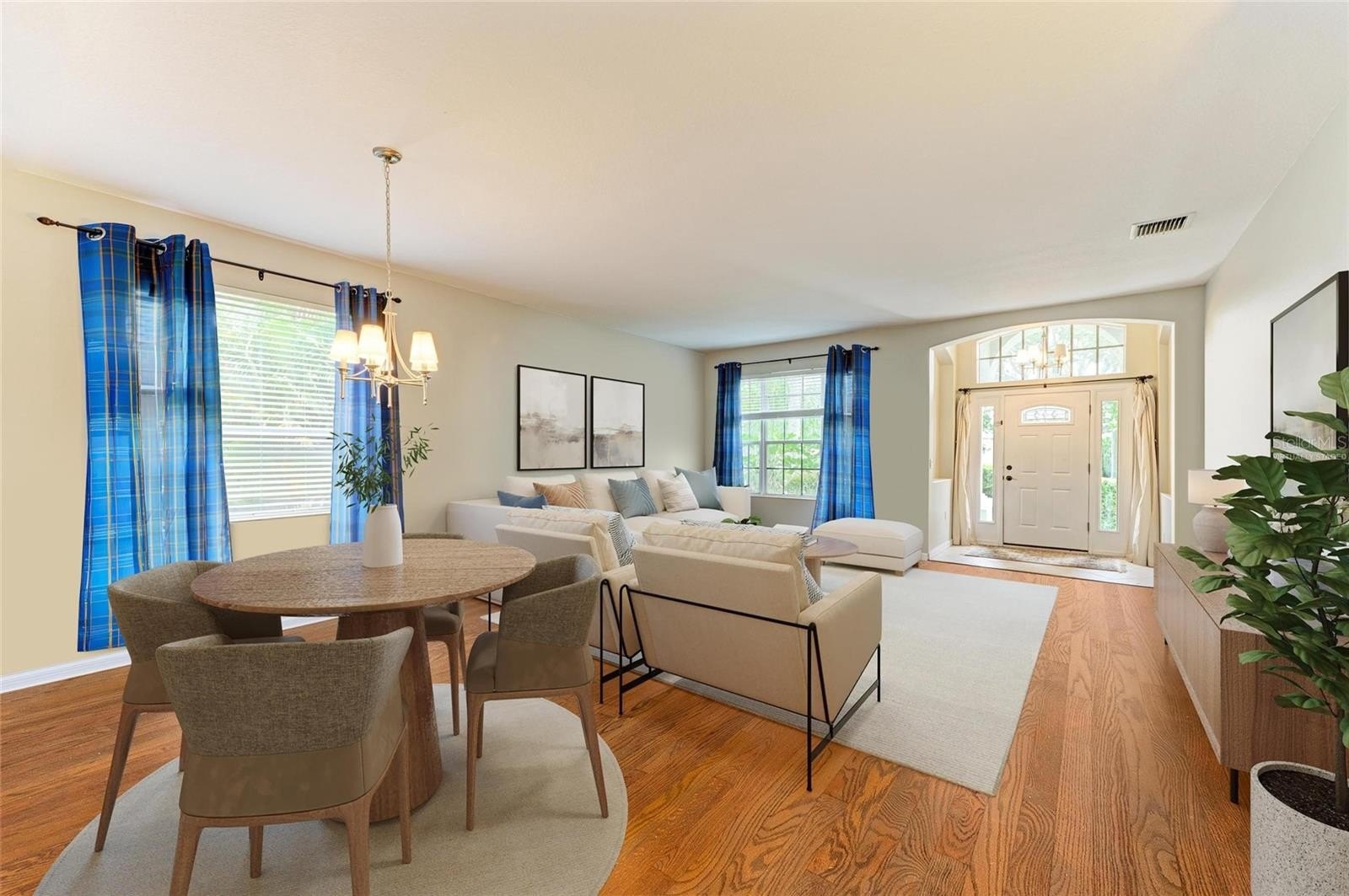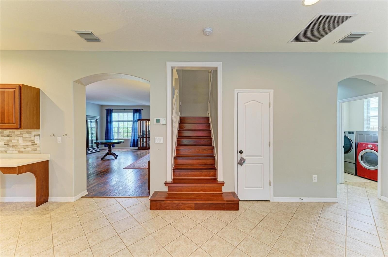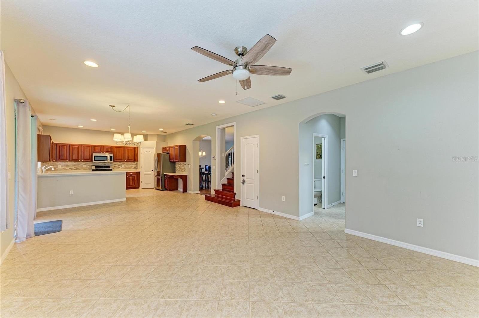 Welcome to Fairways at Imperial Lakewoods, where comfort meets convenience in a vibrant golf community with no CDD fees and low HOA dues. This beautifully maintained 4 bedroom, 3.5 bathroom home offers nearly 3,000 sq. ft. of versatile living space, perfect for families and those who love to entertain. Step inside to find a large flexible room off the entryway, ideal for a formal living and dining space that flows seamlessly into the expansive kitchen and adjoining family room. A convenient half bath and laundry room are also located on the main floor.