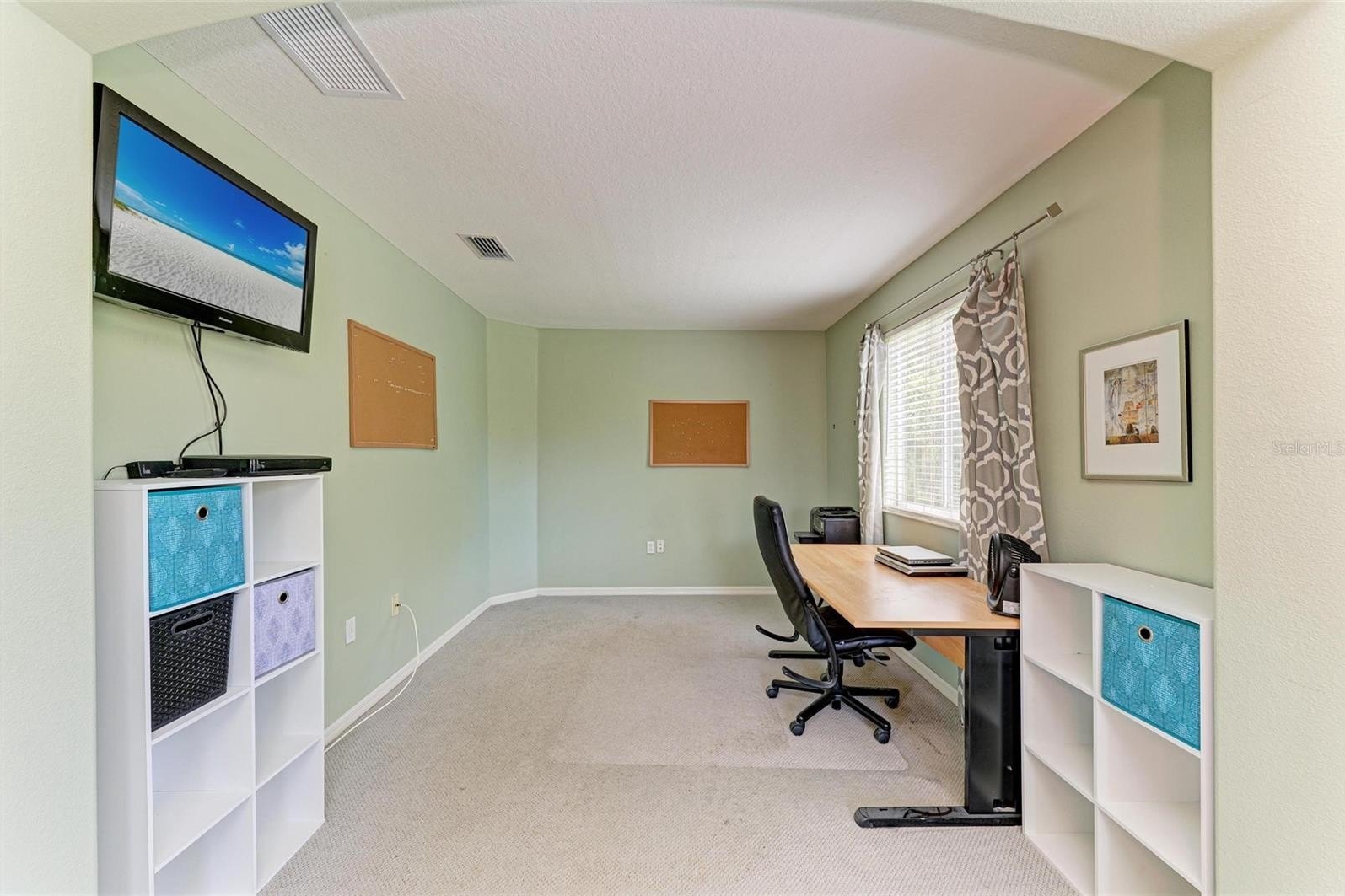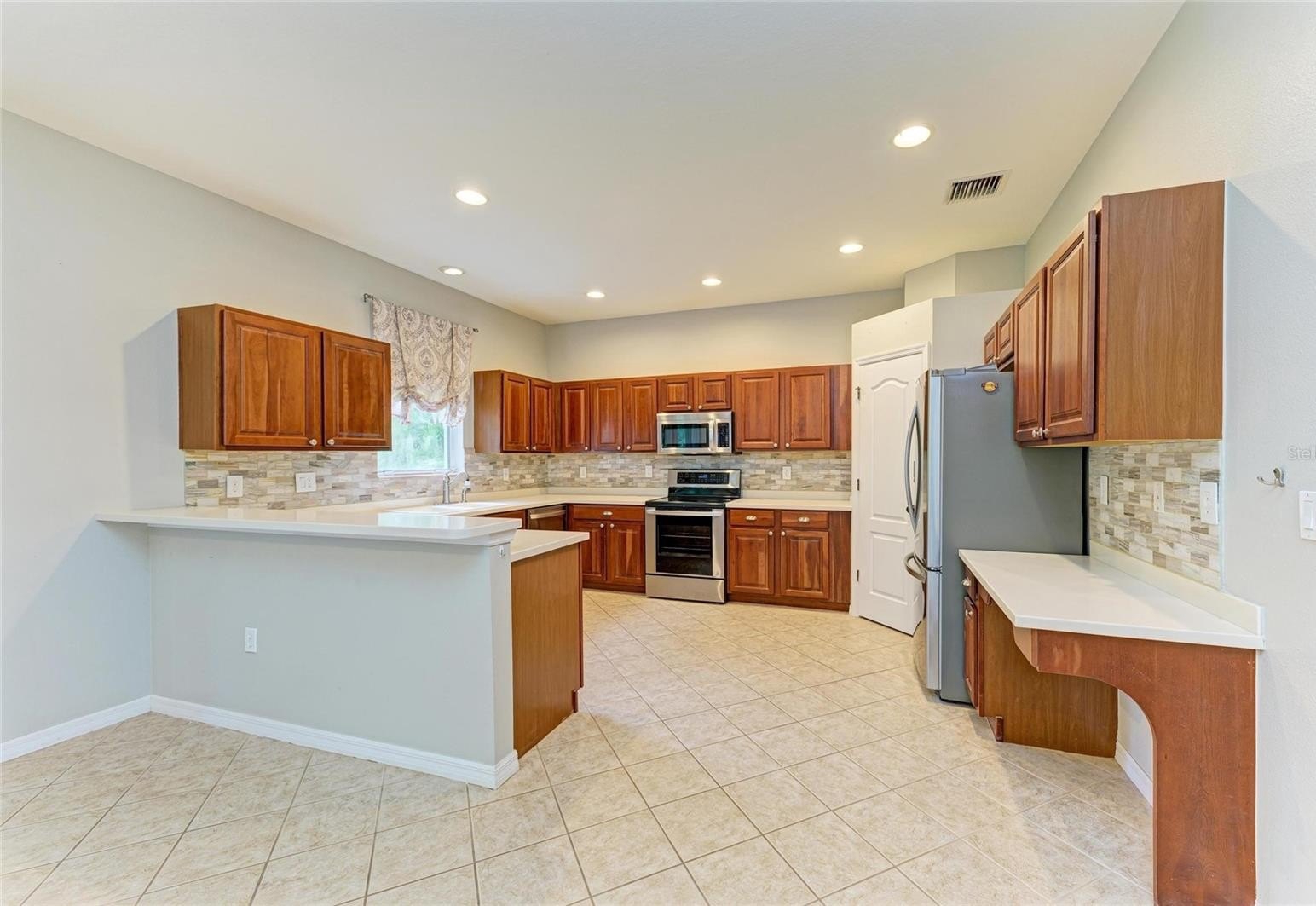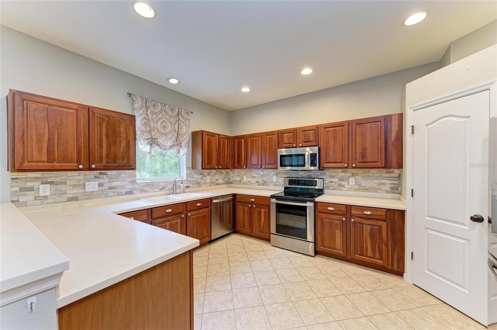 Welcome to Fairways at Imperial Lakewoods, where comfort meets convenience in a vibrant golf community with no CDD fees and low HOA dues. This beautifully maintained 4 bedroom, 3.5 bathroom home offers nearly 3,000 sq. ft. of versatile living space, perfect for families and those who love to entertain. Step inside to find a large flexible room off the entryway, ideal for a formal living and dining space that flows seamlessly into the expansive kitchen and adjoining family room. A convenient half bath and laundry room are also located on the main floor.