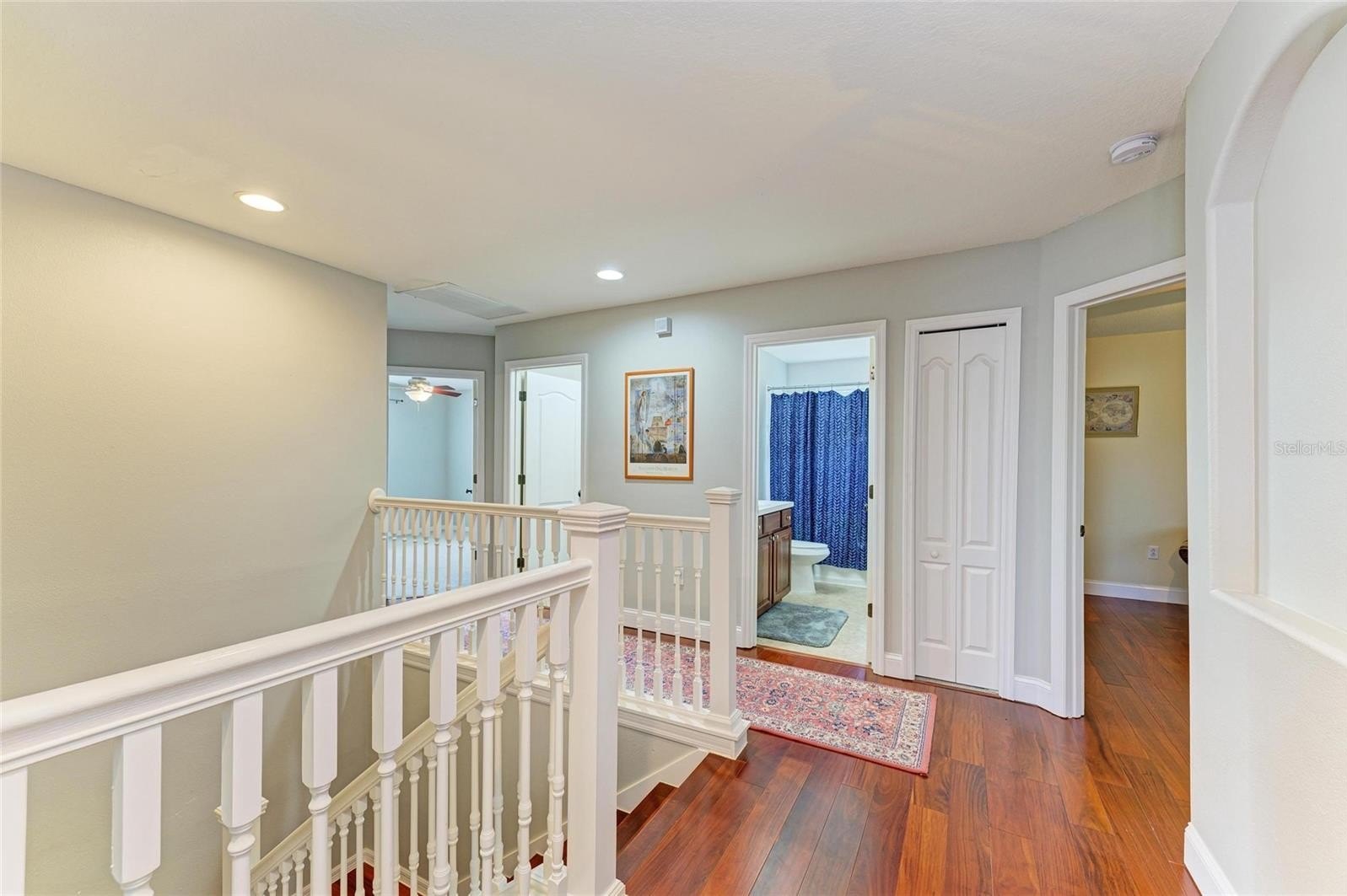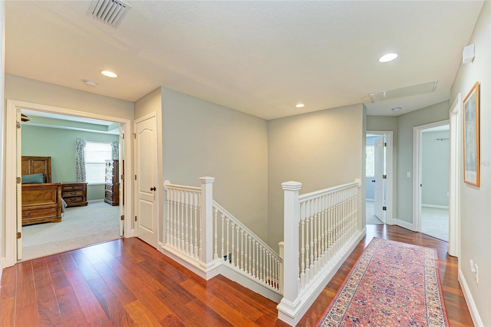 At the heart of the home, a stunning staircase leads upstairs to the oversized primary suite, complete with a cozy bonus nook that is perfect for a home office, nursery, gym, or craft space. The luxurious primary bathroom features dual walk in closets with custom shelving, a soaking garden tub, walk in shower, and dual vanities. Three additional generously sized bedrooms share two full bathrooms, providing plenty of space and privacy for family and guests. Recent updates add peace of mind including a new roof, new A/C, and solar panels that will be paid off at closing which ensures energy efficiency and long term savings. Outdoor living is easy with a screened lanai overlooking a serene conservation lot, offering a private and relaxing retreat. Ideally located just minutes from grocery stores, dining, coffee shops, gyms, and more, plus quick access to I-75 for an easy commute north or south, this home truly has it all. Do not miss your chance to own this spacious, move in ready home in one of Palmetto’s most desirable golf course communities Some photos are virtually staged. Schedule your showing today.