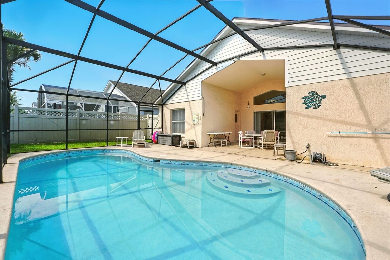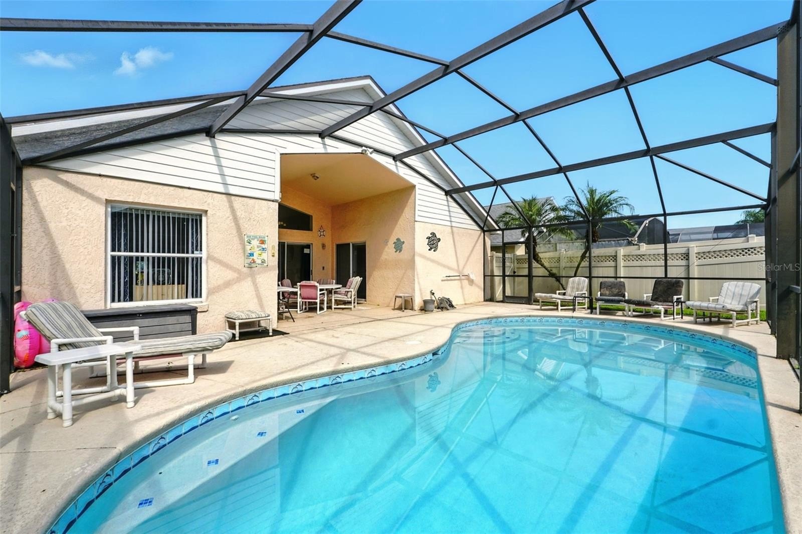 Prime Location! Discover this 4-bedroom, 3-bath pool home in the desirable Indian Point community. Ideally situated just minutes from Disney and Central Florida’s top attractions, this property is perfect as a primary residence, vacation home, or short-term rental investment. Step inside to an open-concept layout featuring a spacious kitchen, dining area, and living room—ideal for both everyday living and entertaining. The split floor plan offers privacy, with all four bedrooms located on the main level. From the living room, sliding glass doors open to a private, screened-in pool and patio—your own outdoor retreat. Indian Point also offers fantastic community amenities, including a pool, playground, and tennis courts. Don’t miss the opportunity to own in this highly sought-after neighborhood. Schedule your private showing today!