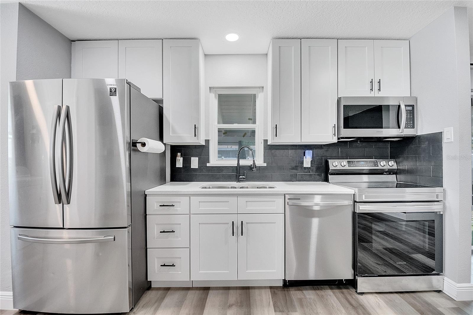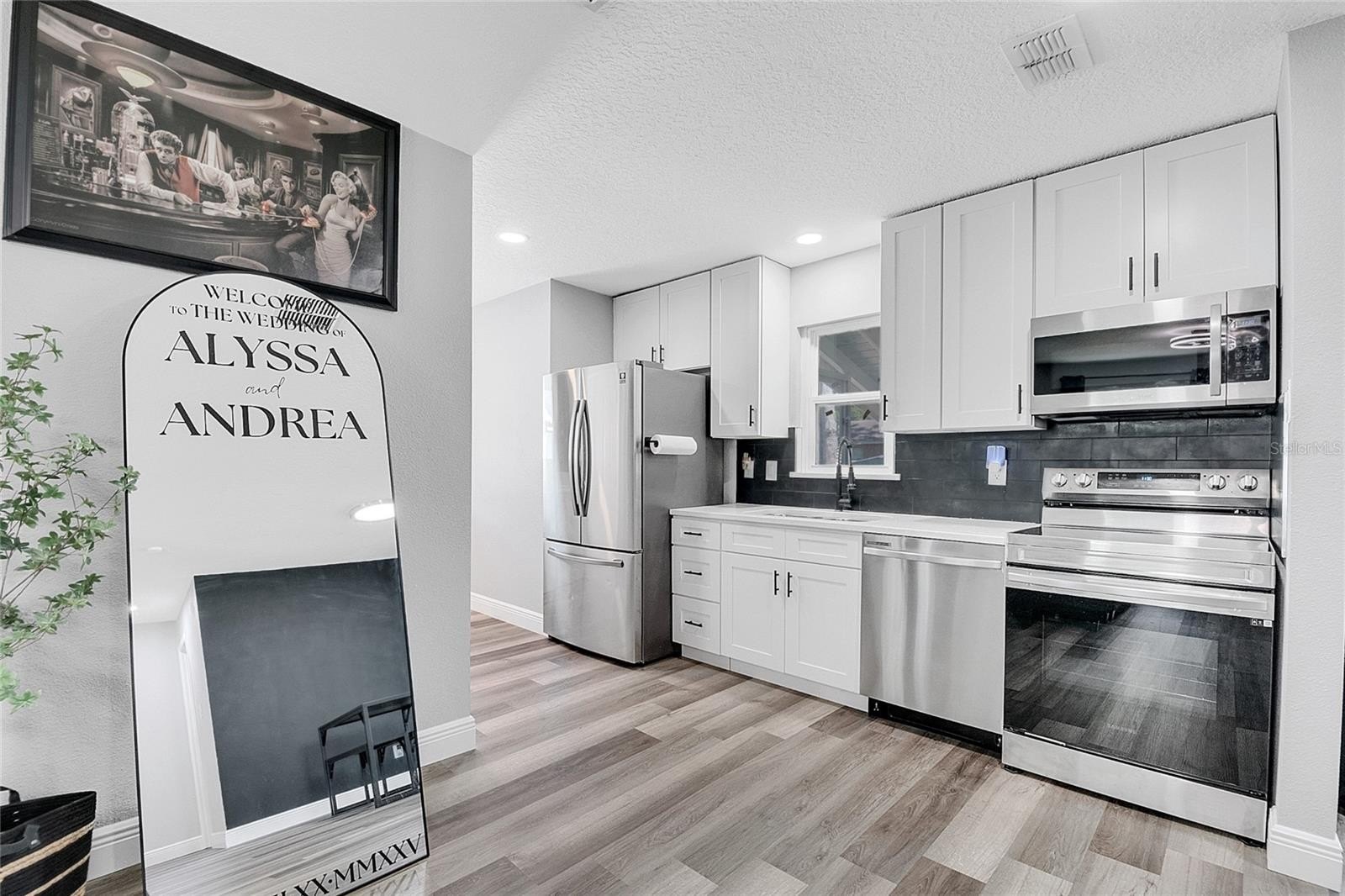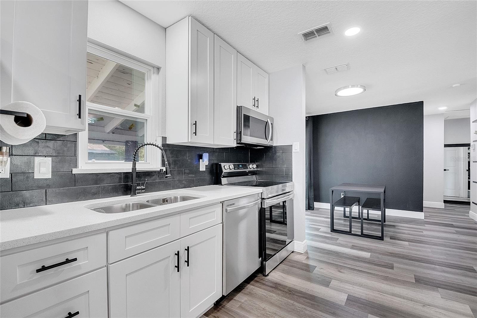 Inside, you’ll find a bright, open layout with luxury vinyl plank flooring throughout. The kitchen has been beautifully updated with quartz countertops, stainless steel appliances, stylish cabinets, and a sleek tile backsplash. The bathroom has also been fully updated with fresh, stylish finishes. All the appliances are included.
