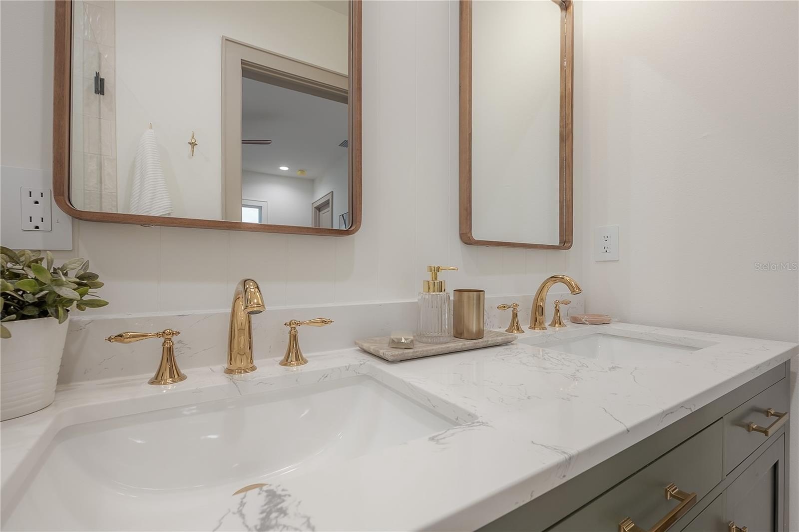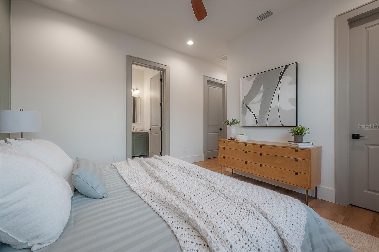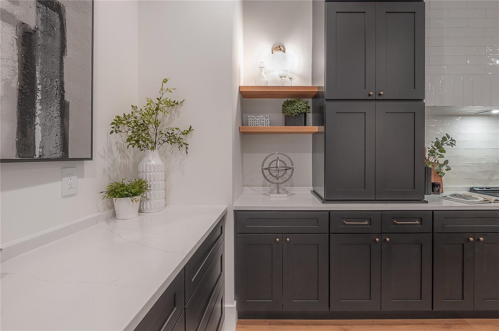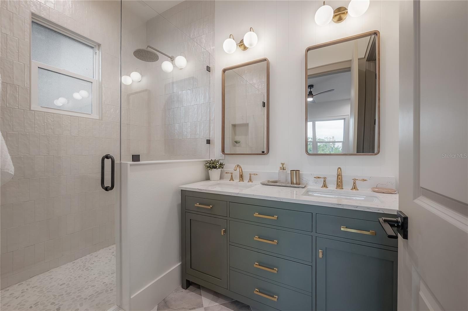 Located on a corner lot in Southeast Seminole Heights, this is the only home of its kind in the neighborhood—a semi detached single-family residence that feels private and spacious. Inside, you’ll find four bedrooms, three bathrooms, and more than 2,100 square feet of living space filled with thoughtful details like soaring 10-foot ceilings, 8-foot solid-core doors, custom tile accents, and high end designer lighting throughout. The chef’s kitchen is the heart of the home, offering white quartz countertops on an oversized island, large pantry, an upgraded appliance package, and a dramatic, tiled custom vent hood that is surrounded by sleek black storage towers with brass accents. The downstairs living areas are open and spacious, and also offers a full bathroom and bedroom (perfect for a home office). The upstairs layout offers a laundry room conveniently located between the bedrooms; 2 guest bedrooms with reach-in closets and a full bathroom, as well as a spacious primary suite. The primary bedroom include dual walk-in closets, and the most luxurious and tastefully designed en suite bathroom with pearl-finished vertical tiles, glass enclosed shower, green and polished brass accents, and a separate water closet. A rare attached two-car garage adds convenience, while the fully fenced backyard with a covered porch provides the perfect outdoor space for entertaining, relaxing, or enjoying the Florida sunshine.