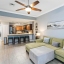 Inside, natural light flows through expansive windows, highlighting soaring ceilings, gleaming porcelain tile, and elegant crown molding throughout. The open layout creates a breezy, welcoming atmosphere that feels like home from the moment you arrive.