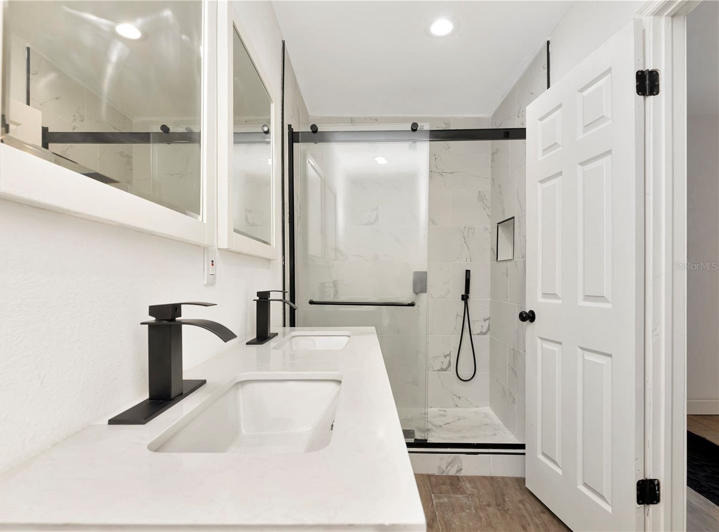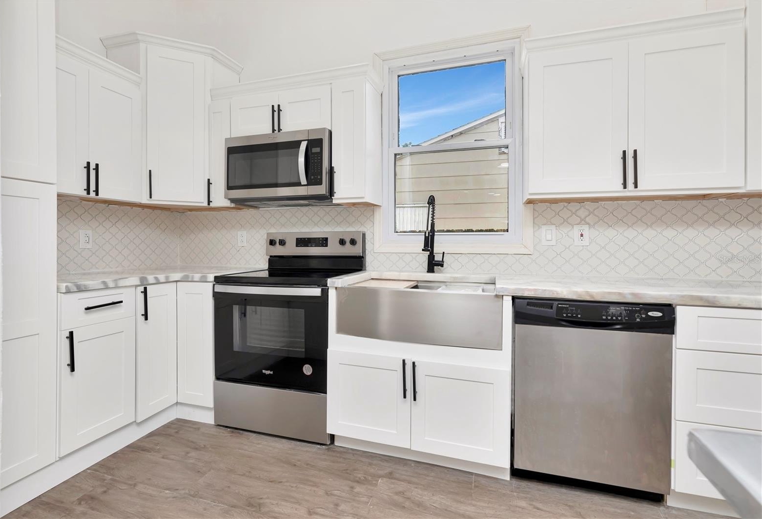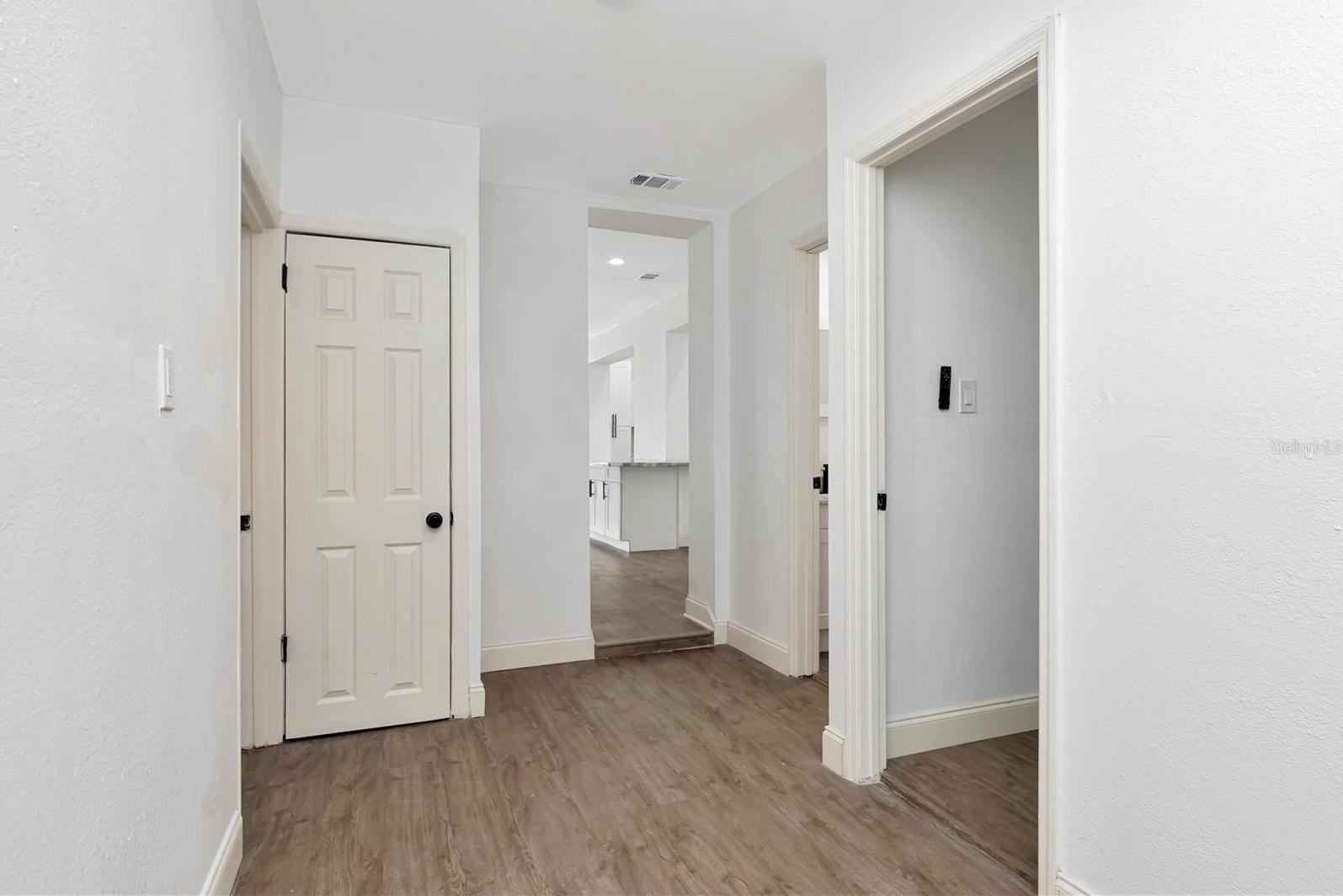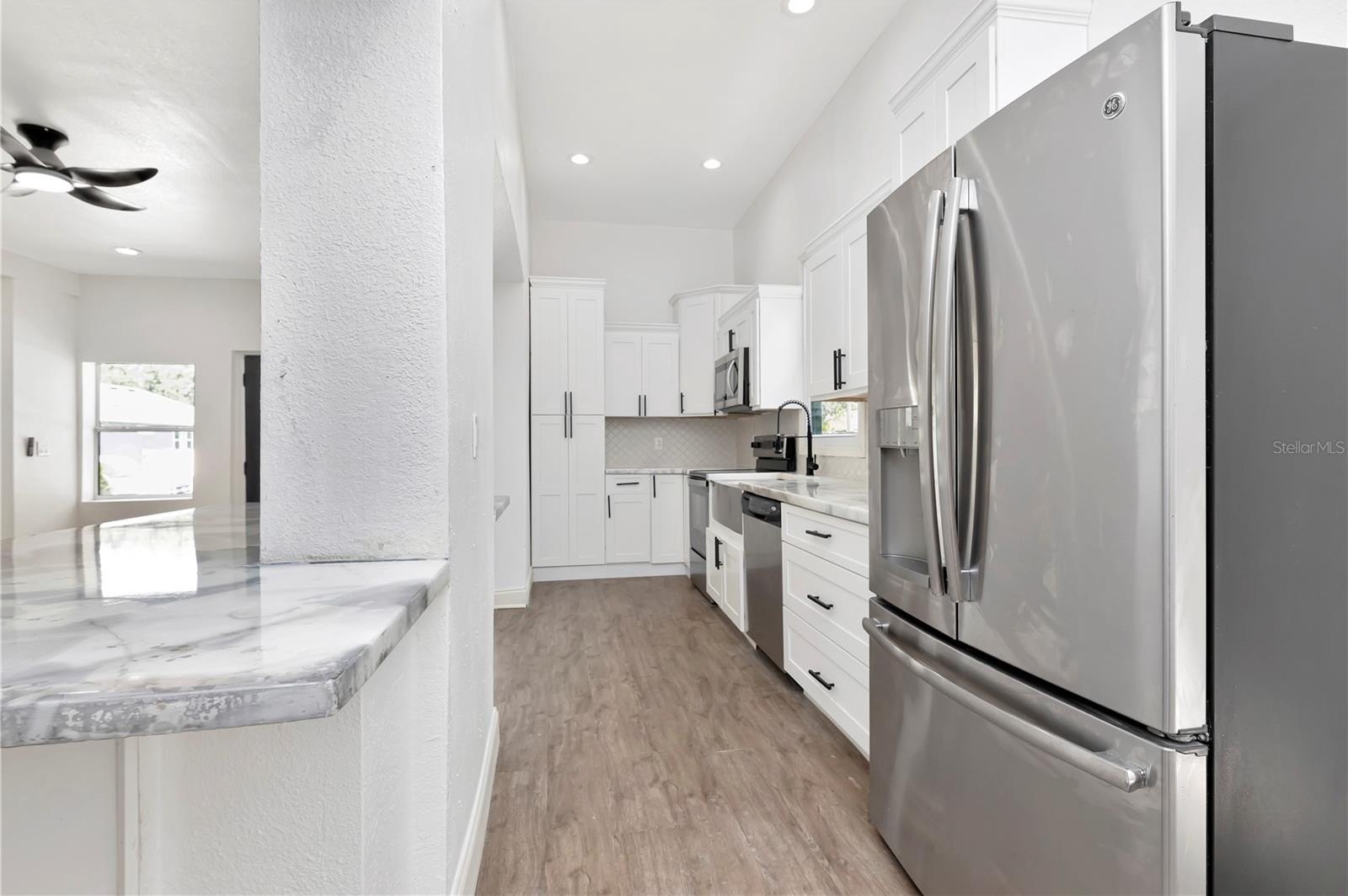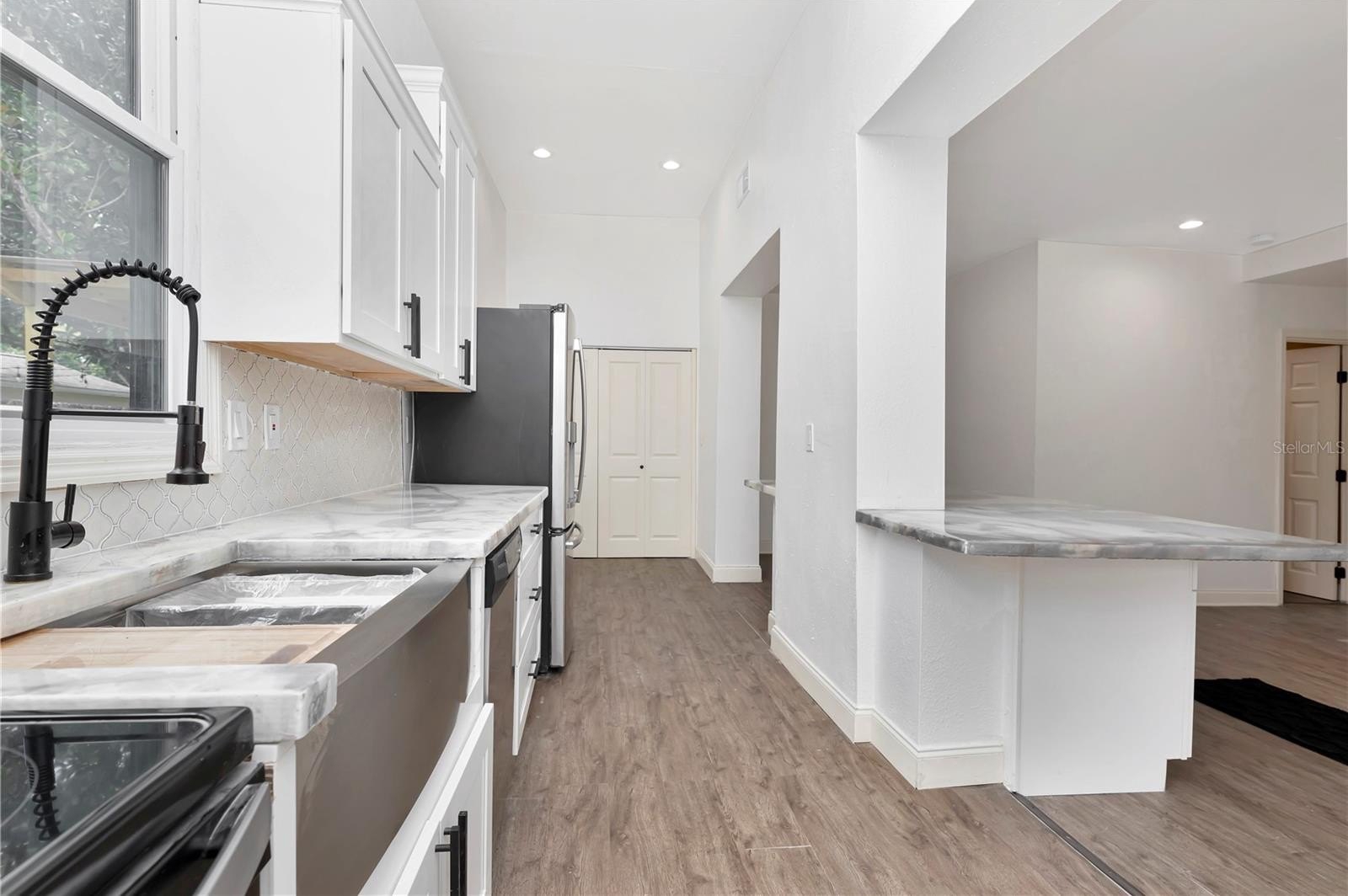 This approximately 1,800 square foot house features four bedrooms and three bathrooms. The property offers a spacious lot with lush landscaping, including a new patio, providing ample space for outdoor living and entertaining. The open floor plan allows for an abundance of natural light throughout. The bathrooms are spacious and feature ample counter space, sleek fixtures, and modern design. The exterior of the home boasts a calming aesthetic, featuring a covered entryway and ample parking on the newly poured driveway. The kitchen boasts modern appliances, a large counter for all your prep and entertaining. This property has been updated, adding the new primary suite, two new bathrooms, and a reimagined kitchen. An indoor laundry room adds convenience and functionality to the home.