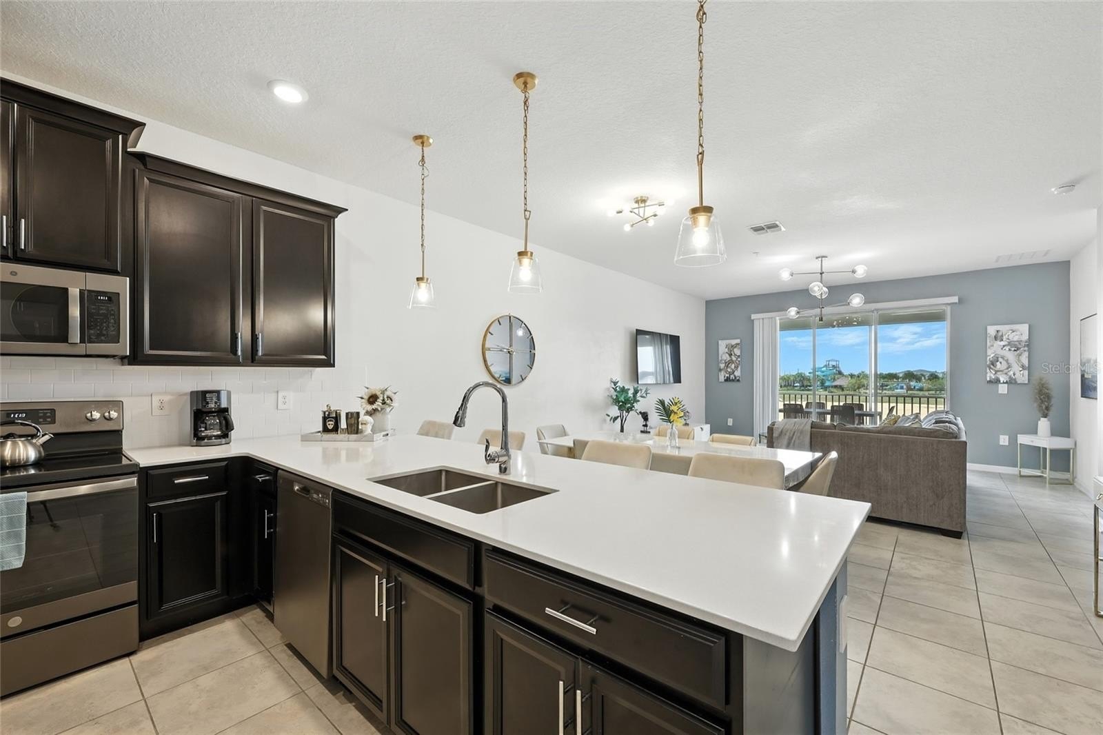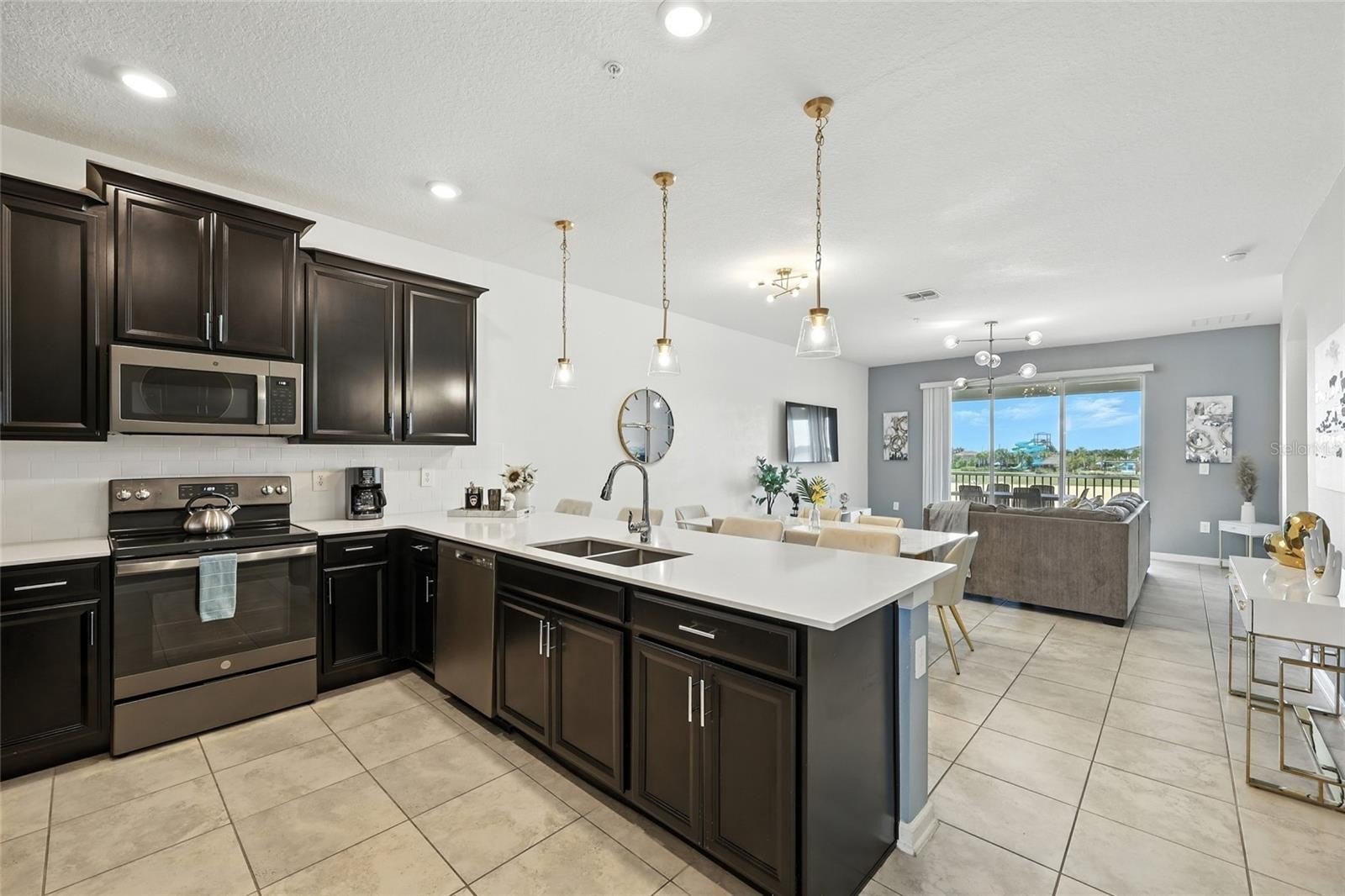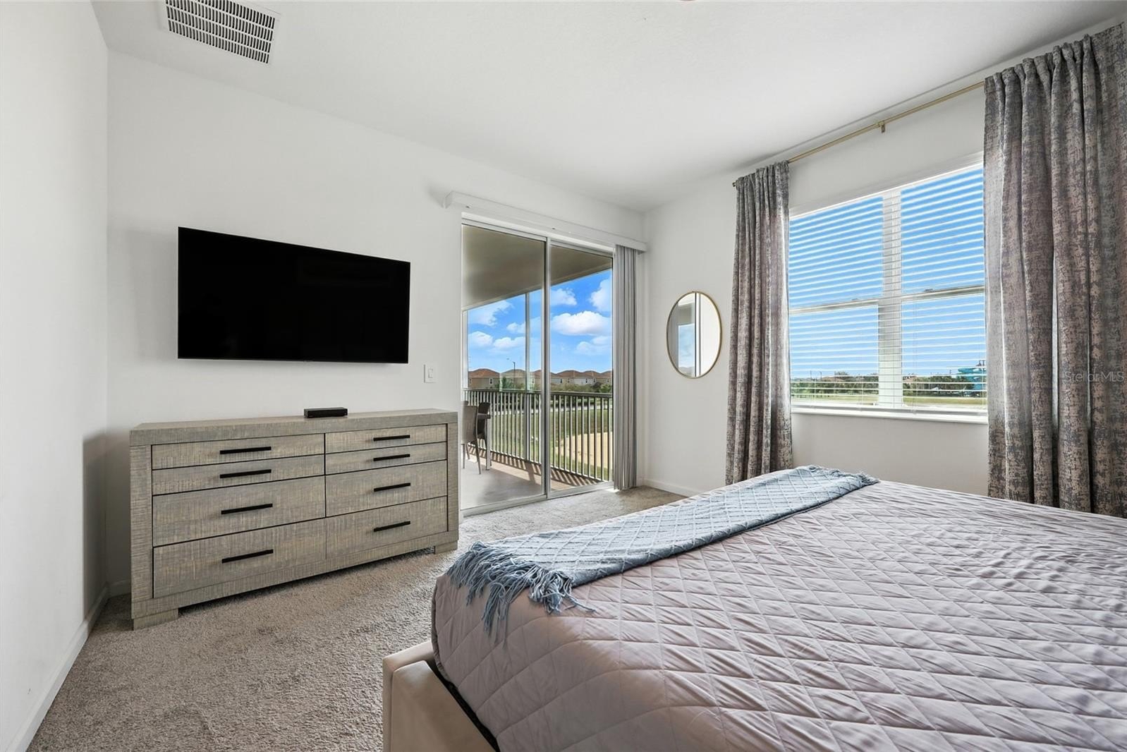 Welcome to your next HIGH-RETURN INVESTMENT and luxurious vacation retreat! This immaculate 3-Bedroom, 2-Bathroom 1,787 Sq Ft Condo is MOVE-IN ready, ideally located in the prestigious gated golf resort of ChampionsGate, just minutes from Walt Disney World, International Drive, and I-4. This property offers the best of both worlds, a STEADY INCOME stream and a RELAXING GETWAY. Enjoy a bright, OPEN-CONCEPT layout with premium finishes including 42” cabinetry, QUARTZ countertops, UPGRADED LIGHTING, and a spacious master suite with dual sinks, a SOAKING TUB, and a separate shower. Step out to your screened-in facing lanai and take a view of the WATER PARK. The home also includes a one-car garage and full access to TWO WORLD-CLASS CLUBHOUSES. The OASIS CLUB includes a 14,000 sq ft of resort amenities, restaurant, fitness center, game room, movie theater, lazy river and tiki bar. The RETREAT CLUB includes a full water park, pool, and restaurant. HOA COVERS resort amenities, gated security, full lawn care, cable, internet, trash, and security monitoring. CDD is included in property taxes for simplified ownership.