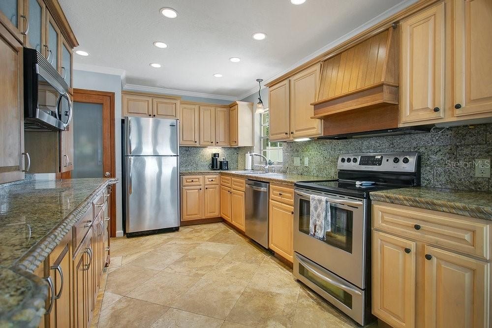 On the first floor, you’ll find a bright and inviting layout with a kitchen featuring stainless steel appliances, along with ample cabinet and counter space. There’s plenty of room to entertain, with a formal living and dining area on one side and a dinette and family room on the other.