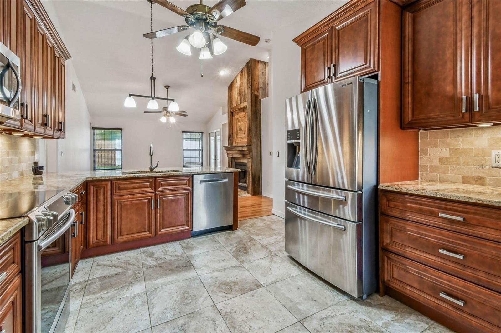 Step into this stunning 3-bedroom, 2-bathroom pool home with a 2-car garage and 1,915 sq. ft. of living space—perfectly combining comfort, versatility, and Florida living at its finest. Tucked away in the tranquil neighborhood of Lakeview Village in Brandon, this home offers both privacy and convenience with easy access to I-4, I-75, and the Crosstown Expressway. Inside, you’ll love the split floor plan, with the master suite privately situated on one side, featuring a spacious bedroom and en-suite bathroom. On the opposite side, you’ll find two guest bedrooms and a full bath, offering comfort and separation for family and visitors. As an added bonus, the home includes a flex room that can easily serve as a 4th bedroom, home office, or even a custom dream closet. The heart of the home is designed for both relaxation and entertaining. The open dining and living room showcases a cozy fireplace and French doors leading to the backyard oasis. The kitchen boasts stainless steel appliances, solid countertops, wood cabinetry, and a 2017 upgrade with reclaimed barn wood accents, seamlessly flowing into a breakfast nook and family room with its own stunning fireplace wall. Whether you’re hosting family dinners or game nights with friends, this layout delivers the perfect setting. Step outside to your private tropical retreat—a sparkling solar heated pool with an upgraded filter housing (2022), surrounded by a screened lanai, mature trees, and a fenced yard. This outdoor space is ideal for summer barbecues, quiet evenings, or soaking in Florida’s year-round sunshine. Notable Updates Include: New Roof (2020), New Water Heater (2024), Pool Filter Housing (2022), Kitchen Upgrade with Reclaimed Barn Wood Detailing (2017), Luxury Vinyl Plank Flooring with Upgraded Baseboards, New Chimney Cap, New Fire Door to Garage, New Light Fixtures & Ceiling Fans, New Toilet in Primary Bath. Perfectly located near shopping, dining, and entertainment in both Brandon and Valrico, this home is the ideal blend of peaceful living and city convenience. This home truly has it all—space, style, and the perfect location. Don’t miss your chance to own this incredible property. Schedule your private showing today!