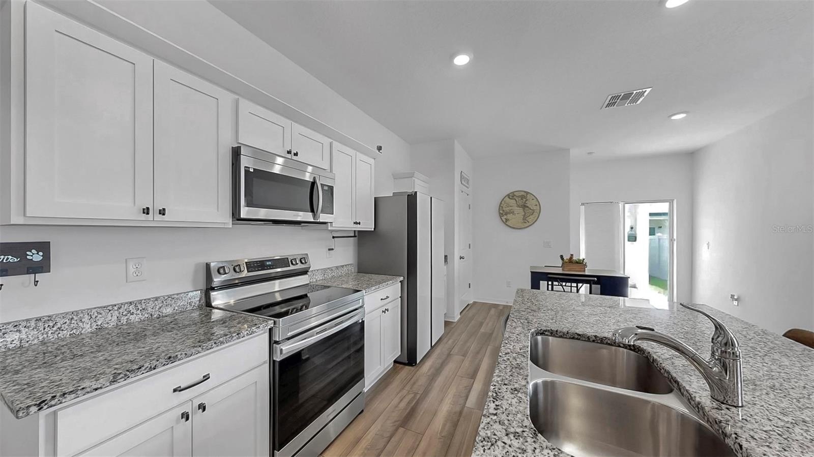 Your opportunity awaits! Located in the wonderful Summerwoods community, this stunning 2023 built home features 3 bedrooms, 2 bathrooms, and a 2-car garage. Upon arrival, the home has a well-maintained exterior with a lovely garden bed. Inside, is a modern open floorplan with split bedrooms, EACH WITH WALK-IN CLOSETS! LVP FLOORING THROUGHOUT! The updated kitchen has many appealing features, including WHITE CABINETS WITH CROWN MOLDING, STONE COUNTERTOPS, MODERN STAINLESS-STEEL APPLIANCES, AND A CENTER ISLAND, with plenty of counter space and room for additional seating and open to the eat-in area. The primary suite is well-sized along with the walk-in closet, with an ensuite bathroom that has a wide vanity and a walk-in shower with glass doors! Outside, is a covered patio and a FULLY FENCED BACKYARD with plenty of space! Don't miss out on this one, call today to schedule a private viewing!