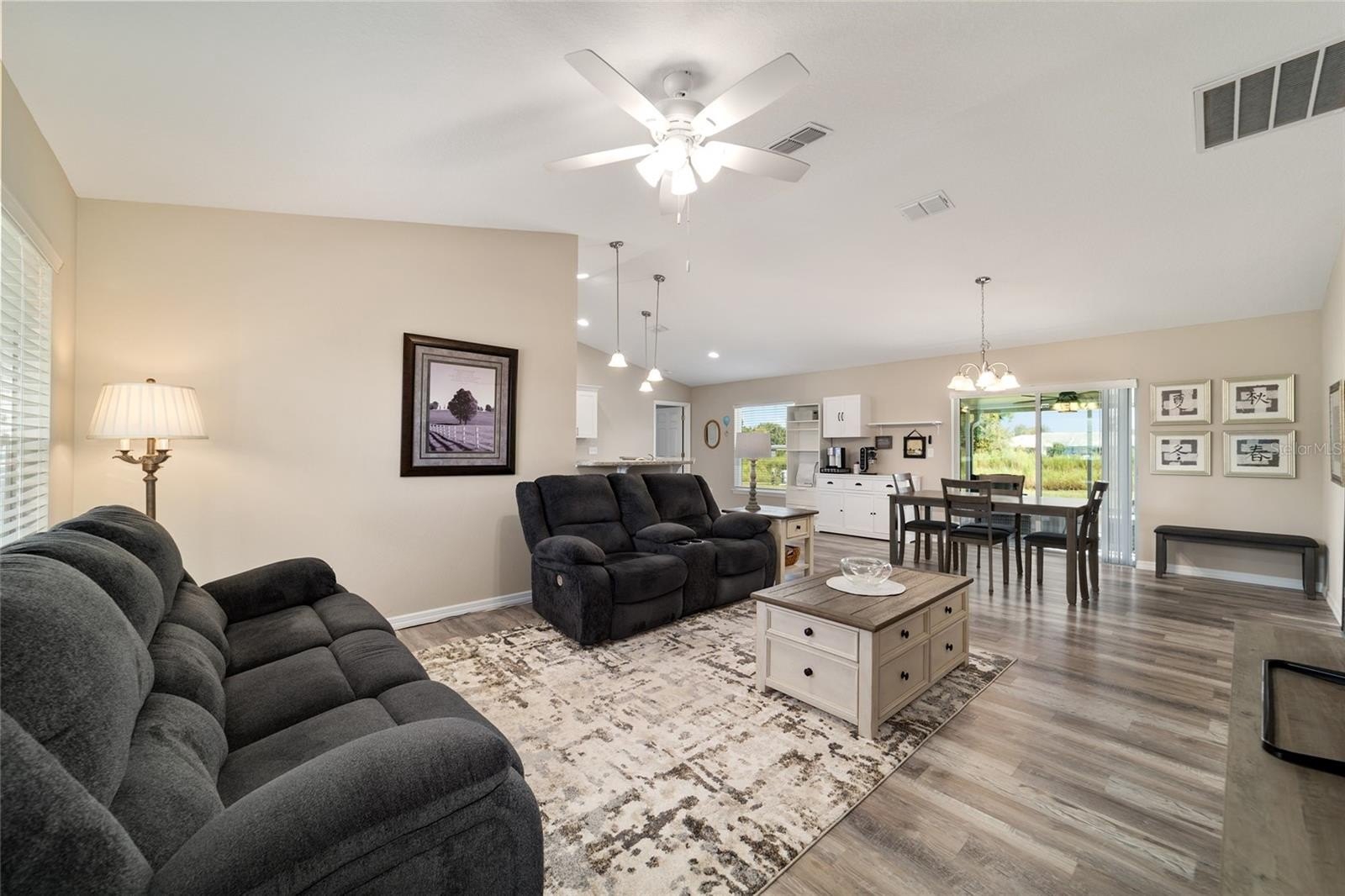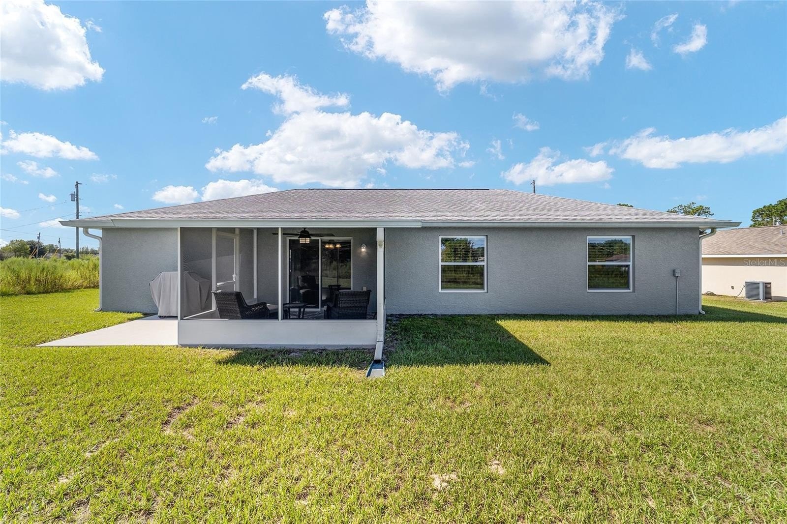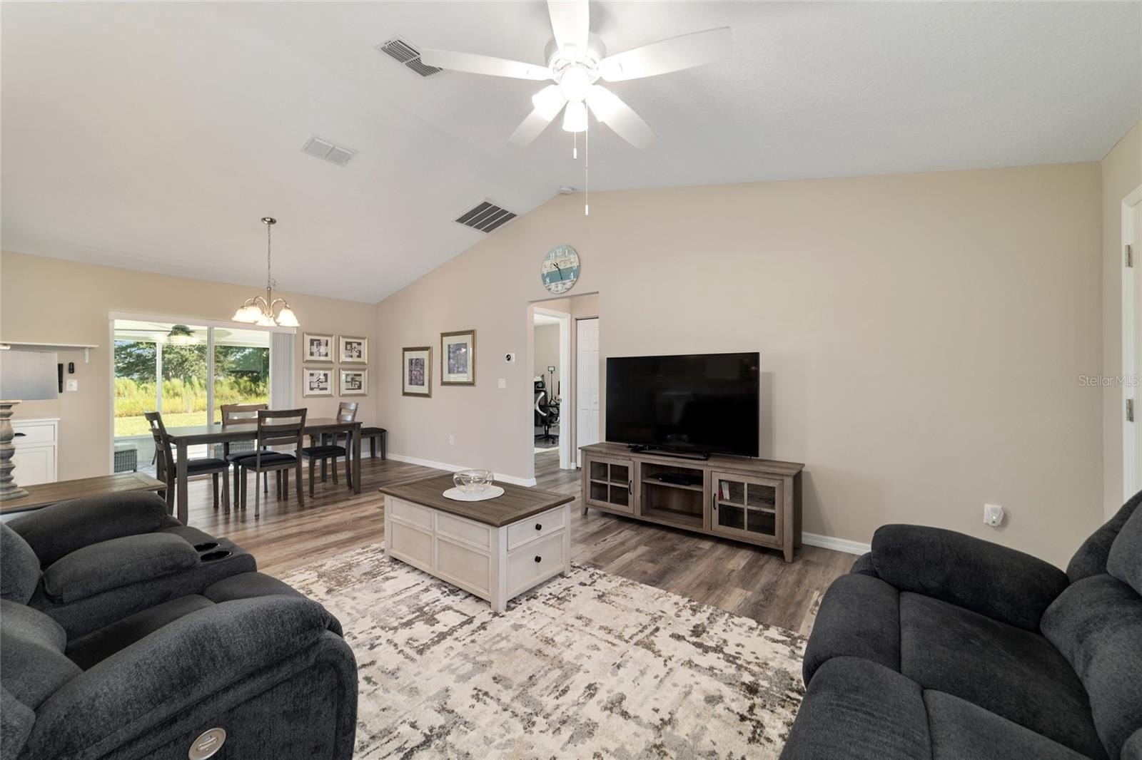 Enjoy a NEW 12x10 screened-in patio, accessible via sliding glass doors from the dining area, ideal for relaxing or hosting guests.