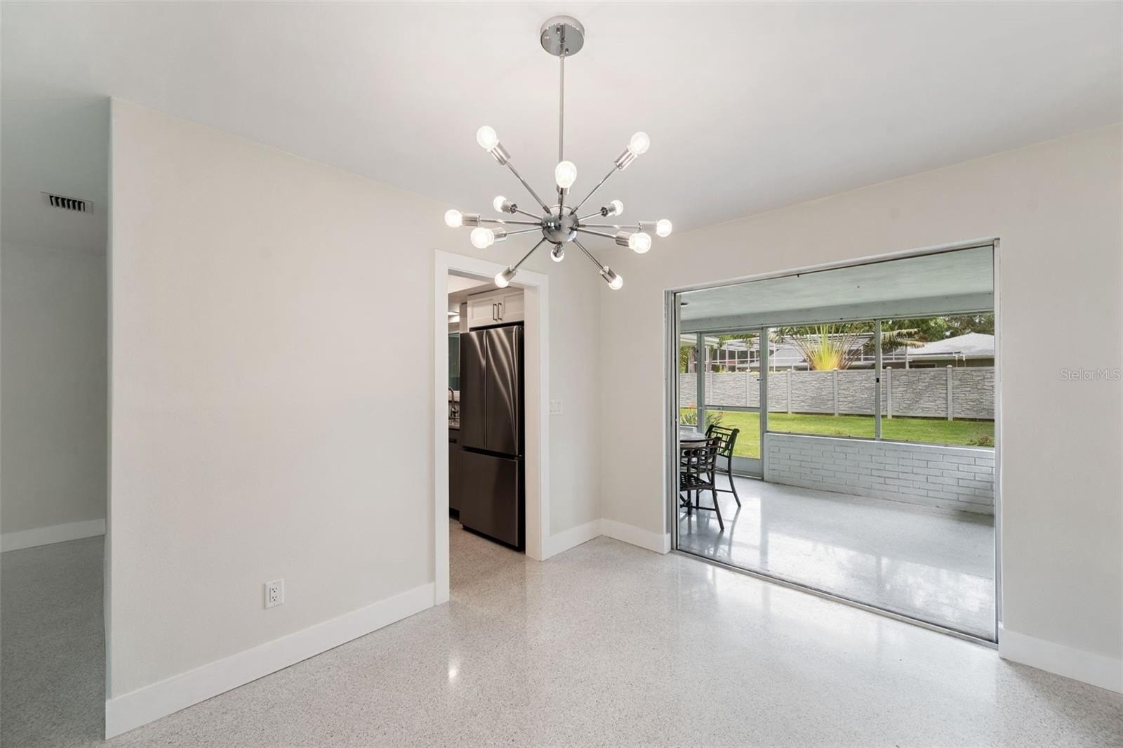 The fully fenced backyard offers privacy, ample space for outdoor activities, and the option to add a pool. The enclosed adjoining patio extends the living space outdoors, with pocket sliding doors and a kitchen pass-through serving window. It's ideal for morning coffee, weekend barbecues, or simply enjoying Florida evenings. The oversized 2-car garage and indoor laundry room provide additional convenience.