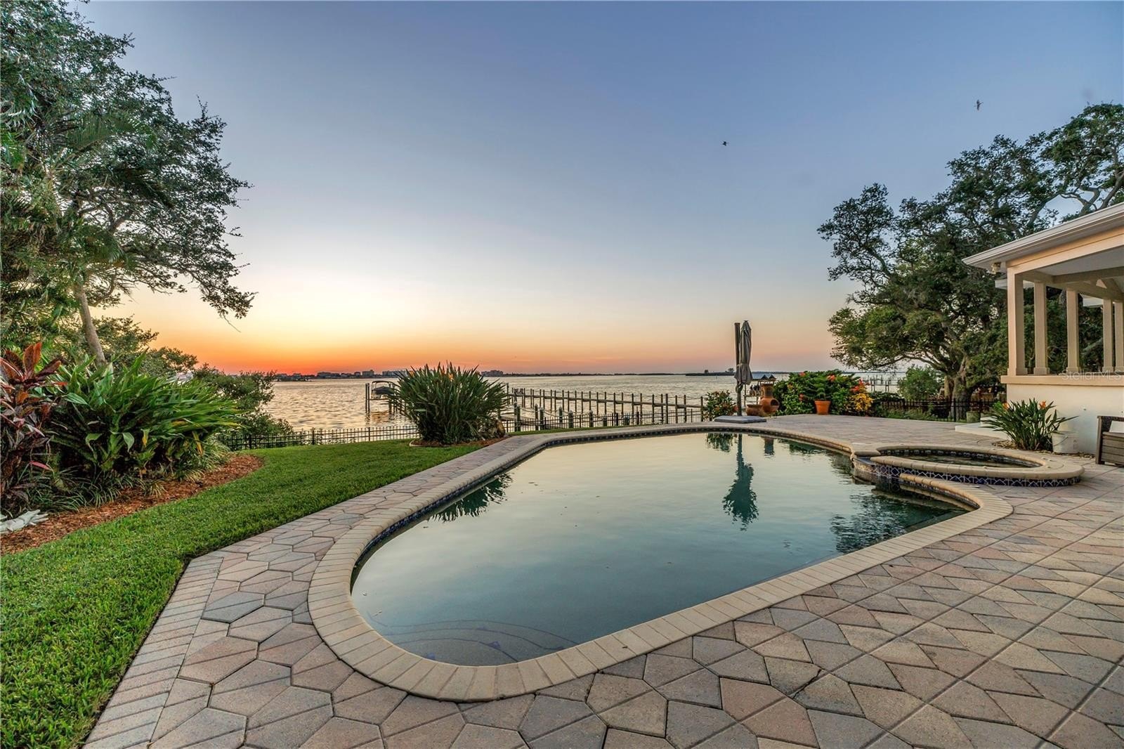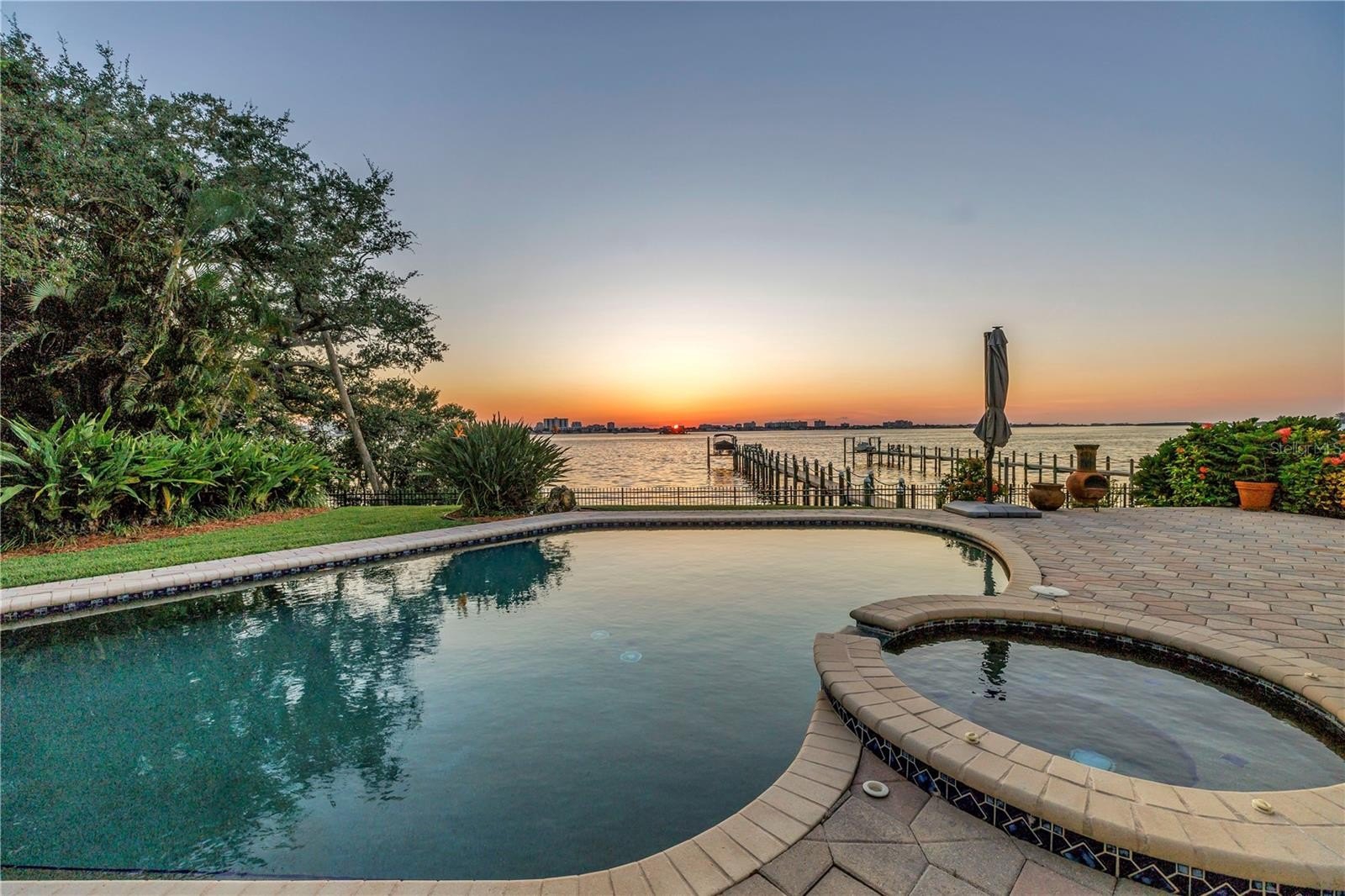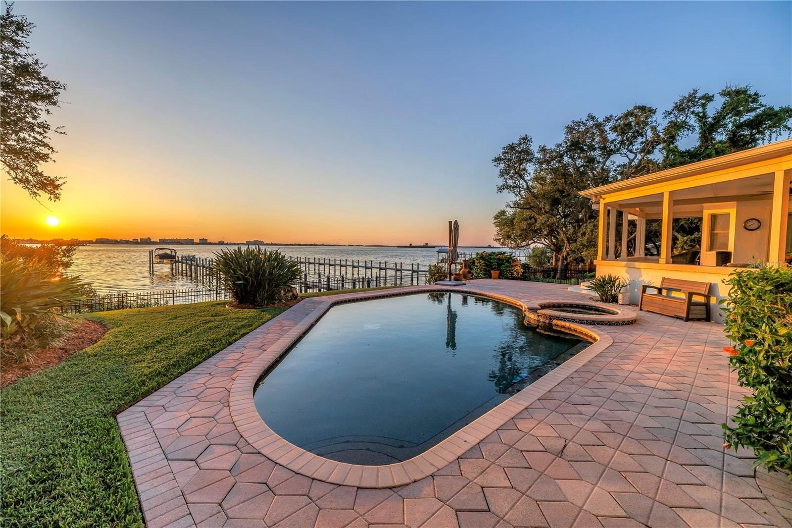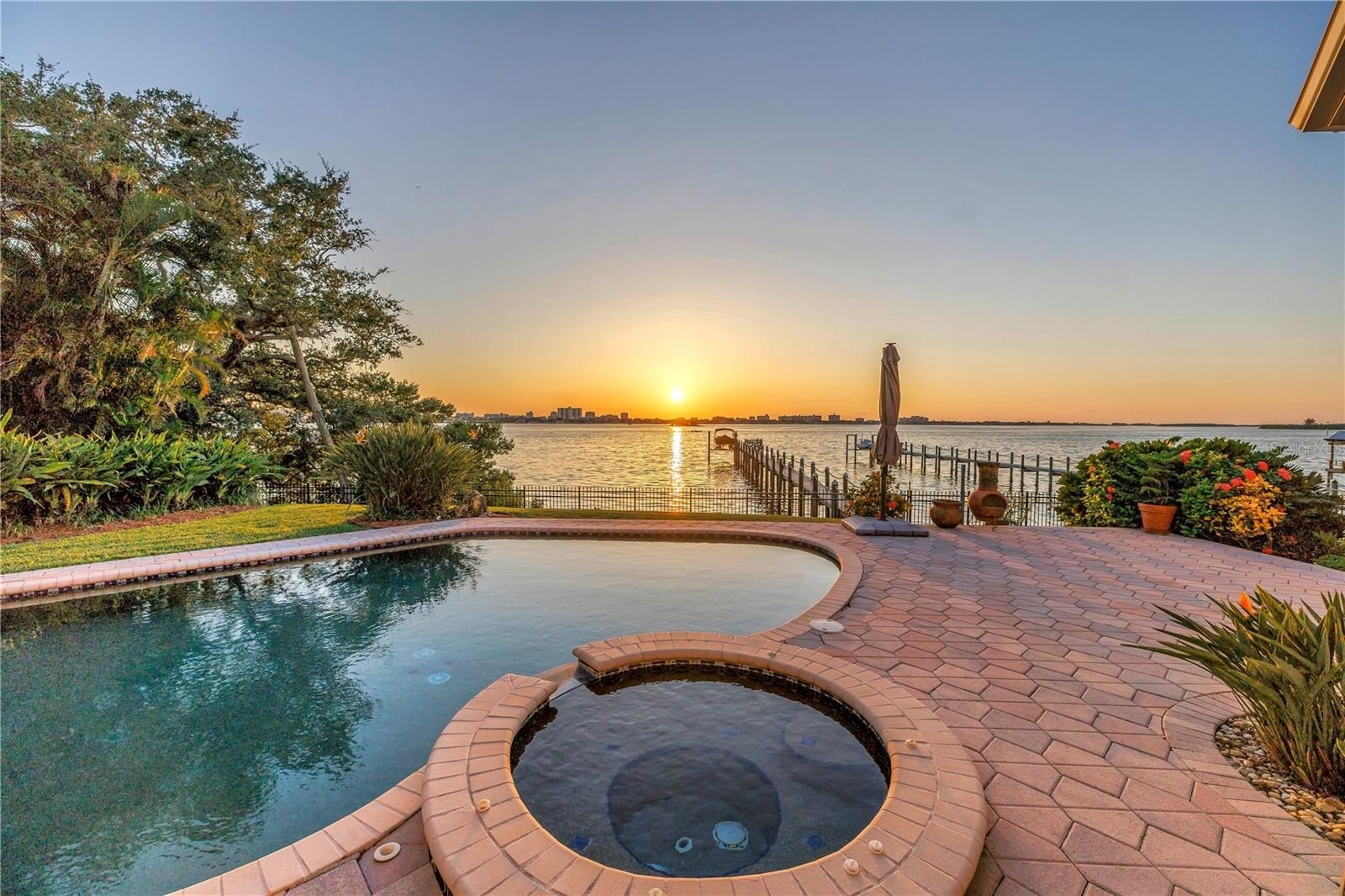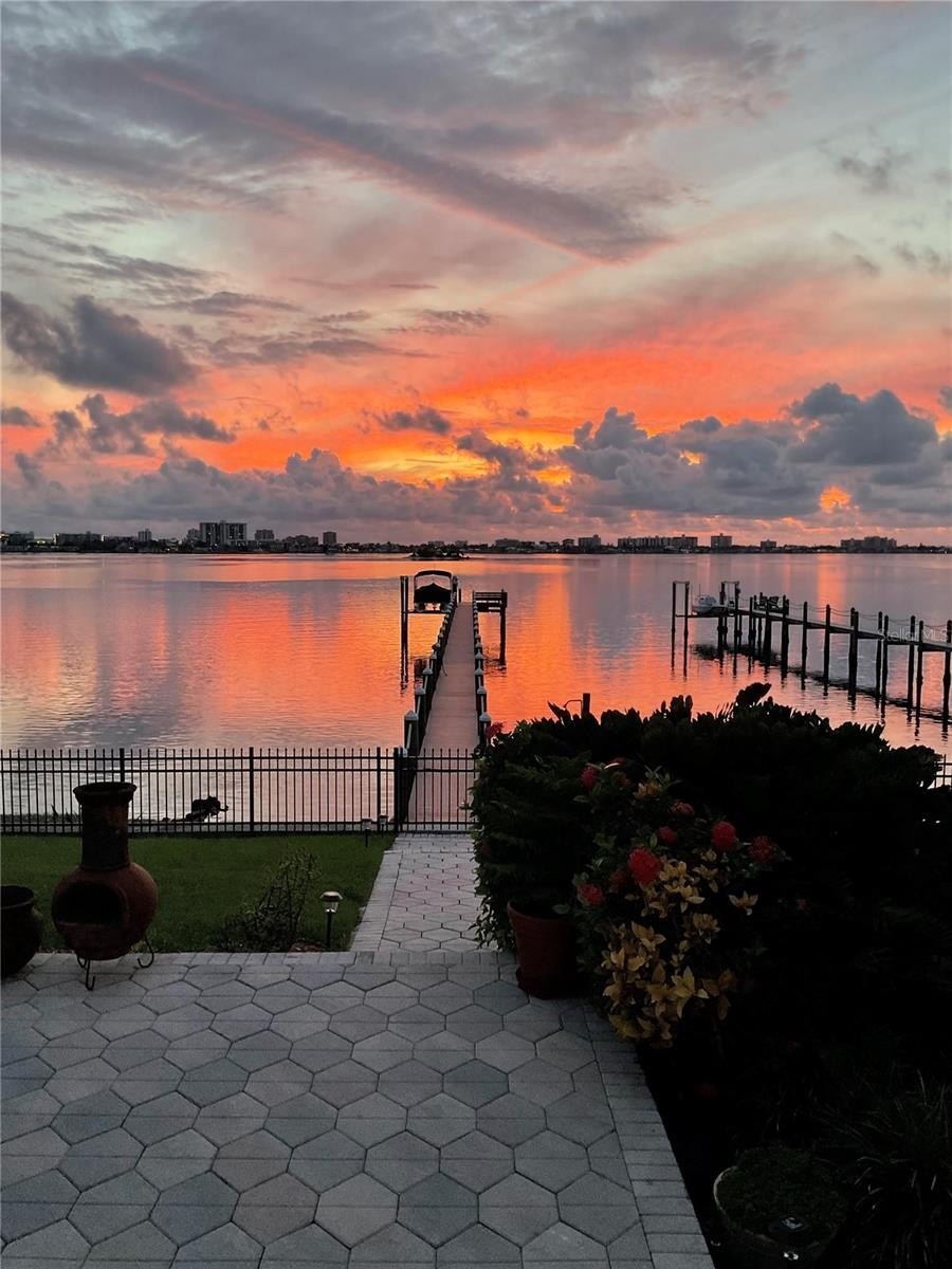 One or more photo(s) has been virtually staged. Tired of being right on top of your neighbors house? Searching for a home on elevated land but with NO STEPS to get inside the front door or anywhere else inside the house? Sounds impossible to find… Until TODAY! EMBRACE COASTAL WATERFRONT LIVING TO ITS FULLEST with this well maintained, move-in-ready, open water view paradise with the most incredible sunsets. This property is surrounded by mature landscaping on an oversized,.39 acre lot with 100ft of water frontage. Properties along Sunset Dr. on the bluff DO NOT go up for sale often. THIS HOME HAS NEVER FLOODED. It sustained NO DAMAGE from the 2024 storms. In fact, the majority of the property and house are in a non-flood zone. This home is all block construction and mostly on a crawl space. The large lot size allows room for growth if desired. The living space features a tiled fireplace, water views from every angle and new LVP floors. The kitchen is light and bright with a breakfast nook, granite counters, stainless appliances, soft close cabinets with several pull-out drawers to make the best use of space. It is conveniently accessible to the enormous covered lanai and to a utility/inside laundry room with a sink, floor to ceiling cabinets and pantry that provides an abundance of storage. There is also a natural gas line located directly behind the current electric oven if you prefer to switch to gas. The primary suite addition was completed in 1993. The dimensions for the bedroom are 16x23 not including the large walk-in closet or bath. This dreamy primary suite has stunning water views, a vaulted ceiling, access to the lanai and a large walk-in shower. The primary suite is accessed through the office, which includes built in shelving/desk, a closet and full bath. The possibilities for this space are endless and could make a fantastic mother-in-law suite! The second and third bedrooms are both good size and on opposite side of the house. The updated, main guest bath has access to the exterior pool deck. The backyard oasis features a large, covered lanai with beautiful beams and a cathedral ceiling. The Pebble Tec surface, salt water pool has a built in spa that is heated with natural gas. Imagine the breeze off the open view of Clearwater Harbor. The long dock with rope railing and Trex decking feels like it came out of a story book. At the end, enjoy the large built in Trex bench for seating while watching the sunset. It’s an ideal spot for winding down at the end of the day to watch the sailboats, dolphins, manatees, seabirds and even fireworks during holidays. The dock was built in 2017 and includes a 9000 LB Hi Tide lift that provides easy access to the intercoastal waterway, Caladesi and Honeymoon Islands and the Gulf. OTHER: Transferable flood policy ONLY $1315 a year! Roof(2012), 2 Trane AC systems-regularly maintained since owned (2014), garage doors, some windows and 2 sliders updated to impact resistant (2023), exterior paint and light fixtures (2025). This prime location has NO HOA and has easy access to the Pinellas trail, Coachman Park/Baycare Sound and more. It is set between the quaint town of Dunedin, Downtown Clearwater/ Clearwater Beach making this home just minutes from an array of restaurants, nightlife, shopping and beaches. Call today to schedule a viewing and make everyday feel like a DREAM COME TRUE... AT HOME.