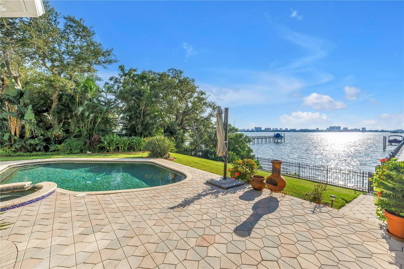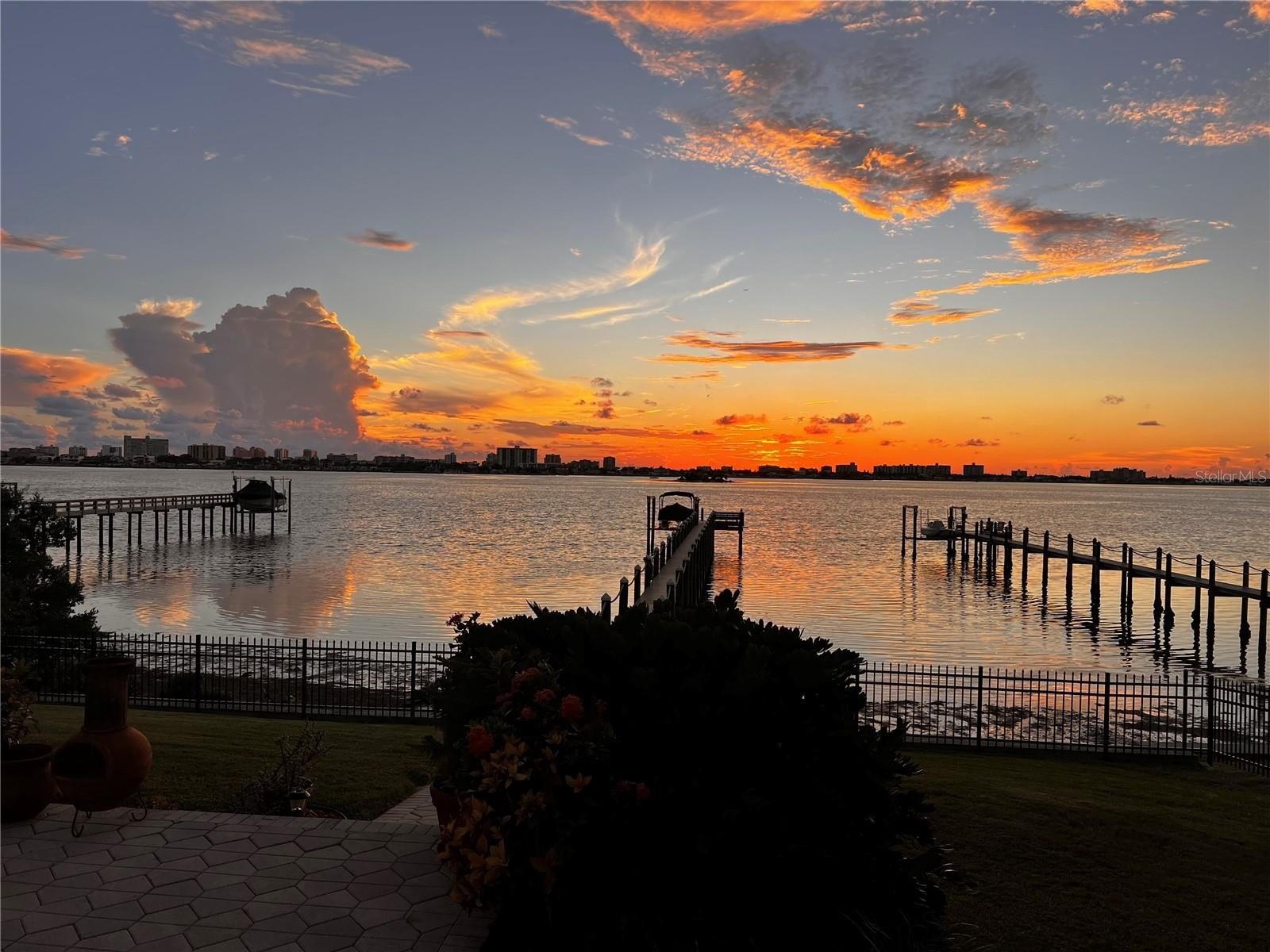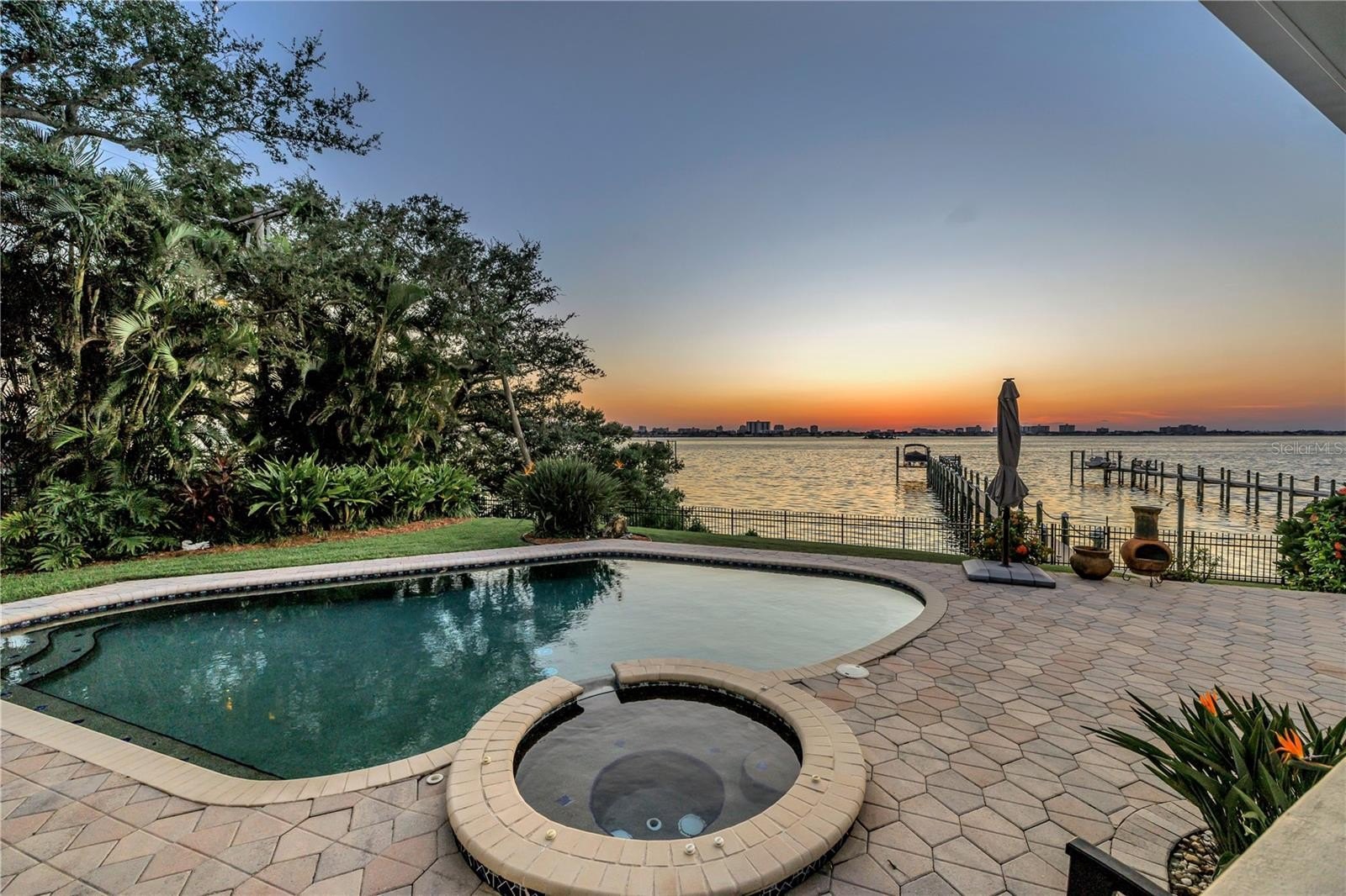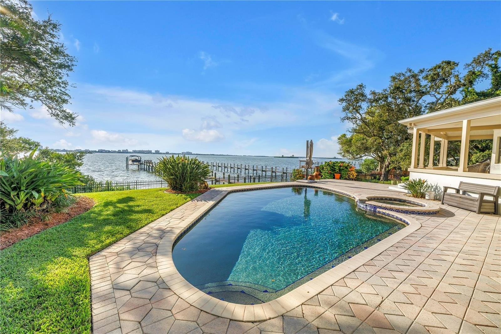 One or more photo(s) has been virtually staged. Tired of being right on top of your neighbors house? Searching for a home on elevated land but with NO STEPS to get inside the front door or anywhere else inside the house? Sounds impossible to find… Until TODAY! EMBRACE COASTAL WATERFRONT LIVING TO ITS FULLEST with this well maintained, move-in-ready, open water view paradise with the most incredible sunsets. This property is surrounded by mature landscaping on an oversized,.39 acre lot with 100ft of water frontage. Properties along Sunset Dr. on the bluff DO NOT go up for sale often. THIS HOME HAS NEVER FLOODED. It sustained NO DAMAGE from the 2024 storms. In fact, the majority of the property and house are in a non-flood zone. This home is all block construction and mostly on a crawl space. The large lot size allows room for growth if desired. The living space features a tiled fireplace, water views from every angle and new LVP floors. The kitchen is light and bright with a breakfast nook, granite counters, stainless appliances, soft close cabinets with several pull-out drawers to make the best use of space. It is conveniently accessible to the enormous covered lanai and to a utility/inside laundry room with a sink, floor to ceiling cabinets and pantry that provides an abundance of storage. There is also a natural gas line located directly behind the current electric oven if you prefer to switch to gas. The primary suite addition was completed in 1993. The dimensions for the bedroom are 16x23 not including the large walk-in closet or bath. This dreamy primary suite has stunning water views, a vaulted ceiling, access to the lanai and a large walk-in shower. The primary suite is accessed through the office, which includes built in shelving/desk, a closet and full bath. The possibilities for this space are endless and could make a fantastic mother-in-law suite! The second and third bedrooms are both good size and on opposite side of the house. The updated, main guest bath has access to the exterior pool deck. The backyard oasis features a large, covered lanai with beautiful beams and a cathedral ceiling. The Pebble Tec surface, salt water pool has a built in spa that is heated with natural gas. Imagine the breeze off the open view of Clearwater Harbor. The long dock with rope railing and Trex decking feels like it came out of a story book. At the end, enjoy the large built in Trex bench for seating while watching the sunset. It’s an ideal spot for winding down at the end of the day to watch the sailboats, dolphins, manatees, seabirds and even fireworks during holidays. The dock was built in 2017 and includes a 9000 LB Hi Tide lift that provides easy access to the intercoastal waterway, Caladesi and Honeymoon Islands and the Gulf. OTHER: Transferable flood policy ONLY $1315 a year! Roof(2012), 2 Trane AC systems-regularly maintained since owned (2014), garage doors, some windows and 2 sliders updated to impact resistant (2023), exterior paint and light fixtures (2025). This prime location has NO HOA and has easy access to the Pinellas trail, Coachman Park/Baycare Sound and more. It is set between the quaint town of Dunedin, Downtown Clearwater/ Clearwater Beach making this home just minutes from an array of restaurants, nightlife, shopping and beaches. Call today to schedule a viewing and make everyday feel like a DREAM COME TRUE... AT HOME.