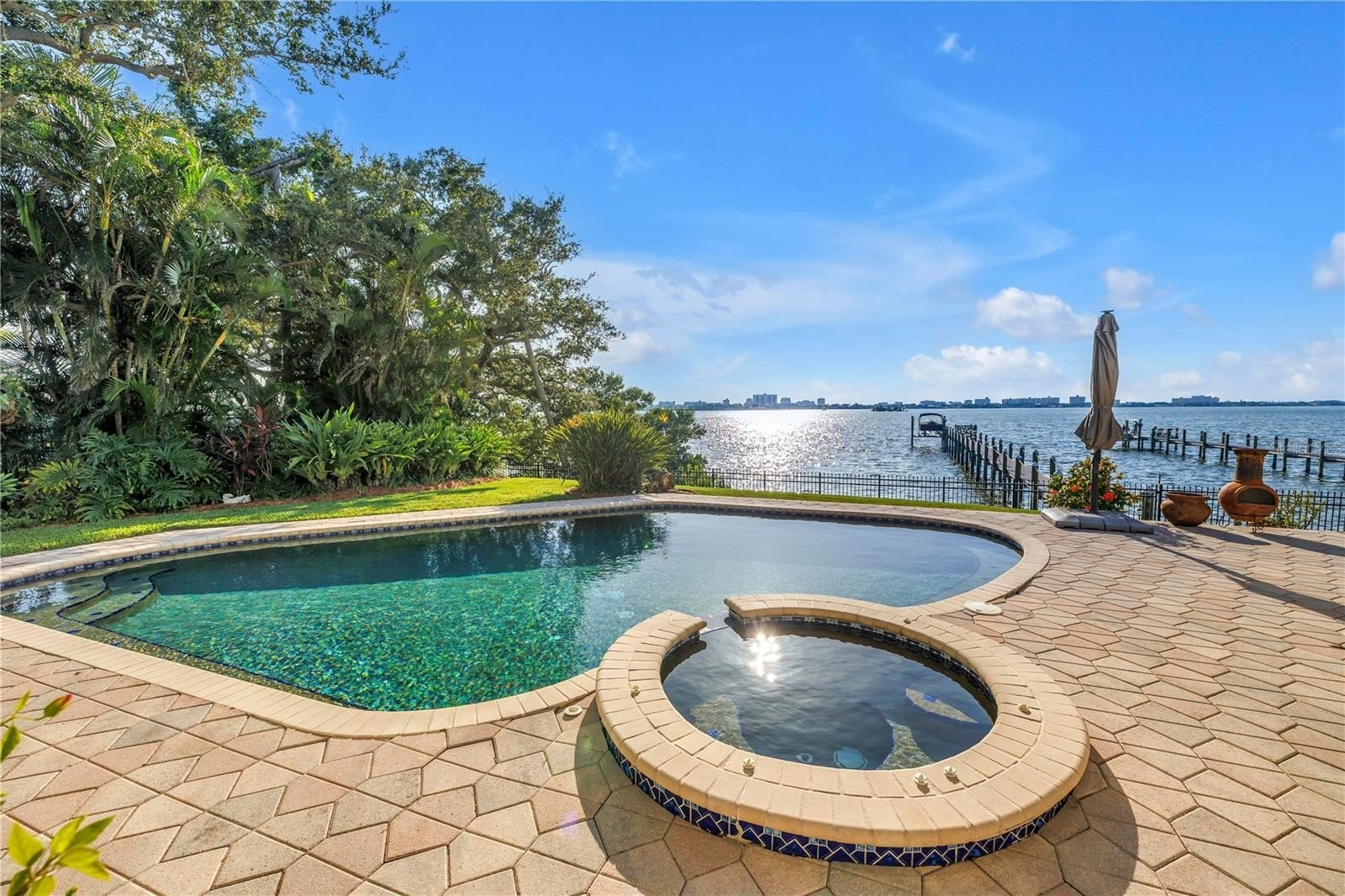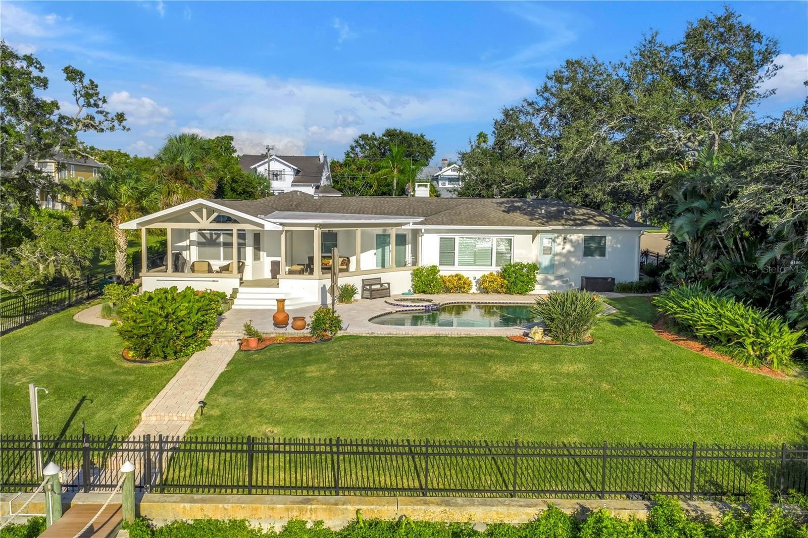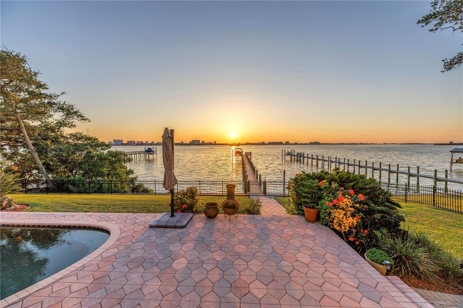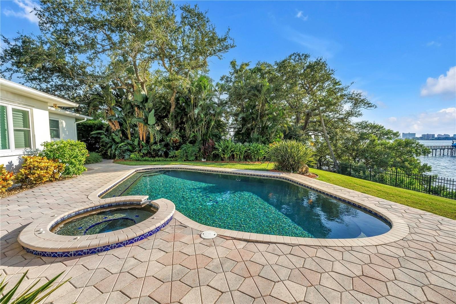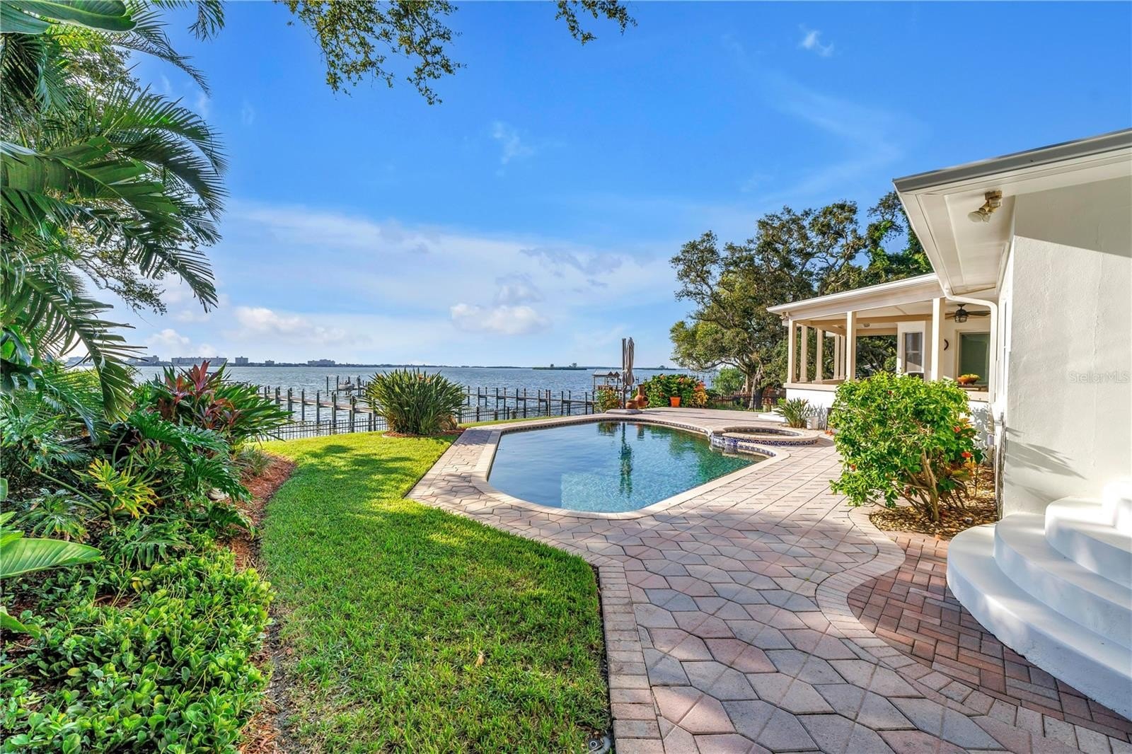 One or more photo(s) has been virtually staged. Tired of being right on top of your neighbors house? Searching for a home on elevated land but with NO STEPS to get inside the front door or anywhere else inside the house? Sounds impossible to find… Until TODAY! EMBRACE COASTAL WATERFRONT LIVING TO ITS FULLEST with this well maintained, move-in-ready, open water view paradise with the most incredible sunsets. This property is surrounded by mature landscaping on an oversized,.39 acre lot with 100ft of water frontage. Properties along Sunset Dr. on the bluff DO NOT go up for sale often. THIS HOME HAS NEVER FLOODED. It sustained NO DAMAGE from the 2024 storms. In fact, the majority of the property and house are in a non-flood zone. This home is all block construction and mostly on a crawl space. The large lot size allows room for growth if desired. The living space features a tiled fireplace, water views from every angle and new LVP floors. The kitchen is light and bright with a breakfast nook, granite counters, stainless appliances, soft close cabinets with several pull-out drawers to make the best use of space. It is conveniently accessible to the enormous covered lanai and to a utility/inside laundry room with a sink, floor to ceiling cabinets and pantry that provides an abundance of storage. There is also a natural gas line located directly behind the current electric oven if you prefer to switch to gas. The primary suite addition was completed in 1993. The dimensions for the bedroom are 16x23 not including the large walk-in closet or bath. This dreamy primary suite has stunning water views, a vaulted ceiling, access to the lanai and a large walk-in shower. The primary suite is accessed through the office, which includes built in shelving/desk, a closet and full bath. The possibilities for this space are endless and could make a fantastic mother-in-law suite! The second and third bedrooms are both good size and on opposite side of the house. The updated, main guest bath has access to the exterior pool deck. The backyard oasis features a large, covered lanai with beautiful beams and a cathedral ceiling. The Pebble Tec surface, salt water pool has a built in spa that is heated with natural gas. Imagine the breeze off the open view of Clearwater Harbor. The long dock with rope railing and Trex decking feels like it came out of a story book. At the end, enjoy the large built in Trex bench for seating while watching the sunset. It’s an ideal spot for winding down at the end of the day to watch the sailboats, dolphins, manatees, seabirds and even fireworks during holidays. The dock was built in 2017 and includes a 9000 LB Hi Tide lift that provides easy access to the intercoastal waterway, Caladesi and Honeymoon Islands and the Gulf. OTHER: Transferable flood policy ONLY $1315 a year! Roof(2012), 2 Trane AC systems-regularly maintained since owned (2014), garage doors, some windows and 2 sliders updated to impact resistant (2023), exterior paint and light fixtures (2025). This prime location has NO HOA and has easy access to the Pinellas trail, Coachman Park/Baycare Sound and more. It is set between the quaint town of Dunedin, Downtown Clearwater/ Clearwater Beach making this home just minutes from an array of restaurants, nightlife, shopping and beaches. Call today to schedule a viewing and make everyday feel like a DREAM COME TRUE... AT HOME.