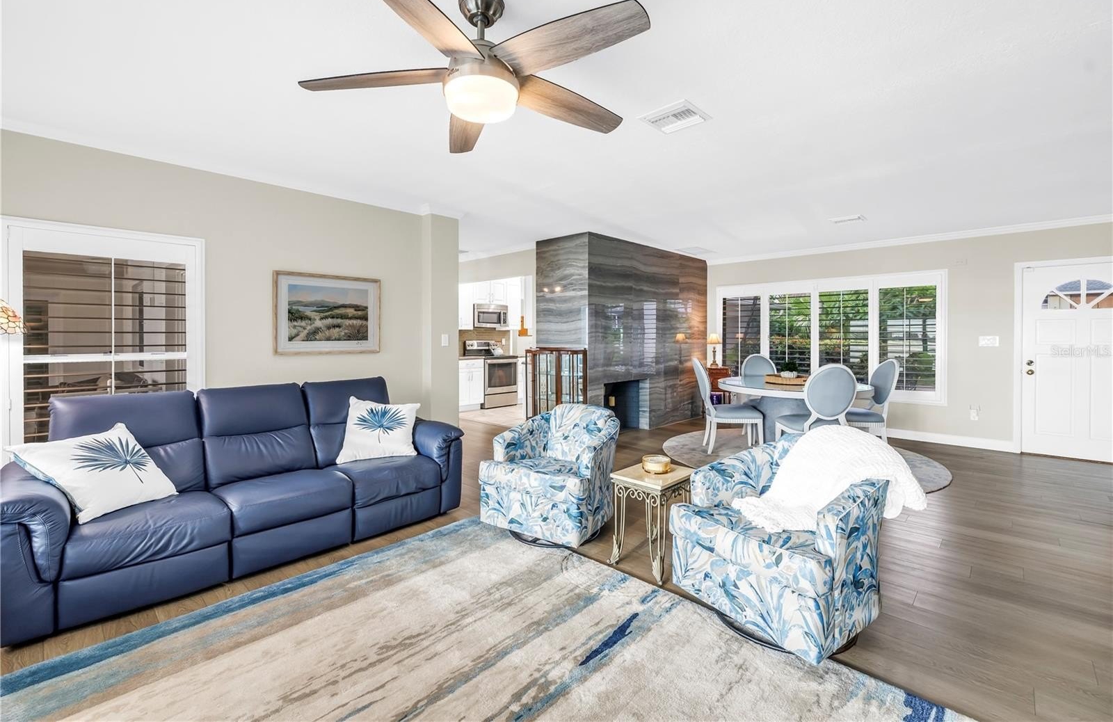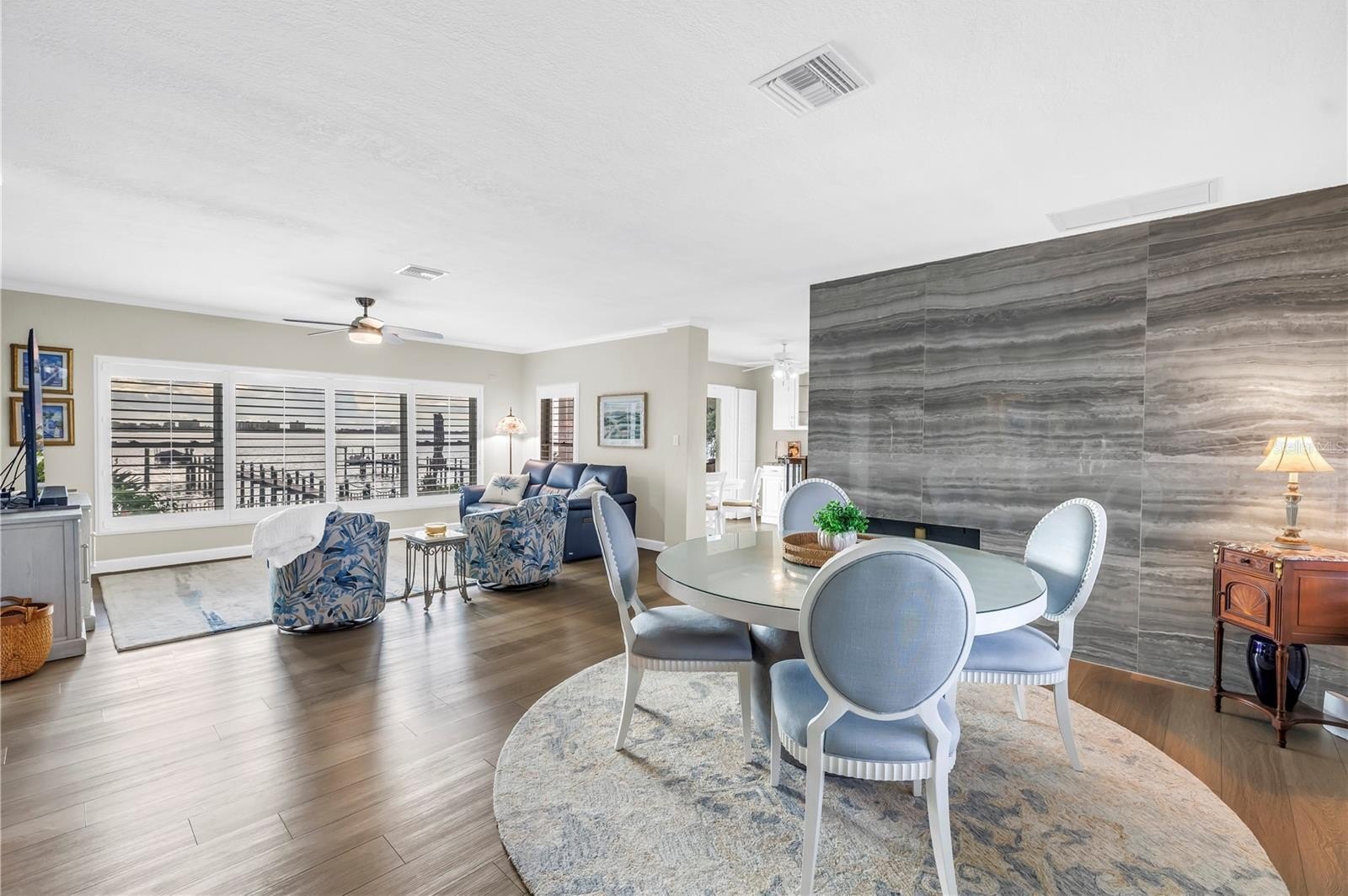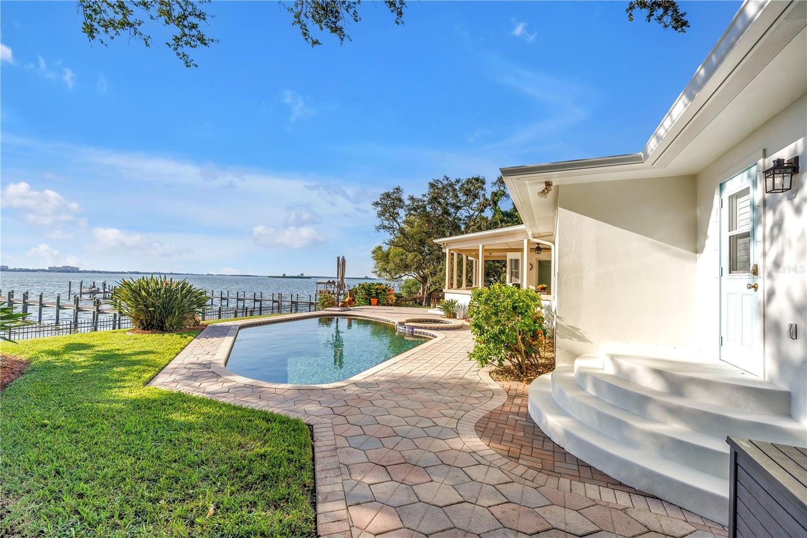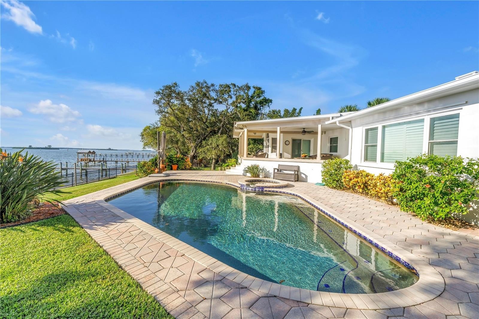 One or more photo(s) has been virtually staged. Tired of being right on top of your neighbors house? Searching for a home on elevated land but with NO STEPS to get inside the front door or anywhere else inside the house? Sounds impossible to find… Until TODAY! EMBRACE COASTAL WATERFRONT LIVING TO ITS FULLEST with this well maintained, move-in-ready, open water view paradise with the most incredible sunsets. This property is surrounded by mature landscaping on an oversized,.39 acre lot with 100ft of water frontage. Properties along Sunset Dr. on the bluff DO NOT go up for sale often. THIS HOME HAS NEVER FLOODED. It sustained NO DAMAGE from the 2024 storms. In fact, the majority of the property and house are in a non-flood zone. This home is all block construction and mostly on a crawl space. The large lot size allows room for growth if desired. The living space features a tiled fireplace, water views from every angle and new LVP floors. The kitchen is light and bright with a breakfast nook, granite counters, stainless appliances, soft close cabinets with several pull-out drawers to make the best use of space. It is conveniently accessible to the enormous covered lanai and to a utility/inside laundry room with a sink, floor to ceiling cabinets and pantry that provides an abundance of storage. There is also a natural gas line located directly behind the current electric oven if you prefer to switch to gas. The primary suite addition was completed in 1993. The dimensions for the bedroom are 16x23 not including the large walk-in closet or bath. This dreamy primary suite has stunning water views, a vaulted ceiling, access to the lanai and a large walk-in shower. The primary suite is accessed through the office, which includes built in shelving/desk, a closet and full bath. The possibilities for this space are endless and could make a fantastic mother-in-law suite! The second and third bedrooms are both good size and on opposite side of the house. The updated, main guest bath has access to the exterior pool deck. The backyard oasis features a large, covered lanai with beautiful beams and a cathedral ceiling. The Pebble Tec surface, salt water pool has a built in spa that is heated with natural gas. Imagine the breeze off the open view of Clearwater Harbor. The long dock with rope railing and Trex decking feels like it came out of a story book. At the end, enjoy the large built in Trex bench for seating while watching the sunset. It’s an ideal spot for winding down at the end of the day to watch the sailboats, dolphins, manatees, seabirds and even fireworks during holidays. The dock was built in 2017 and includes a 9000 LB Hi Tide lift that provides easy access to the intercoastal waterway, Caladesi and Honeymoon Islands and the Gulf. OTHER: Transferable flood policy ONLY $1315 a year! Roof(2012), 2 Trane AC systems-regularly maintained since owned (2014), garage doors, some windows and 2 sliders updated to impact resistant (2023), exterior paint and light fixtures (2025). This prime location has NO HOA and has easy access to the Pinellas trail, Coachman Park/Baycare Sound and more. It is set between the quaint town of Dunedin, Downtown Clearwater/ Clearwater Beach making this home just minutes from an array of restaurants, nightlife, shopping and beaches. Call today to schedule a viewing and make everyday feel like a DREAM COME TRUE... AT HOME.