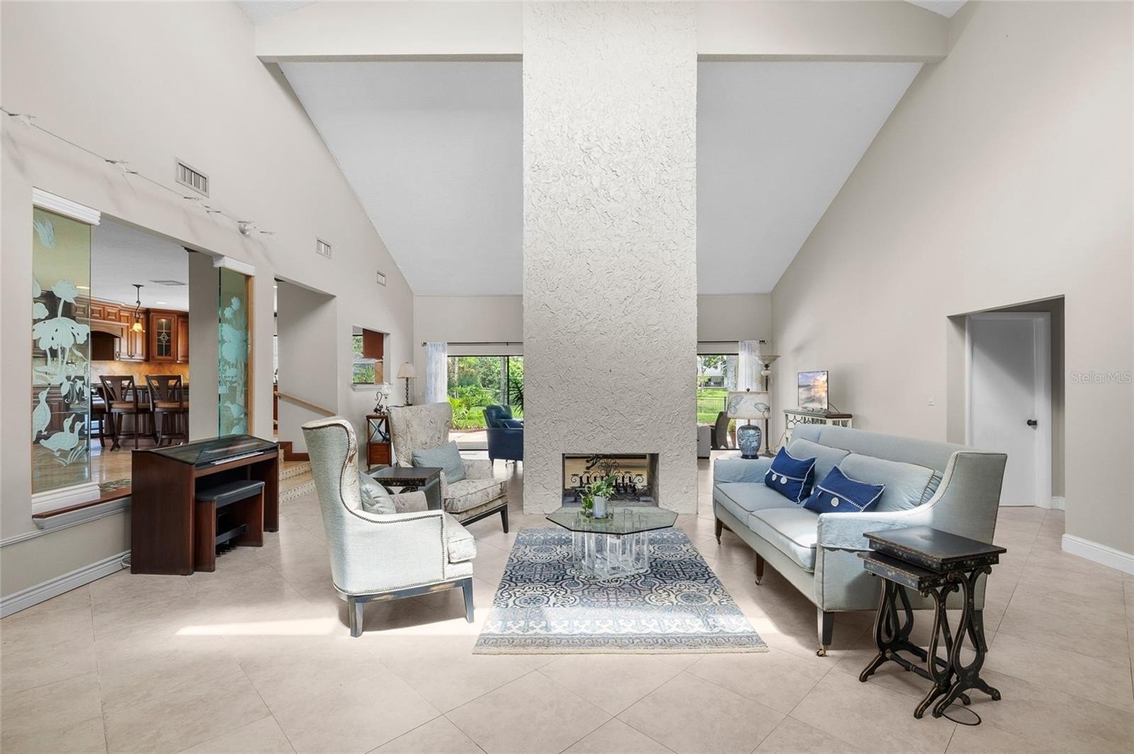 Impressive Carrollwood Village home in a beautiful a neighborhood with a POND VIEW! As you enter this home you are greeted with soaring cathedral ceilings, double sided fireplace and direct pond views. Contemporary floor plan with very spacious living areas. 4 bedroom, 3.5 baths, 2 car garage and pool. The Kitchen is a chefs delight with a huge center Island, Dual fuel oven (propane cook top and electric oven, Pot Filler. Plus enjoy amazing views from your Kitchen window. 2-way split bedroom plan with the primary suite tucked away in the back with Ensuite and huge walk-in closet. Enjoy the alcove in the Primary for reading or relaxing. The second bedroom also has an ensuite. the 3rd and 4th secondary bedrooms have a Walk-in closet and a Jack and Jill bathroom. All bedrooms are quite large-note room sizes.